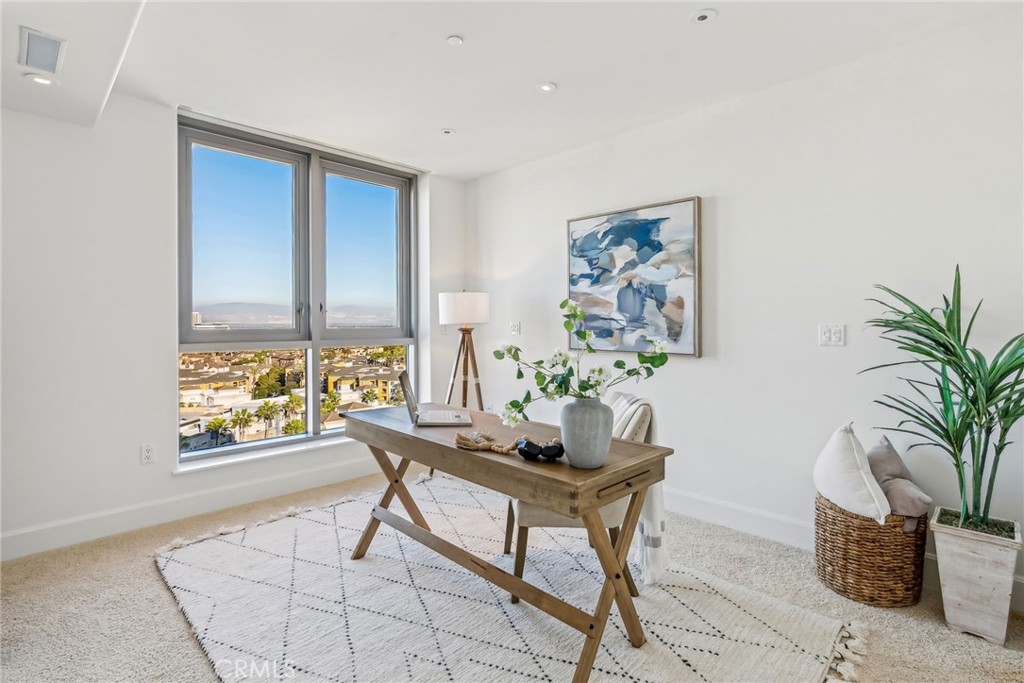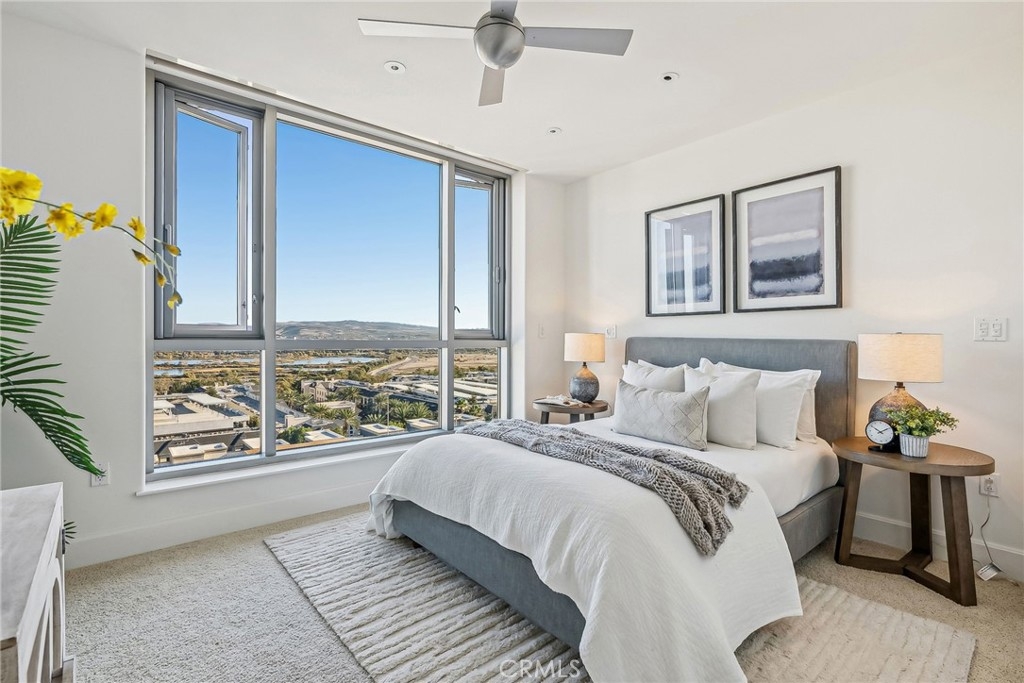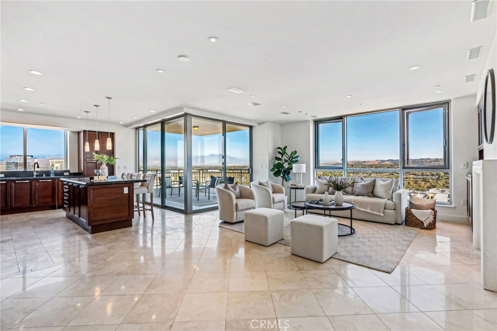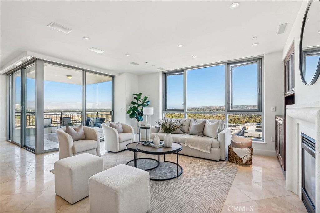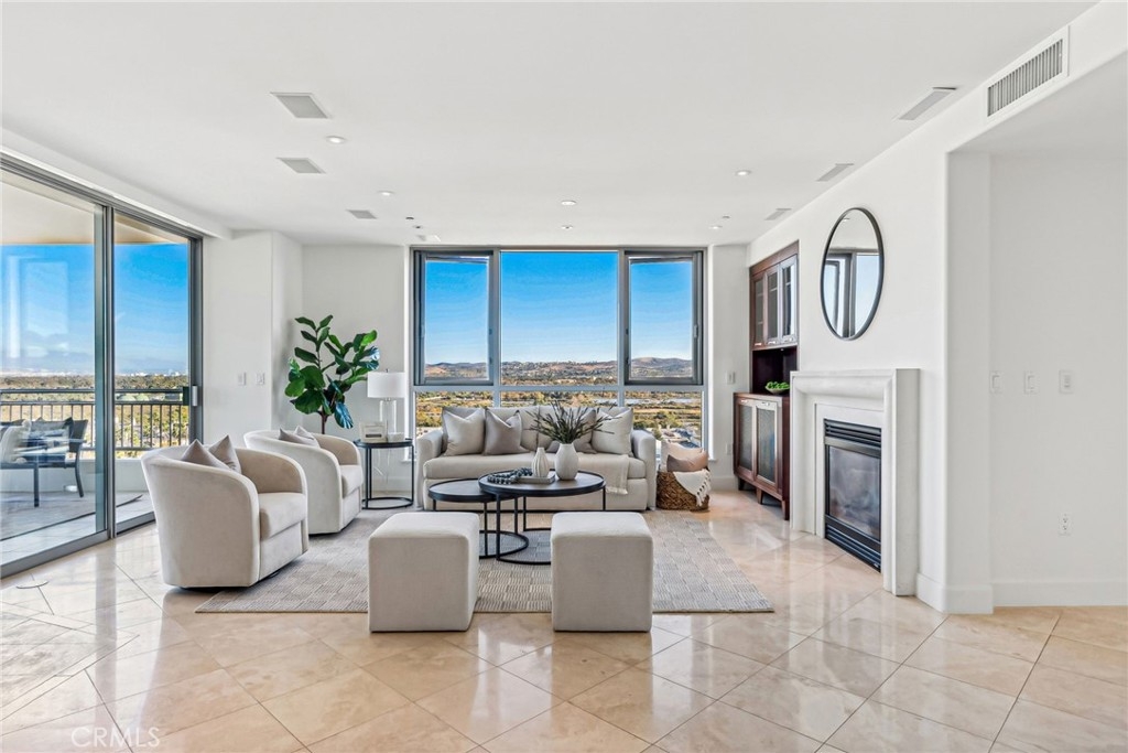 This SINGLE-LEVEL residence with UNOBSTRUCTED PANORAMIC VIEWS of the CITY LIGHTS, tranquil wetlands with birds and trails and MAJESTIC RIDGE LINE MOUNTAINS integrates indoor and outdoor living spaces, creating a HARMONIOUS ATMOSPHERE with abundance of NATURAL LIGHT streaming throughout –an exceptional CORNER-UNIT HOME, 12th Floor, TRANQUILITY AWAITS with 3 EN-SUITE BEDROOMS, 4 BATHS. Boasting an OPEN FLOOR PLAN and spacious LIVING ROOM featuring a cozy Fireplace, a spacious DEN/FORMAL DINING, a GOURMET KITCHEN with Viking appliances and a LARGE ISLAND, and an EXPANSIVE open BALCONY, ideal for entertaining, equipped with an audio Surround Sound System, Automated Lighting, and Sliding door/Window Screens for additional fresh air, and Power Shades throughout. This home is designed for both comfort and convenience. Additional features include an expanded LAUNDRY ROOM with a sink and ample storage, a large Walk-in Closet in the MASTER BEDROOM, and a luxurious master bath with double vanity sinks, a large Spa Tub and separate Shower. SECURED GATED GARAGE with 2 PRIVATE CAR SPACES and storage. Experience unparalleled PRIVACY and SECURITY in the prestigious 24/7 secured building of The Plaza 3000, offering unparalleled amenities and dedicated staff committed to delivering bespoke full-service luxury. It epitomizes the quintessential PREMIER LIFESTYLE; enjoy access to a range of HOA AMENITIES: 24/7 concierge services, spectacular RoofTop Pool, a Hot Spa, Gym, outdoor Firepits, Barbecue Grills, Conference and Wine Room- with additional VALUE INCLUDING your Gas, Water, Refuse, Basic Internet, Cable TV, exterior maintenance, and landscaping. Take a beautiful stroll downstairs for the nearby cafes/restaurants and shops. Ideally located just minutes from John Wayne Airport and a beautiful swift drive away from Newport Beach, Newport Coast, and Corona Del Mar, can easily explore all that Orange County has to offer. From hiking or biking in Bommer Canyon or Crystal Cove State Park to world-class dining/entertainment; all within reach- Come Live, RELAX and Enjoy your new home!!