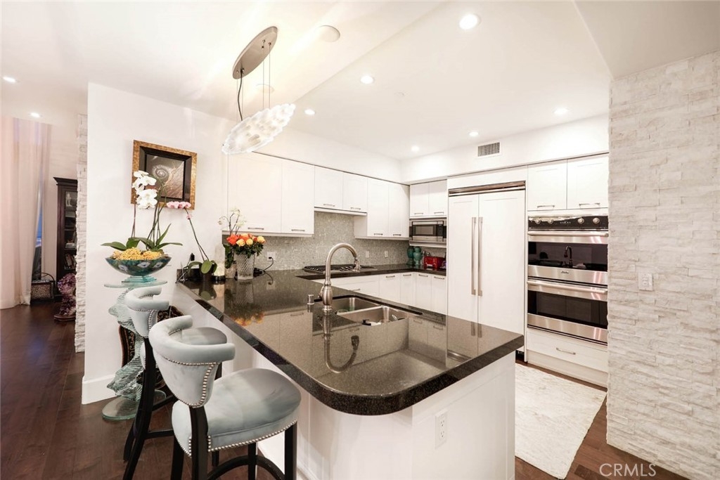 Stunning Modern Penthouse on the 15th floor of the 3000 Plaza; OC’s newer most luxurious high-rise buildings. Lofty two-story wall of windows showcase views of the wildlife sanctuary, nature preserve, sparkling city lights, impressive sunsets, and Catalina Island. Gorgeous and stately two story PENTHOUSE with 2 BD/4BA. The spacious master suite on the second floor has awe-inspiring views and leads to the double door entrance to the master bath, with jet Jacuzzi spa tub, shower, and spacious custom walk-in closet. The second master bedroom suite is stationed on the main floor. Gourmet kitchen ideal for any chef covered with beautiful ledger stone wall, top brand appliances, double ovens, built-in fridge, and a large walk-in pantry. The great room is accompanied by the same custom white-stoned wall that sparkles like quartz crystals. An electric fireplace stands grandly and adds ambiance to relaxing nights in. Beautiful custom hand forged staircase with stainless steel brushed nickel railings.This staircase leads to the entertainment center on the master floor that provides a perfect space to lounge. Electronic blinds. Soak in the views from a covered balcony. HOA includes internet, water, gas, basic cable, and trash. The Plaza offers security, concierge, Rooftop pool, gym, billiards room, and more. Close to John Wayne Airport, South Coast Plaza, and Fashion Island. This luxury Penthouse is the perfect taste of city life in suburban OC! Your dream home awaits!