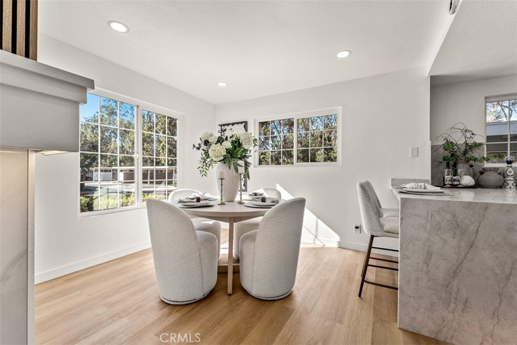 Located in the desirable Woodbridge Village, this beautifully renovated 3-bedroom, 2-bath end-unit offers effortless single-level living on the ground floor. Enter through a private enclosed patio and step into a bright, open floor plan thoughtfully updated throughout. The brand-new kitchen showcases custom oak cabinetry, Taj Mahal quartz countertops, recessed lighting, and new luxury vinyl plank flooring that flows seamlessly through the home. Both bathrooms have been completely remodeled with floor-to-ceiling tile, matching oak vanities, and Taj Mahal quartz counters, creating a cohesive and elevated design. Additional upgrades include new closets, doors, hardware, fresh interior paint, and a brand-new air conditioning unit, ensuring both style and comfort. Each bedroom and the living area are filled with natural light, enhancing the home’s airy feel. The unit includes an assigned covered carport (#165), with ample guest parking available nearby. Ideally situated close to Woodbridge High School, Woodbridge Lakes, Crossroads and Westpark shopping centers, with a short commute to UCI and the Irvine Spectrum. A turnkey opportunity in one of Irvine’s most sought-after communities.