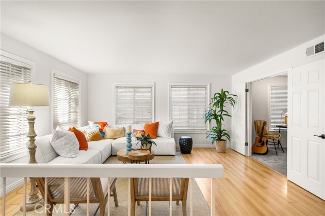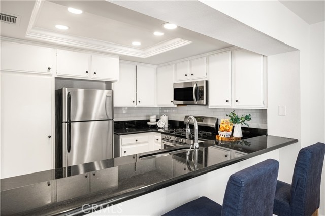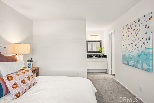 Charming Woodbridge Village condo located in the desireable Alders community. This end unit, single story, lower level unit with no steps offers you the opportunity to own your own home, begin building equity or would also make a great rental property. This upgraded unit features laminate wood plank flooring, plush carpeting, granite counters, snack bar, upgraded light fixtures, recessed lighting, window blinds, stainless steel appliances and the home was just freshly painted. The cheery kitchen offers granite counters, stainless steel range, microwave, dishwasher & refrigerator and opens onto a lovely separate dining room with glass pendant lighting. The dining room would also be a great place for a home office. This desireable plan has a large spacious living room with many windows. The generously sized master suite has a walk-in closet & separate vanity with sink. The hall bath has granite counters, upgraded shower fixtures and tile flooring. Enjoy the central air conditioning. An interior laundry closet in conveniently located off the kitchen.Washer, dryer and a stainless steel refrigerator are all included. The front of the unit has a private enclosed patio to sit & enjoy your coffee in the morning or relax after work. There is also an exterior storage closet that provides room for your extra things. Your carport is directly in front of the unit as well as ample guest parking. Enjoy all Woodbridge Village amenities including several lakes, fishing, boating, parks, tot lots, pools, spas, pickleball, tennis courts and more!!! Located in the highly ranked Irvine School district!