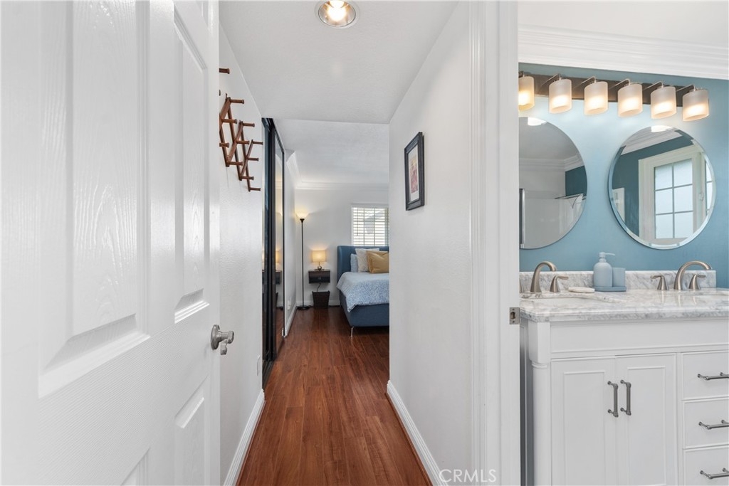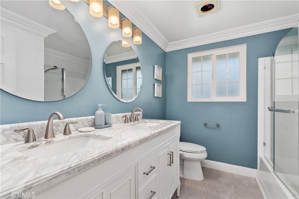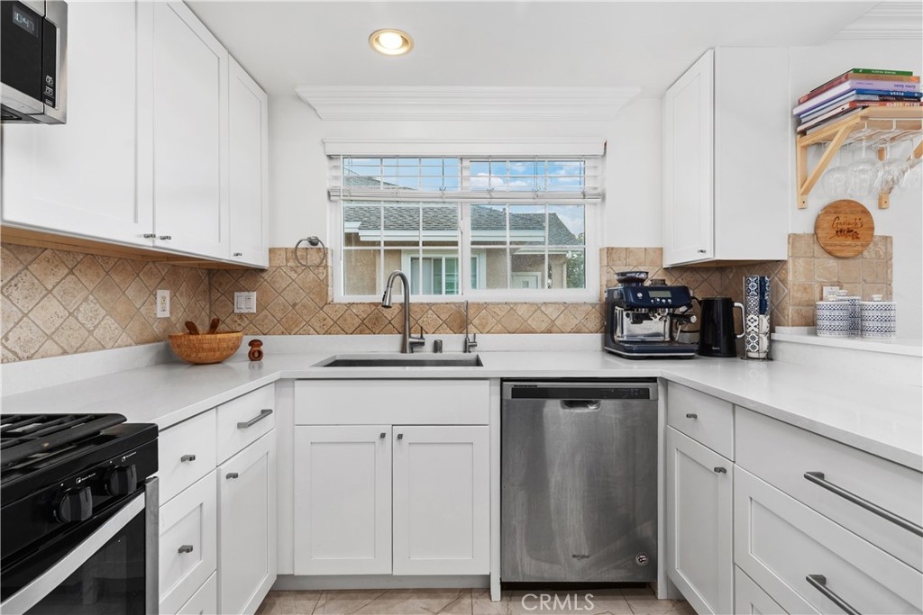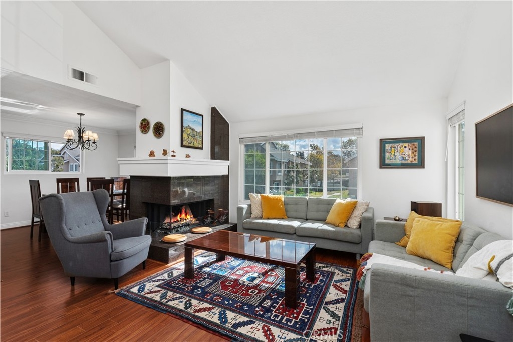 Welcome to 53 Woodleaf, an inviting upper-level home located in central Woodbridge. Perfectly situated across from Windjammer Park and the pool, this residence offers a sought-after Woodbridge location with open greenbelt views and abundant sunlight. Step inside to discover a bright and welcoming interior featuring a spacious living area with vaulted ceilings, crown molding, rich wood-style flooring, and expansive dual-pane windows that frame serene park views. The open layout flows seamlessly into the dining area. The modern kitchen has been beautifully remodeled with white shaker cabinets, quartz countertops, stainless-steel appliances, recessed lighting, and smart pull-out storage. The primary suite, featuring two spacious closets and an upgraded en-suite bathroom with dual vanities, is located along its own hallway. A second hallway leads to two secondary bedrooms, both bright and beautifully maintained. A hallway laundry closet adds everyday convenience to this well-designed layout. Additional upgrades include a Google Nest system for comfort and efficiency and a newly updated roof. Residents of Woodbridge Village enjoy exceptional amenities, including two lakes with docks, two beach lagoons, 22 pools, 16 spas, 23 tennis courts, 4 pickleball courts, and 13 waders, along with parks, playgrounds, sports courts, and scenic walking trails — all part of the Woodbridge Village Association. Close to top-rated Irvine schools, shopping, and dining, this home offers comfort, convenience, and a welcoming community environment.