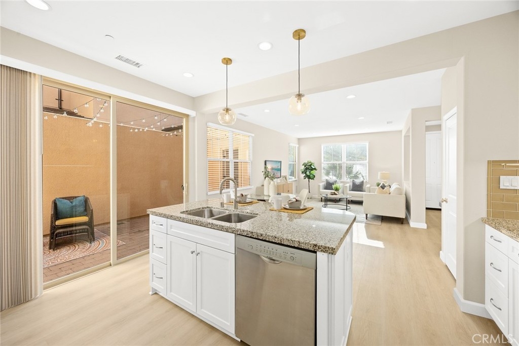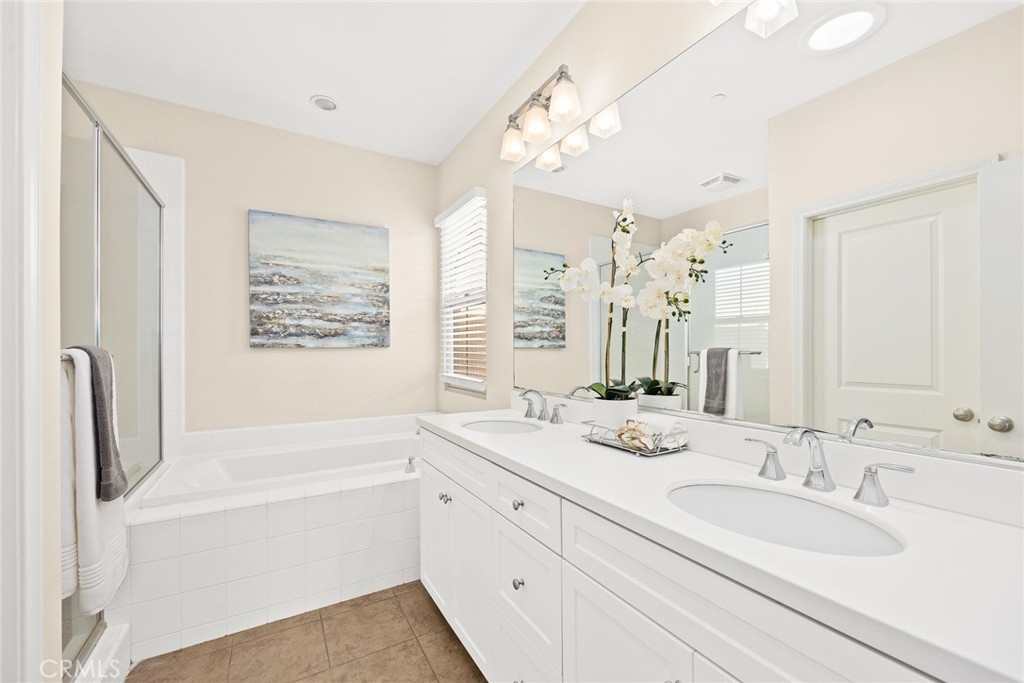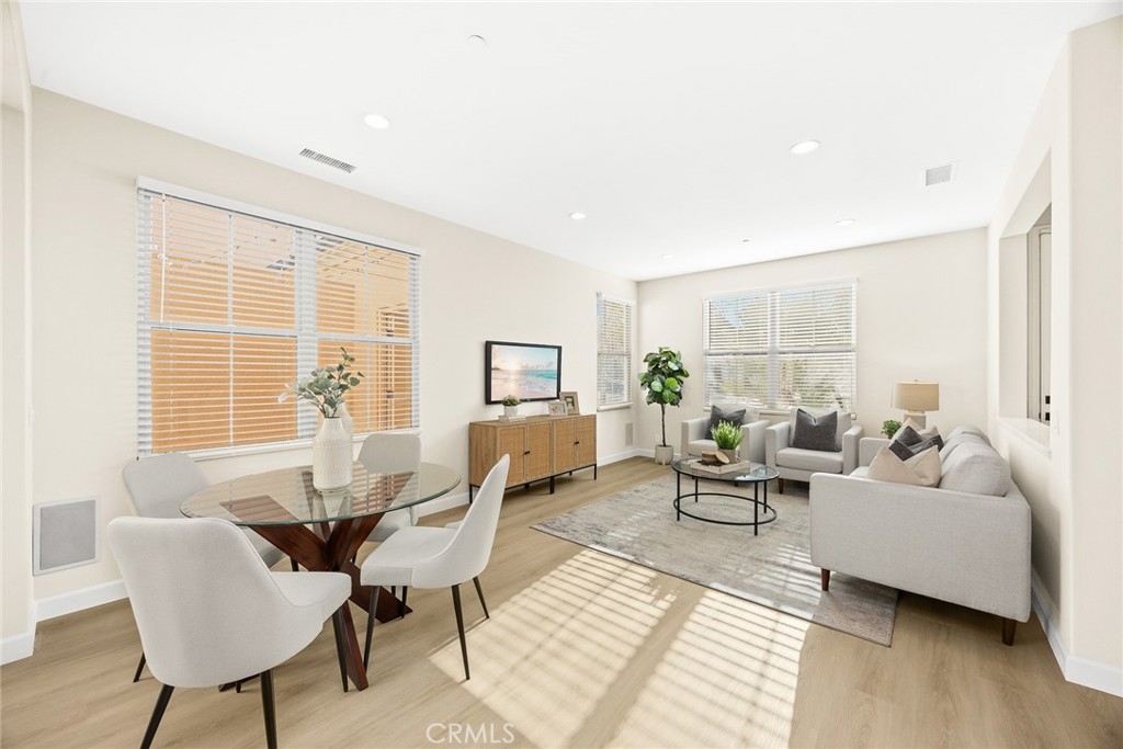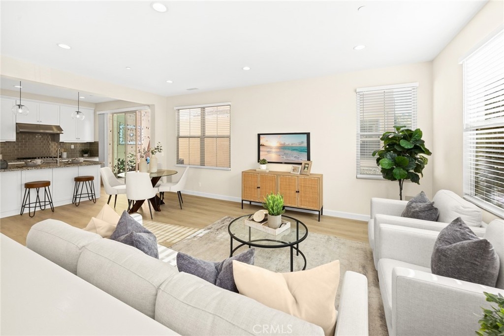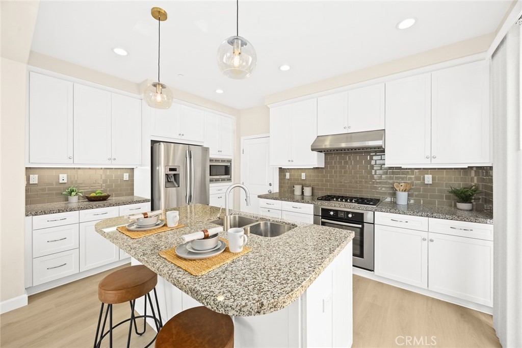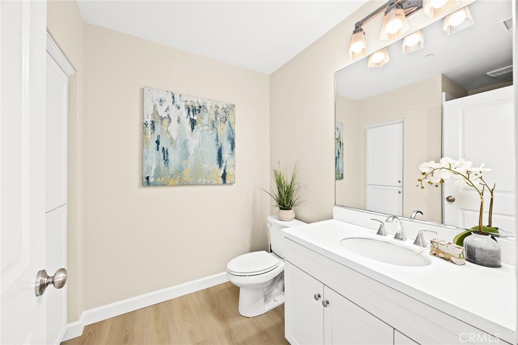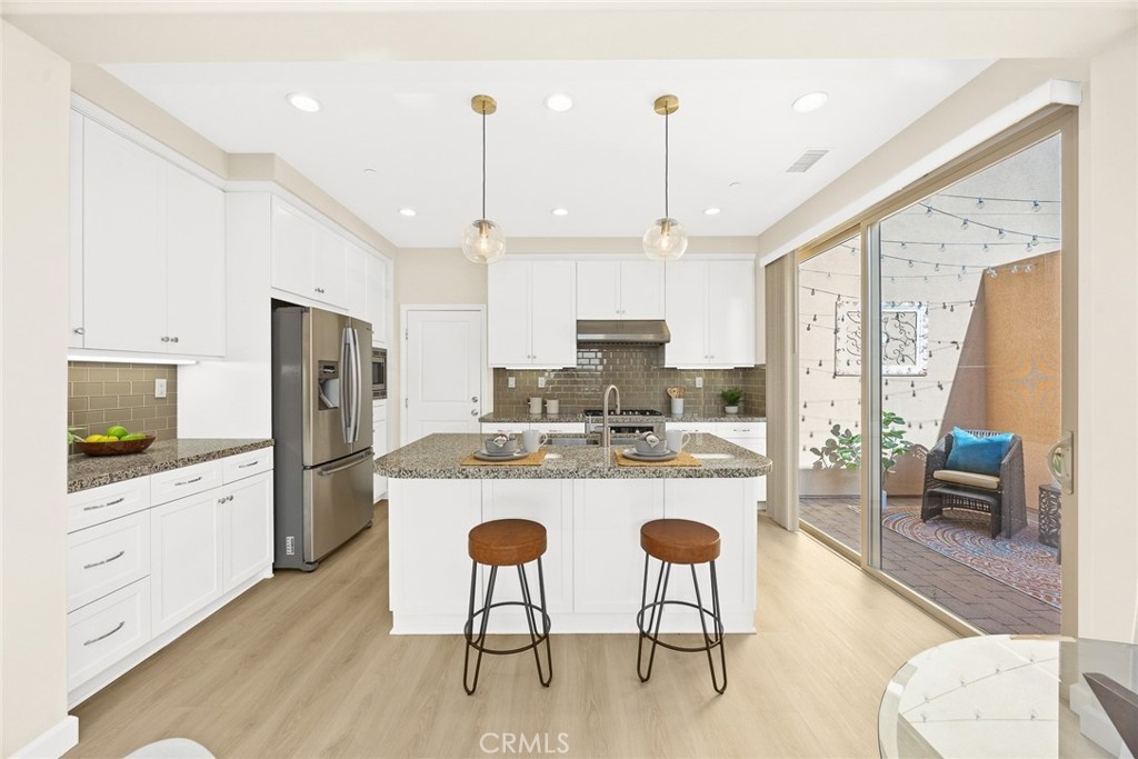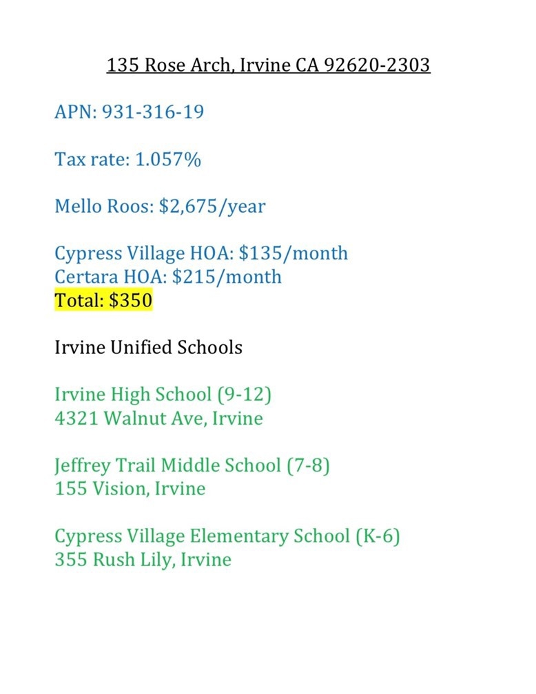 Indulge in love at first sight with this contemporary haven in Cypress Village. FIRST LEVEL BEDROOM + FULL BATH. It’s a rare 3 bed + 3 full bath home with attached 2 car garage. BRAND NEW luxury vinyl floors and INTERIOR PAINT. Lots of light! The sleek kitchen boasts a generous size island, granite countertops, full backsplash, Bosch appliance package with gas stove, oven, dishwasher and hood. Large master suite has large walk-in closets. Master bath has dual vanities, a separate shower stall, and a bath. Inside laundry room on the second level. Washer & dryer are included. Recent upgrades include a BRAND NEW insulated garage door (2023), new carpet (2023), new light fixtures in the bedrooms and storage room (2024), new kitchen pedant lights (2024), custom interior paint (2024) and white cordless blinds (2024). Low maintenance side yard with a separate storage room. The storage room next to the side yard can also be used an office. Brand new flooring in the storage room as well. Irvine Unified. Cypress Village Elementary School is nearby. Cypress Village HOA offers world-class pool, spa, tennis court, playground and multiple parks. Walk to Jeffrey Trail Open Space, Cypress Village Shopping Center, and many great restaurants. 5 freeway, 133 toll road, OC Great Park and Laguna Beach are within easy reach. Come and enjoy this holiday season at this gorgeous home!