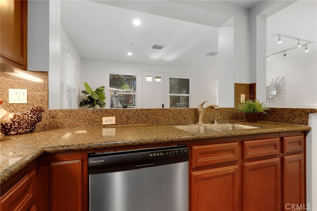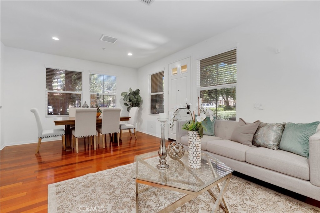Welcome home to this stunning 3 bedroom, 2.5 bath corner end unit townhome in the highly sought-after enclave of Ashton Green in the Turtle Ridge community of Irvine. This home has an abundance of natural light with an open floorplan, designer paint, and beautiful rich wood floors downstairs. The kitchen has been elegantly upgraded with granite countertops, full granite backsplash, stainless steel appliances, and an eat-at bar top. Upstairs are two spacious bedrooms that share a full bath and the primary bedroom suite that features a private balcony that overlooks a serene and manicured courtyard area. The primary bathroom presents well with a dual sink vanity, a sizable walk-in closet, and a stroll-in shower. There is direct access to the two-car side-by-side garage off the kitchen which makes it easy for unloading after those Costco runs! The garage has a 220-V outlet (NEMA 14-50) for charging electric vehicles. The HOA amenities include exterior/roof maintenance, Fire insurance, and a sparkling resort-style pool with spa and BBQs. You have award-winning Irvine Unified Schools of Vista Verde Elementary and University Highschool nearby while also being in close proximity to Fashion Island, Back Bay, World-Class OC Beaches, John Wayne Airport, UCI, and South Coast Plaza. Hurry this home won't last !!