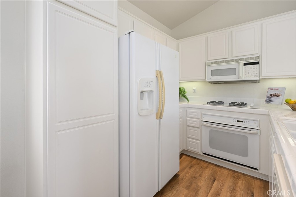 THIS BEAUTIFUL SUPERIOR CORNER LOCATION HOME IS STEPS TO TWO OF THE ASSOCIATION POOLS & TENNIS COURTS. NO MELLO ROOS, and VERY LOW HOMEOWNER ASSOCIATION. ATTACHED SIDE-BY-SIDE TWO CAR GARAGES WITH DIRECT ACCESS. As you enter from the garage or the front door you step to the main floor. LIVING AREA ALL ON ONE LEVEL. You are greeted with Bright great room boasting beautifully upgraded laminate wood floors in the kitchen and dining area. Gourmet kitchen equipped with breakfast bar and FRESHLY PAINTED CABINETS. THE LIGHT AND BRIGHT LIVING ROOM BOASTS FIREPLACE AND FRENCH DOOR LEADING TO YOUR GORGEOUS BALCONY. This beautiful home offers window wood shutters, and mirrored closet doors. Grand primary bedroom with vaulted ceiling, mirrored closet doors, dual vanity, and more. Community offers 3 pools and spas, Sport Courts, and Tennis courts, play areas and beautiful green parks. Walking distance to shopping center, local restaurants, bakeries and so much more.