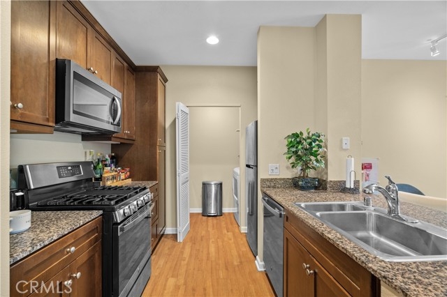 Welcome to the distinguished and stylish Avenue One Community in the heart of Irvine! This updated two-bedroom suite condominium is nestled in a highly sought after location, it's truly resort-style living at its best. The building warmly welcomes with gorgeous architecture, balconies, and wrought iron security gates for your safety. Beaming with shimmering natural light, the condo’s interior delightfully stuns with a neutral color scheme. The open-concept kitchen highlights granite countertops, stainless steel appliances, and recessed lighting. Additionally, the kitchen and bathrooms feature high traffic flooring, all appliances are included along with the washer and dryer, and the unit has central A/C and heat. Both bedrooms highlight walk-in closets, plus the warmth of carpeting. A gated parking structure offers two reserved parking spots and EV charging stations for your convenience. Live in this gorgeous neighborhood and enjoy an abundance of amenities headlining a clubhouse with kitchen for your use, Olympic sized pool, hot tub, outdoor cooking areas, firepit, gym/fitness room, indoor basketball court, conference rooms, media lounge, executive business center, and there’s even a playground plus dog park areas. Conveniently located close to UC Irvine, John Wayne Airport, easy highway access, the Irvine Business Hub, restaurants, and prestigious shopping at South Coast Plaza. What else can you ask for, call now for a private tour!