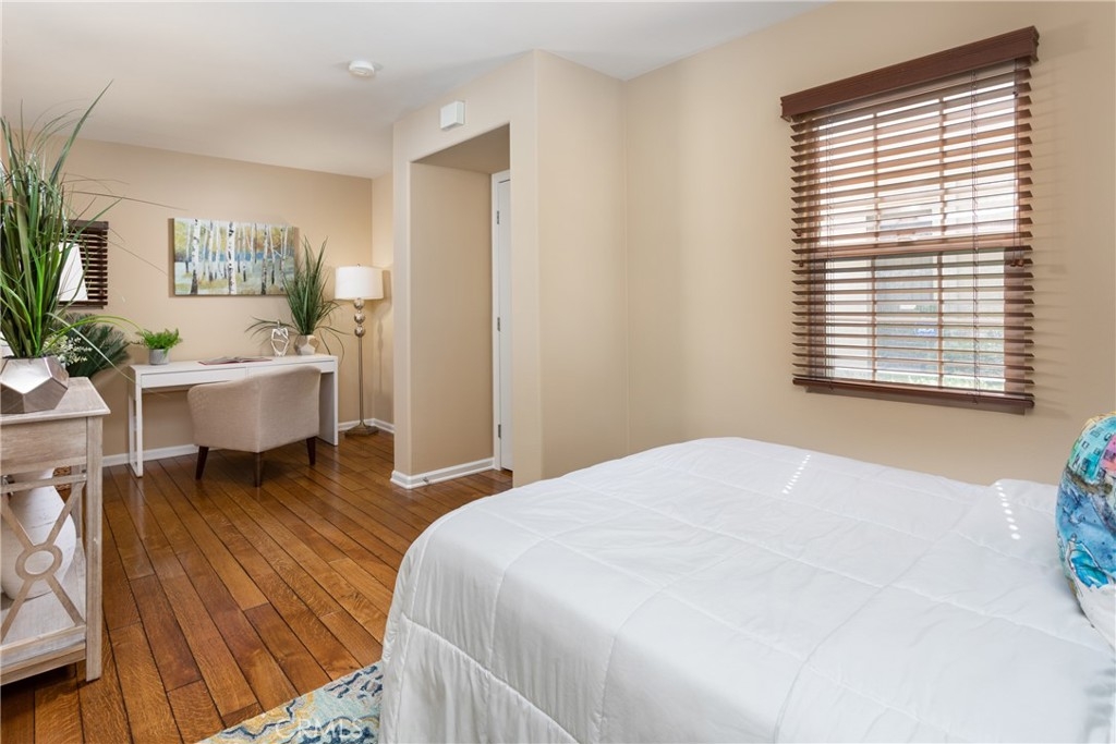 Located in the heart of the highly desirable community of Woodbury in Irvine, this beautiful detached condo is situated in an amazing premium lot location. The home gets a lot of natural sunlight to enjoy the sun-bathed living space, primary bedroom suite, and a spacious upstairs patio surrounded by views of lush green trees. The primary bedroom is located upstairs with a walk-in closet and direct access to the patio. The first-floor bedroom has its own ensuite bathroom and spacious layout that can create another relaxing space within the bedroom or can easily function as a home office or gym. Some of the upgrades include wide plank wood flooring throughout the entire home, designer tile and backsplash, custom design paint, and all stainless appliances. Also, beautiful bedroom doors and frosted glass have been added to both bedrooms upgrading from the original model, brand new water heater, and revamped AC unit. The shopping center, pools, sports courts/fields, and Woodbury Elementary School are all within 5-minutes walking distance under shaded trees and no signal lights. The Jefferey Trail is also just a 10-minute walk from this homey community laced with greenbelts and playgrounds. HOA amenities include access to the resort-style pools, spas, outdoor cooking areas with BBQs, parks, sports courts, tennis basketball courts, clubhouse, fire pits, and more!