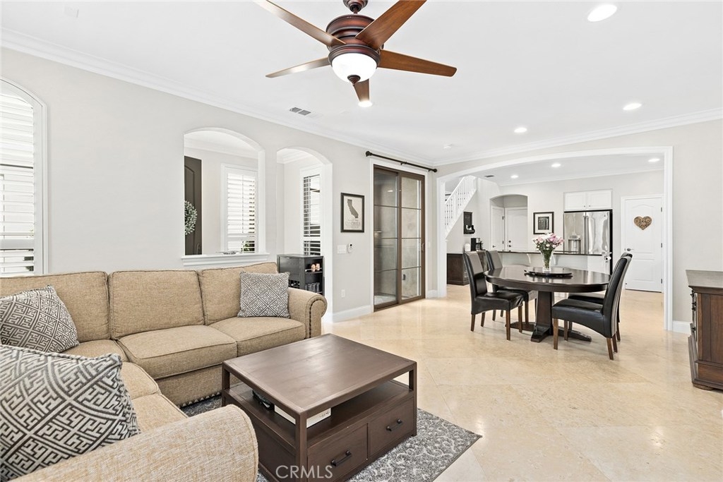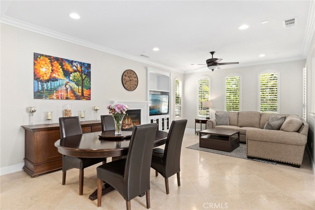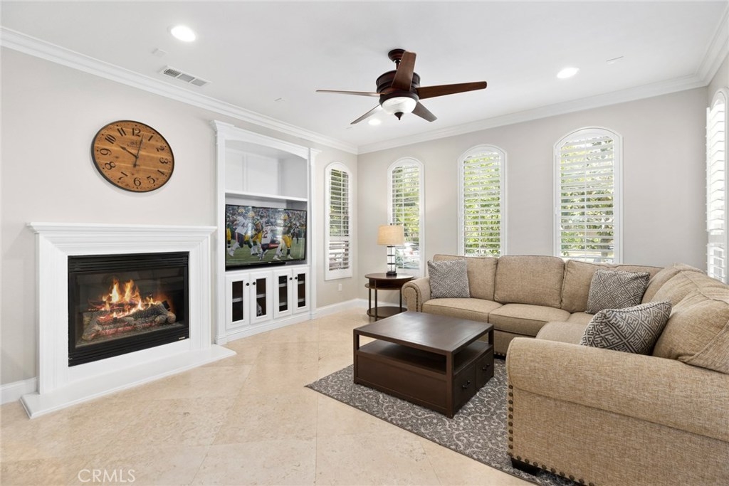 Bright, Open-Plan Living! This fantastic completely detached home in Irvine’s Woodbury community offers elegant living spaces, tons of upgrades, sunny outdoor spaces and excellent amenities. The heart of the home is its open-plan first floor, with luxurious 24” travertine tile floors, recessed lighting and lots of bright windows. This modern layout is perfect for entertaining, seamlessly transitioning from living to dining to kitchen. You’ll love the built-in entertainment center and fireplace in the living area. The kitchen boasts beautiful granite counters and island, custom tile backsplash, chic white cabinetry and stainless steel appliances. The master suite includes a gorgeous bathroom with dual vanities. The home features a whole house fan, and the upper level features three Solatube Daylighting systems for even more natural light. Upgrades include newer paint throughout, new baseboards throughout the common spaces, newer laminate flooring on stairs and landing, and newer carpet in bedrooms. The bathrooms feature new quartz countertops and new fans. Relax in the backyard complete with custom turf and hardscape. Enjoy a two-car garage with pristine epoxy floors and built-in cabinets. Easy access to community parks, pools, sports courts, and shopping and dining at nearby Woodbury Town Center.