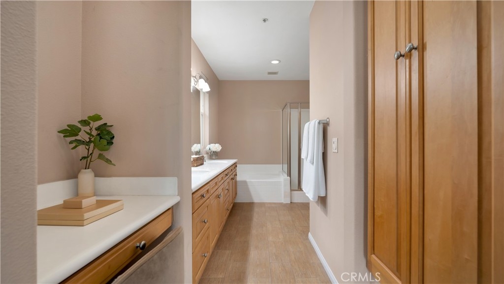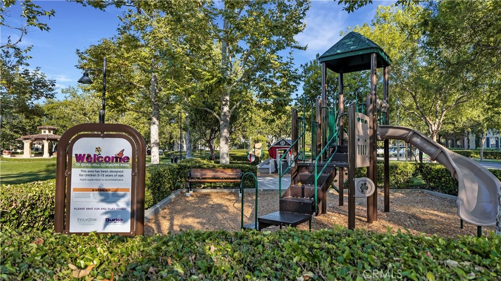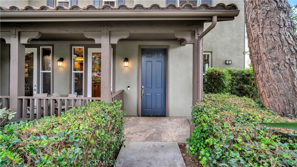 Welcome to 47 Nightshade, a beautifully appointed corner home in Irvine’s coveted Quail Hill Village, blending elevated design with everyday comfort. One of the few residences offering no steps leading to the front door, this thoughtfully designed two-story floor plan includes a main-level bedroom and full bath, ideal for guests, multigenerational living, or a private home office. Inside, discover rich blue tones, designer lighting, and an elegant gas fireplace anchoring the open-concept living area. The seamless transition from living to dining to kitchen makes entertaining effortless, while expansive windows capture scenic views of the surrounding greenery, creating warmth and connection throughout. Upstairs, the primary suite impresses with soaring ceilings, a sleek oversized metal ceiling fan, for a modern and airy retreat. Step outside to a covered porch, a perfect extension of your living space. Begin your mornings with a peaceful cup of coffee or unwind in the evening with al fresco dining and tranquil park views. As a premium corner unit, this home offers added privacy and is just steps from the Common Park, fitness center, and year-round heated pool. Set within a resort-inspired community, Quail Hill provides access to multiple parks, scenic trails, and award-winning Irvine Unified schools, including University High School. Conveniently located near major freeways (405, 5, 133), this residence offers the perfect balance of accessibility and tranquility.