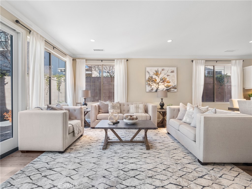 Nestled in the highly desirable Woodbury East community, this gorgeous END UNIT DETACHED CONDO is situated on a PREMIUM LOCATION and features four bedrooms and three bathrooms. The Master Suite and Guest Bedroom on the 1ST FLOOR and LOFT plus 2 additional bedroom on the 2ND FLOOR. The BRIGHT and OPEN FLOOR PLAN flow seamlessly from the well-appointed kitchen which boasts GRANITE Countertops, STAINLESS STEEL APPLIANCES and CENTER ISLAND and bar seating that open the dining room to the living room. The MAIN FLOOR MASTER SUITE features large WALK IN CLOSET, en-suite bathroom with DUAL SINKS, SOAKING TUB and SEPARATE SHOWER. UPSTAIRS LOFT is perfect for children's playroom or WORK AT HOME SPACE and two generously sized secondary bedrooms and full bath. Additional highlights include Luxury Vinyl WOOD FLOORING, DUAL PANE Windows and TANKLESS WATER HEATER. Relax in your PRIVATE BACKYARD and low maintenance patio area and LOW HOA DUES. Enjoy a short walk to Woodbury Town Center and enjoy resort-like amenities which include JR OLYMPIC SWIMMING POOL, SPA, TENNIS and BASKETBALL COURTS, barbecues, tot lots and walking distance to WOODBURY TOWN CENTER, minutes to JOHN WAYNE AIRPORT, IRVINE SPECTRUM, SOCAL BEACHES and AWARD WINNING IRVINE SCHOOLS.