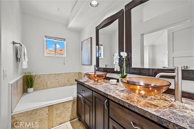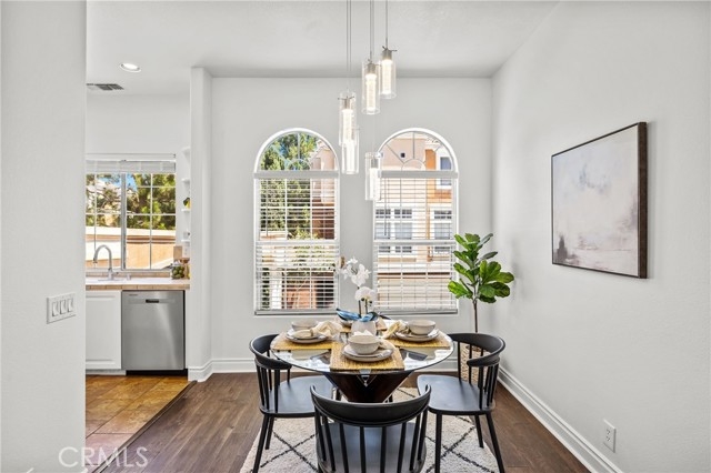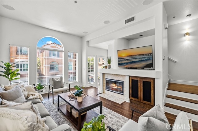 Welcome to one of the most desirable end-unit condos in Westpark Corte Bella, a gated enclave known for its luxury and convenience. Inside, you'll find 1 bedroom, 1.5 bathrooms, and a versatile loft w/ closet that easily functions as a second bedroom, home office, or creative studio. One of the highlights of this rare corner unit is that it features the largest balcony in the entire complex- perfect for entertaining or enjoying year-round outdoor living. The light-filled interior features high ceilings, arched windows, and fresh paint throughout. The upgraded kitchen is outfitted with white cabinetry, a gas stove, stainless steel microwave, dishwasher + refrigerator (all stainless appliances less than a year old), and tile countertops w/ matching backsplash. The open-concept layout seamlessly connects the living and dining areas, featuring a cozy fireplace, real hardwood floors, and a built-in media center. The spacious primary bedroom offers a walk-in closet, elegant Travertine tile floors, and an en-suite bathroom featuring a custom double vanity with amber glass sinks, a walk-in shower, and a separate soaking tub. Additional highlights include a direct-access 1-car garage with extra storage and in-unit laundry, plus exceptional privacy with no neighbors above or below. Take advantage of resort-style amenities including a pool, spa, and BBQ- all covered by the HOA, which also includes water and sewer. Best of all, there are NO Mello Roos assessments. Outdoor recreation is just steps away at Col. Bill Barber Memorial Park and San Remo Park, offering tennis and basketball courts, playgrounds, soccer and softball fields, an amphitheater, and more! Conveniently located near The District, Costco, H-Mart, Sprouts, and top-rated Irvine schools, with easy access to John Wayne Airport and major freeways- this is low-maintenance living in one of Irvine’s most sought-after communities. Don’t miss your chance to call this stylish and spacious home your own.