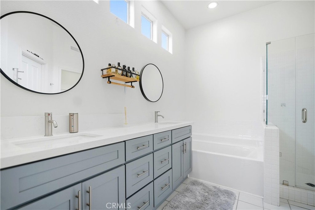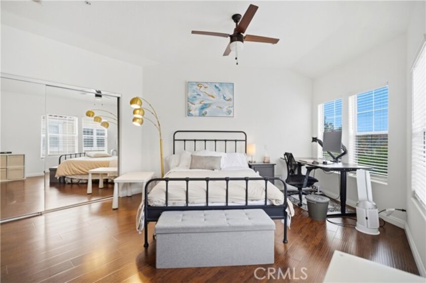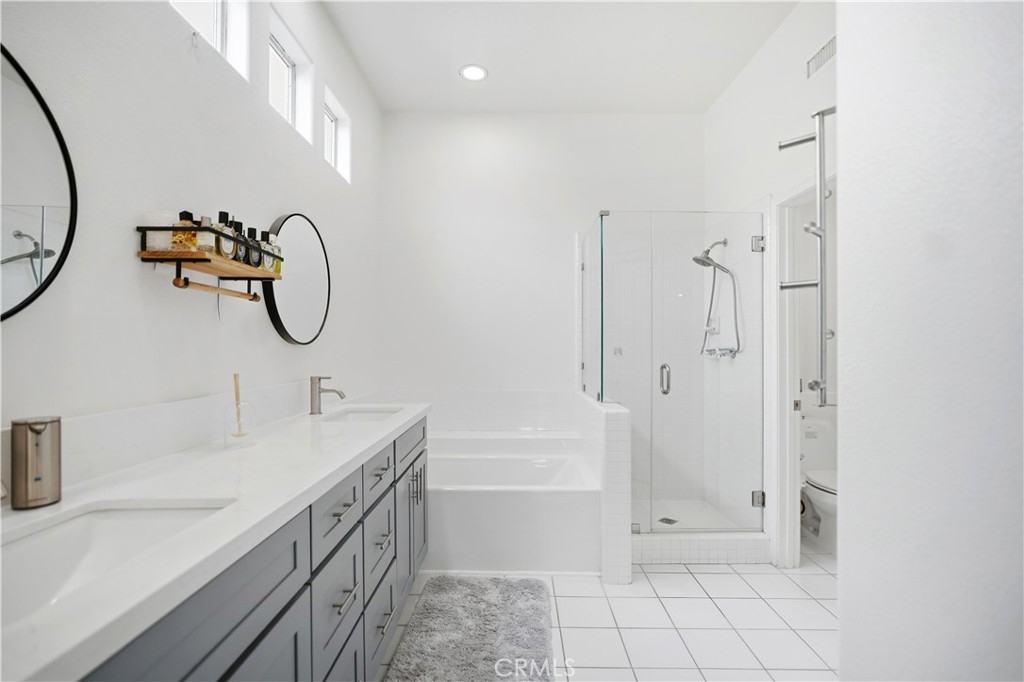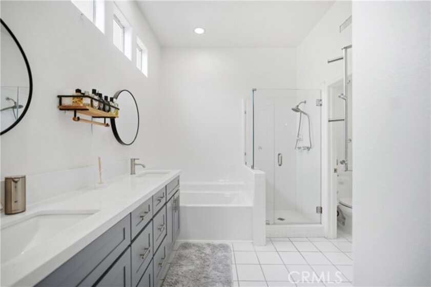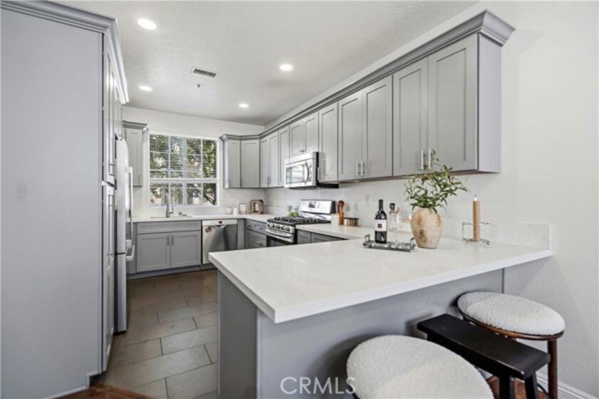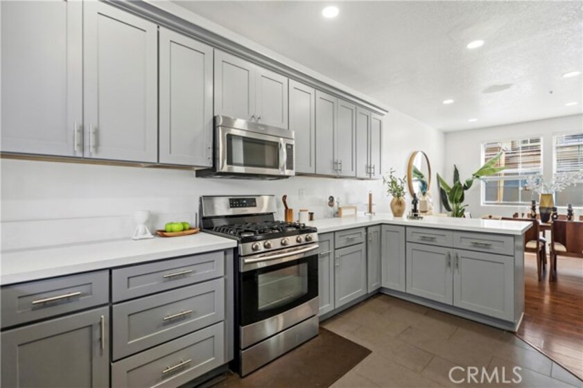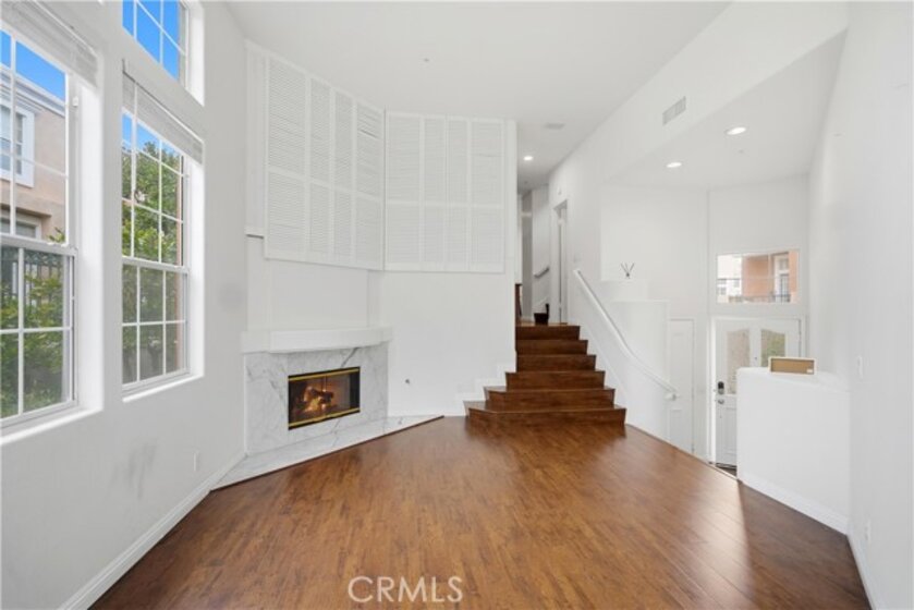 Welcome to Westpark Corte Bella, a gated Mediterranean-style community in the heart of Irvine. This corner unit with pool views offers three bedrooms and two and a half bathrooms. The open-concept living area includes high ceilings and abundant natural light throughout the home. The kitchen features contrasting cabinetry and white quartz countertops, along with separate living and family rooms. The patio overlooks the community pool and provides an outdoor space for everyday use. All bedrooms are located upstairs. The primary bedroom includes multiple windows and an en-suite bathroom. Two additional bedrooms are situated on the opposite side of the hallway and share a full bathroom. Community amenities include a pool, spa, BBQ area, courtyard, fountains, and additional common areas.