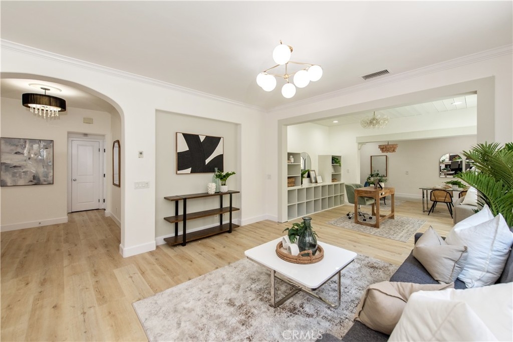 Welcome to 7 Nature, a charming 1,800 SF (inclusive of downstairs expansion), 3-bedroom, 2.5-bathroom DETACHED condo with NO COMMON WALLS in Irvine's highly desirable Woodbury community. This beautiful home features a fully customized and redesigned open-concept layout with wood flooring throughout, seamlessly connecting the living and dining areas perfect for entertaining. The gourmet kitchen is equipped with modern appliances, including a freezer, microwave, range/oven, and trash compactor. Upstairs, three well-appointed bedrooms provide ample space, with the master suite offering an en-suite bathroom for added privacy. Central air conditioning and forced-air heating ensure year-round comfort. The attached garage accommodates one vehicle, with additional parking available within the community. Residents enjoy access to Woodbury's resort-style amenities, including parks, pools, and recreational facilities, all within walking distance. Located in the award-winning Irvine Unified School District, this home is just steps from Woodbury Elementary School. Nearby shopping centers, dining options, and easy access to major highways make this an unbeatable location. Experience the perfect blend of convenience, style, and community at 7 Nature. Buyer to verify additional square footage.