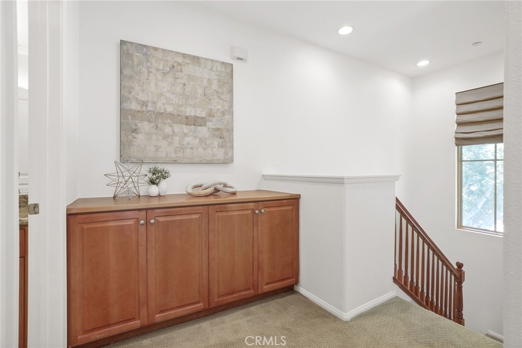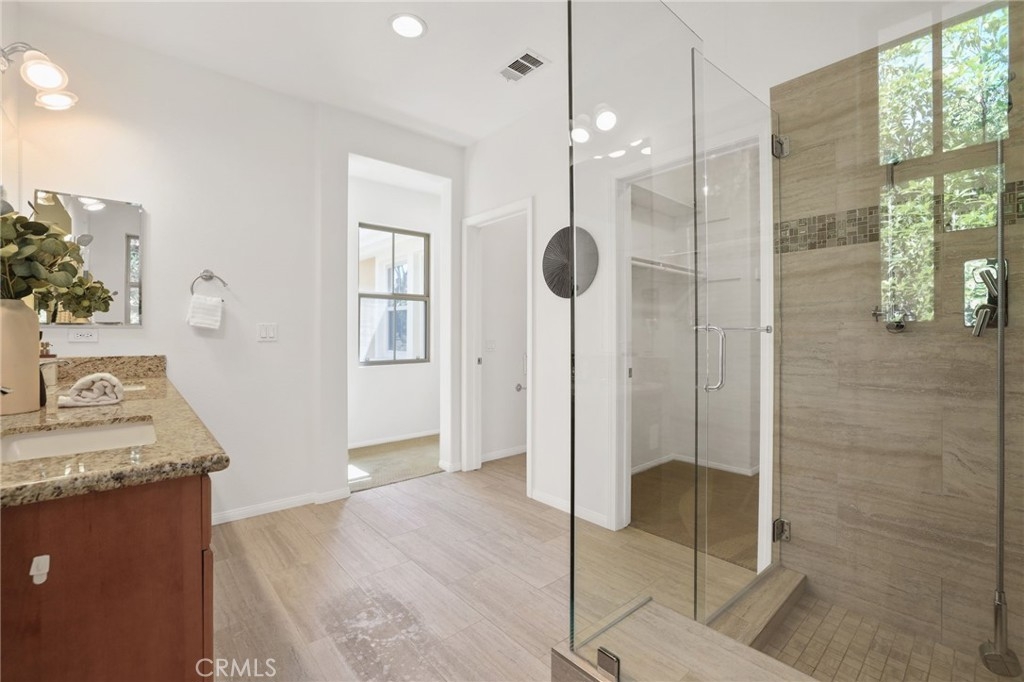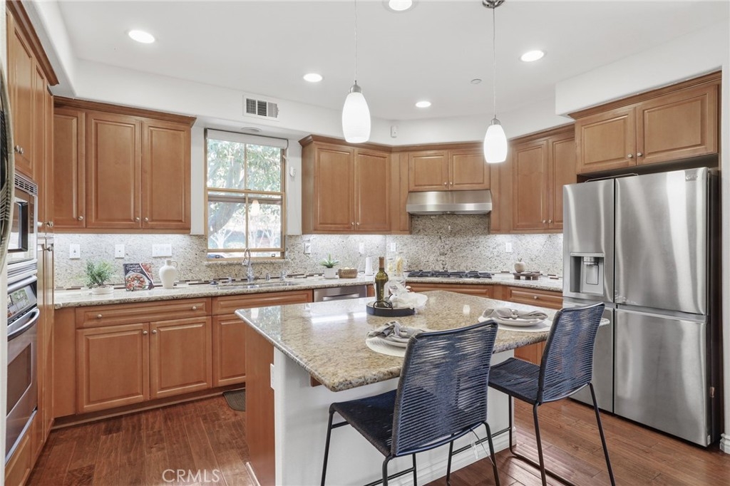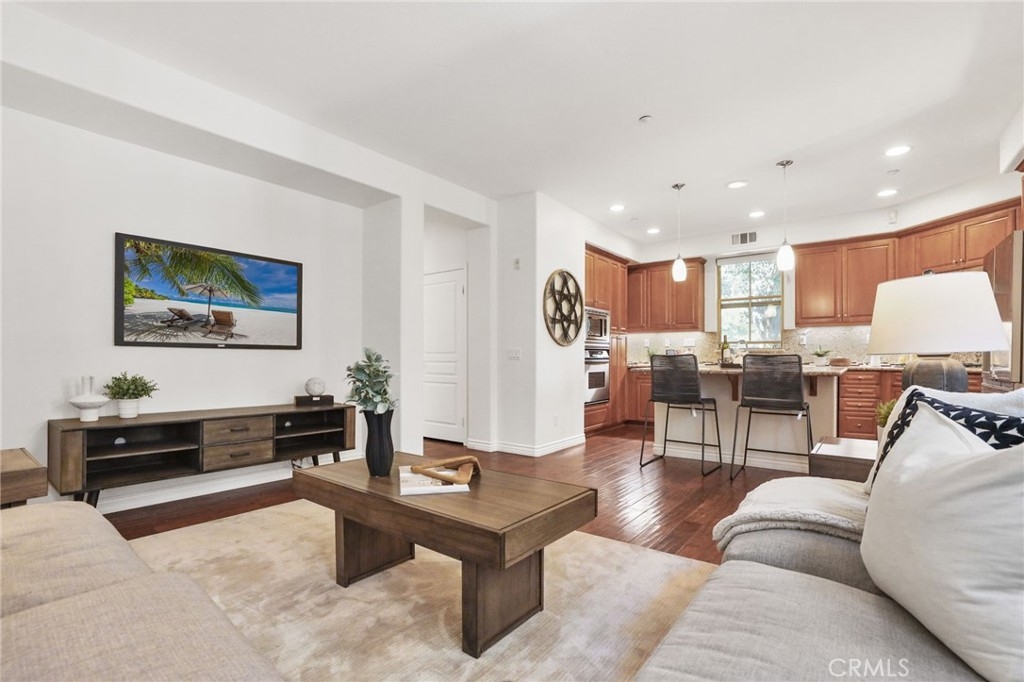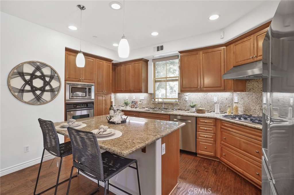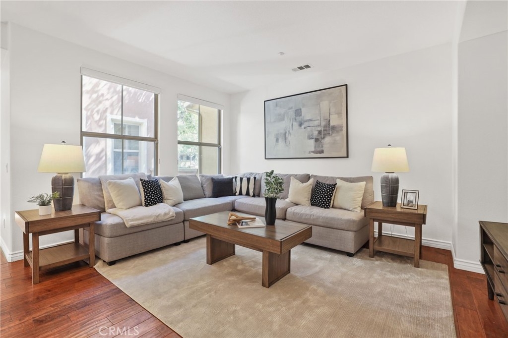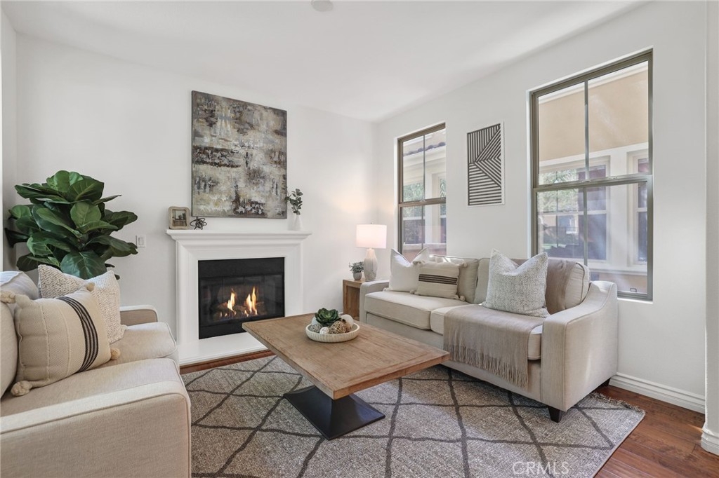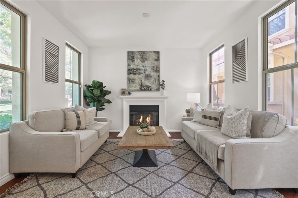 Tucked inside Irvine’s sought-after Woodbury community, this beautifully maintained END-UNIT condo offers comfort, functionality, and the lifestyle today’s buyers want. A charming front porch welcomes you in, while fresh paint throughout gives the home a crisp, clean feel from the moment you step inside. The bright living room features a cozy fireplace and rich hardwood flooring that flows through the entire main level. Just beyond, the dining area—with recessed lighting—opens to a private courtyard, ideal for al fresco dinners or your morning coffee. The kitchen is both stylish and practical, with a large granite island and bar seating, stainless steel appliances, maple cabinetry, and abundant storage. It flows seamlessly into the spacious family room, creating a perfect space for entertaining or relaxed everyday living. Downstairs also features a guest bath and a separate laundry room with built-in storage. Upstairs, two secondary bedrooms offer mirrored closet doors and easy access to a full bath with granite counters and tile flooring. The upstairs hall includes bonus linen cabinets for added convenience. The primary suite is light-filled and airy, with its own private balcony and a Juliet balcony to let the breeze in. A large walk-in closet complements the ensuite bath, which features dual vanities, recessed lighting, and an oversized walk-in shower with a built-in bench. Enjoy the resort-style amenities Woodbury is known for, including tennis and pickleball courts, basketball courts, multiple pools, and beautifully maintained green spaces. In addition, you're just minutes from the Irvine Great Park, where you'll find a sports complex, soccer and baseball fields, a championship tennis center, playgrounds, a carousel, farmers market, bike trails, and the iconic Great Park Balloon—perfect for weekend adventures and outdoor fun. Located in the award-winning Irvine Unified School District, this home offers the perfect balance of comfort, convenience, and community.