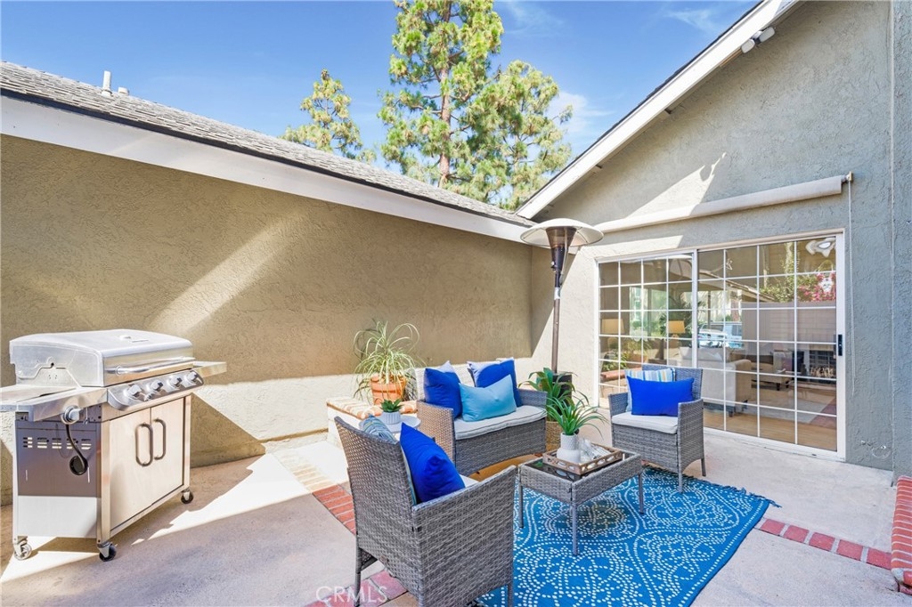 Live ½ bock from Heritage Park in Irvine! Whether it’s family fun time at the playground and sports courts/fields, or a peaceful stroll around the large duck pond, Heritage Park is a treasured community amenity that can be enjoyed every day from this home! This special 3 Bedroom 2 ½ Bath home is perfect for first-time home buyers, growing families, or long-term investors. Priced to account for personal improvements, this property will save you hundreds of thousands of dollars as compared to new construction properties. There is NO Mello-Roos, the tax rate is low, and the HOA dues are affordable. Simply move in, enjoy life, and then personalize over time. This end unit truly feels like a single-family home with high ceilings, lots of sunlight, and no shared living-space walls with the neighbors. Just one interior corner and the garage wall are connected to the adjacent unit. The floorplan offers tons of living and entertaining versatility with the large living room and dining room spaces, the kitchen and breakfast space, main-level guest restroom, direct access to the large 2-car garage, and three convenient points of access to the private outdoor patio space. The living room features vaulted ceilings with recessed lighting, oversized windows with views of the lush outdoor space, a cozy gas fireplace, access to the private outdoor patio, and a bonus kid/pet nook under the stairs! The kitchen features fresh white cabinets, quartz counters, custom tile backsplash, and stainless appliances and the oversized breakfast nook / optional casual sitting play area. Upstairs are three spacious bedrooms and two full baths. The primary bedroom features a large walk-in closet (custom closet system), and private bathroom. This home features freshly painted walls, upgraded central AC system, dual-pane windows, recessed lighting, and solid surface floors throughout (except in closets). HOA amenities include use of the swimming pool, spa, playground, and park. They also cover exterior building & landscape maintenance and preventative pest control. The location of this unit is away from the main roads with quick access to tons of shopping and dining on Culver Drive and the 5 freeway. Parking is not restricted so having guests over is not an issue.