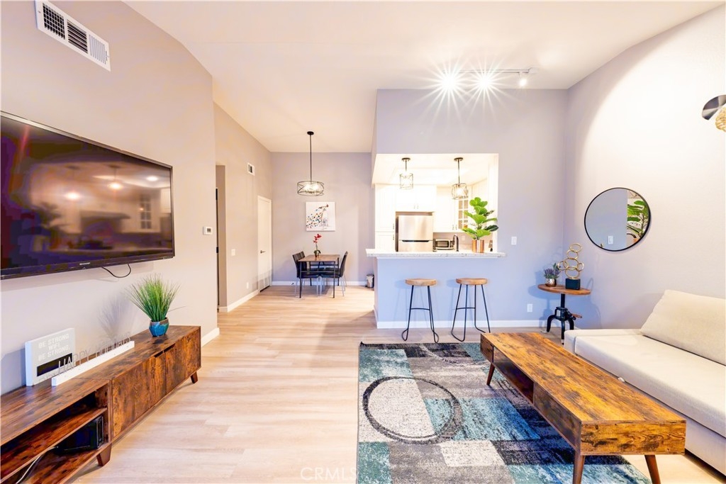 This home offers a bright, open floor plan with high, vaulted ceilings, providing a spacious and airy ambiance. The living and dining areas are generously sized, featuring a Casablanca ceiling fan for efficient cooling. Enjoy casual dining at the fully equipped kitchen bar, while the master suite boasts a large walk-in closet for all your storage needs. A convenient stacked washer and dryer are also included. Step out onto the private balcony, perfect for morning coffee, and take in the meticulously maintained landscaping. For outdoor relaxation, the sparkling community pool and spa are just a short stroll away. Ideally situated near Heritage Park, with easy access to shopping, dining, and the Santa Ana Freeway, this home combines comfort with convenience. Proximity to attractions like parks and a library adds an extra layer of tranquility and charm to this inviting retreat. Don’t miss your chance to make this your dream home—schedule a tour today! DISCLAIMER: Information provided is deemed reliable but not guaranteed. Prospective buyers are encouraged to independently verify details. Agent are related with seller.
