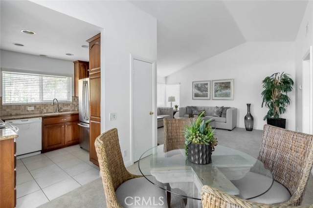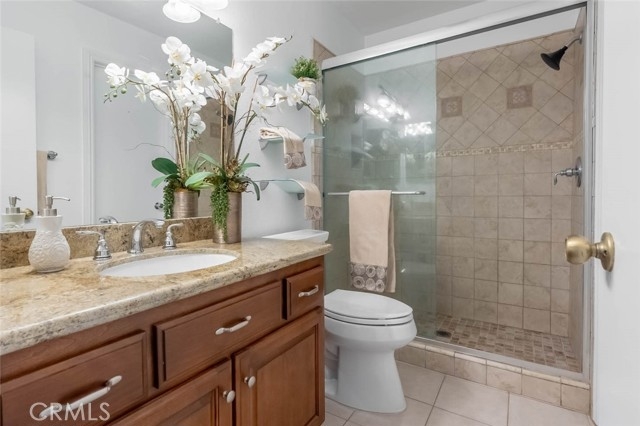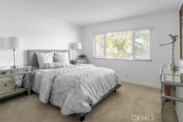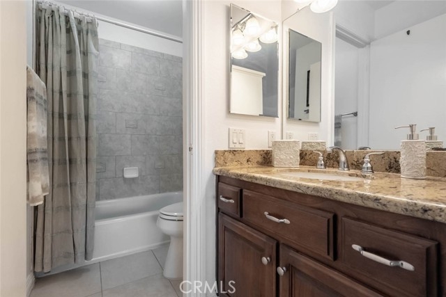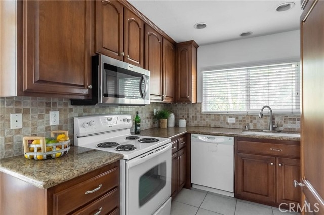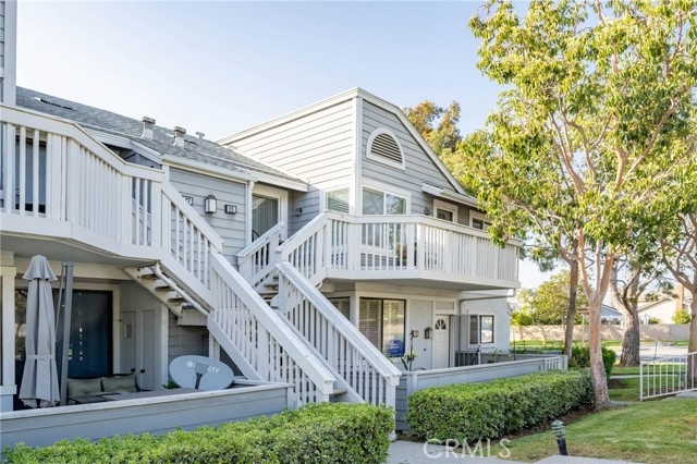 This private upper-level end unit has undergone upgrades and features 2 bedrooms and 2 bathrooms. Dual-pane windows invite ample natural light into the common living areas. The remodeled kitchen boasts granite countertops, tiled backsplash, and new cabinets, offering generous storage space. Equipped with a refrigerator, dishwasher, new microwave, range oven, and stackable washer & dryer. Luxurious, remodeled 'en-suite' bathrooms feature new cabinetry, granite countertops, and tiled showers. The kitchen overlooks the dining area, while a spacious living room provides ample space for entertaining. Conveniently located near schools, shopping centers, and parks. Residents can enjoy association amenities and benefit from the award-winning Irvine Unified School District.