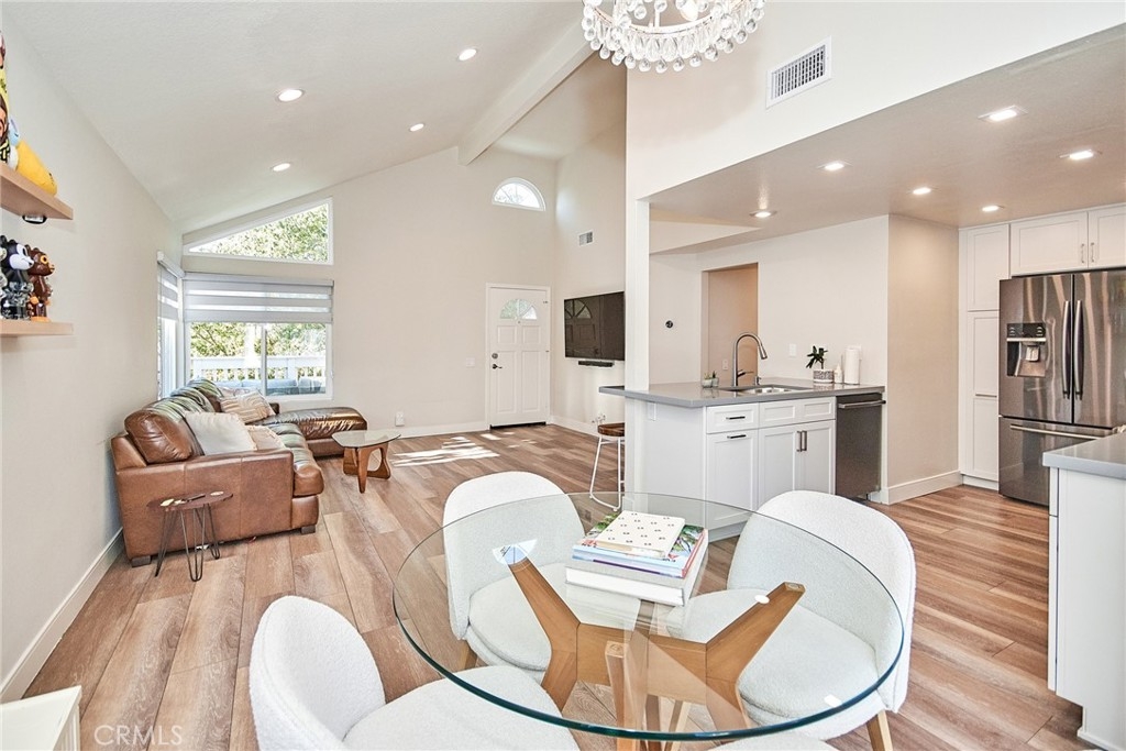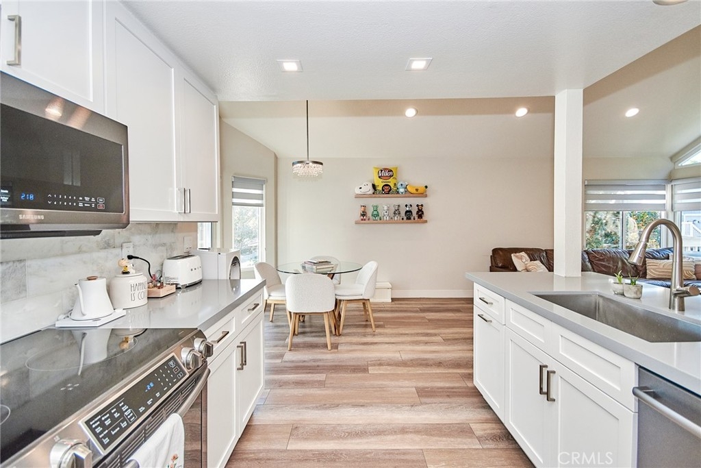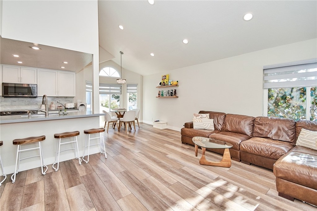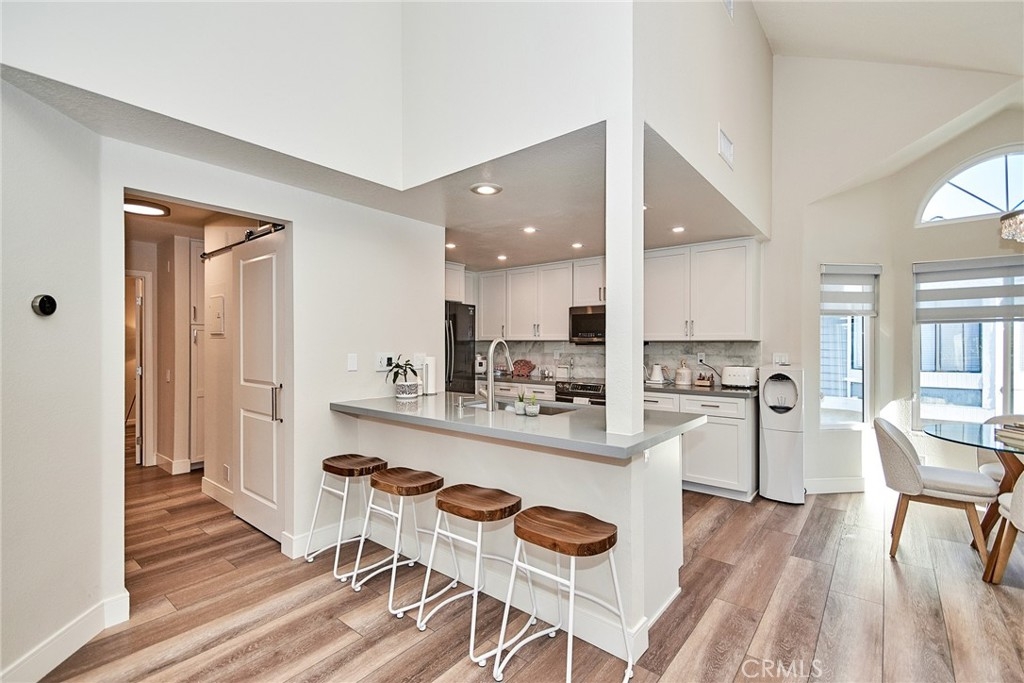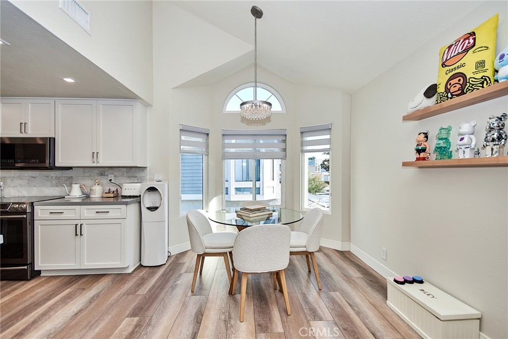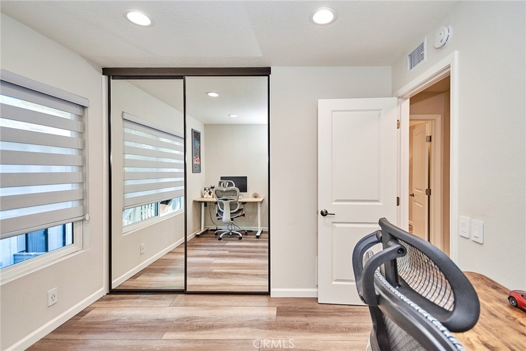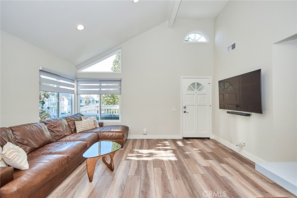 Welcome to this impeccably remodeled 2-bedroom, 2-bathroom corner end unit, offering a unique sense of privacy with no neighbors above or below. Move-in ready, this home impresses from the moment you step inside, featuring a spacious open floor plan, high ceilings, modern laminate wood flooring, and an abundance of natural light. The newly redesigned kitchen is equipped with sleek white cabinetry, refined countertops, full backsplash and premium Samsung stainless steel appliances. A matching in-unit Samsung washer and dryer add convenience. The primary suite showcases an upgraded bathroom and walk-in closet, while the second bedroom features an updated private bath with a luxurious tiled shower. Additional enhancements include recessed lighting throughout and a Nest smart thermostat, all seamlessly integrated with HomeKit for control via your phone or voice commands with Siri or Alexa. The private patio, offering views of lush greenery and captivating sunsets, serves as an ideal space for both relaxation and entertaining. This unit includes one-car garage directly below, with ample guest parking steps away, as well as an additional storage closet located under the stairs. Recent upgrades, such as energy-efficient dual-pane windows, custom window covering, central air conditioning, a new water heater, and fresh paint, ensure this home is in pristine condition. Nestled in the highly desirable Northwood Horizon community, this property is minutes from the Irvine Spectrum, Marketplace, Great Park, major freeways, and top-rated schools. The community features low HOA fees (no Mello-Roos) and provides access to two private pools with spas, all within walking distance of Orchard Park. This exceptional property presents a rare opportunity in a sought-after Irvine location