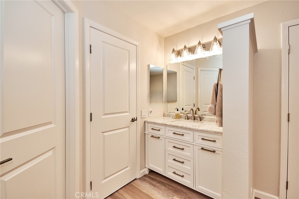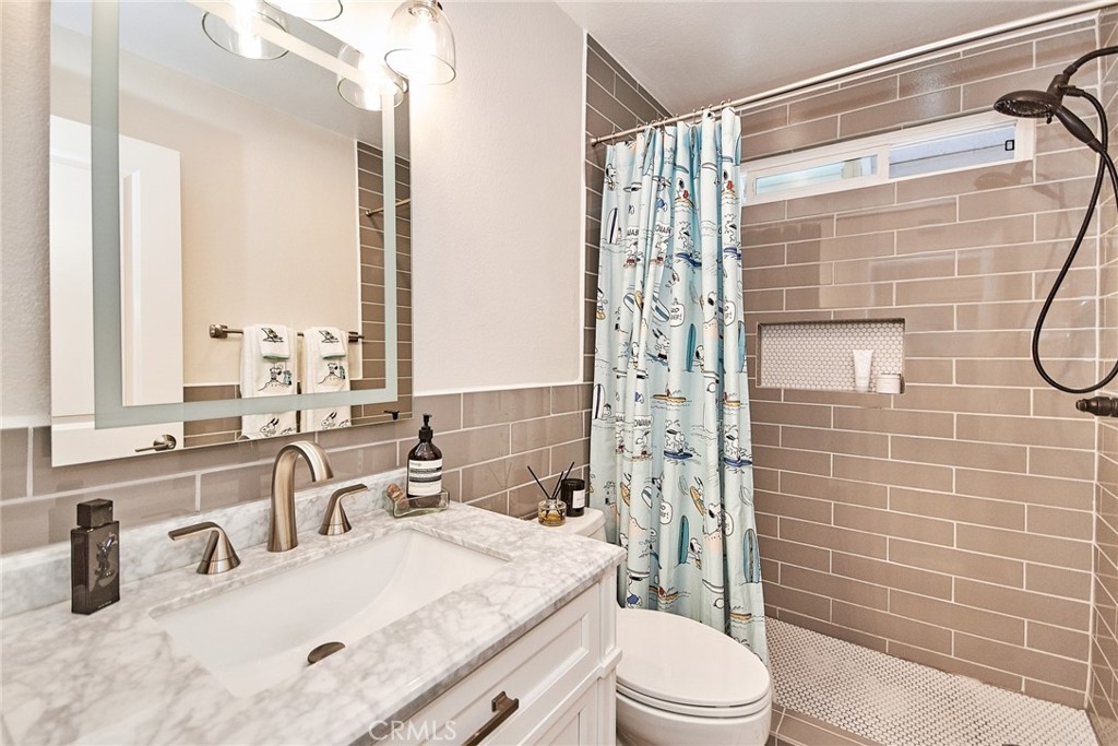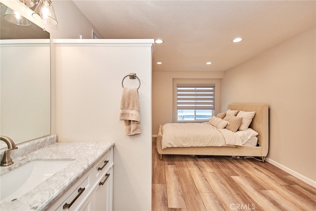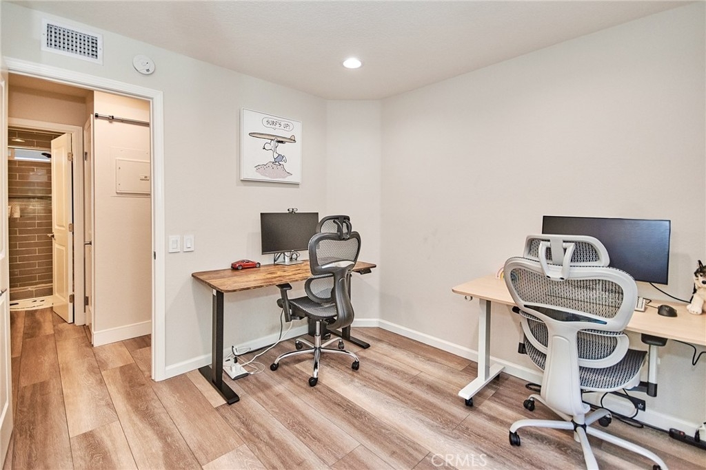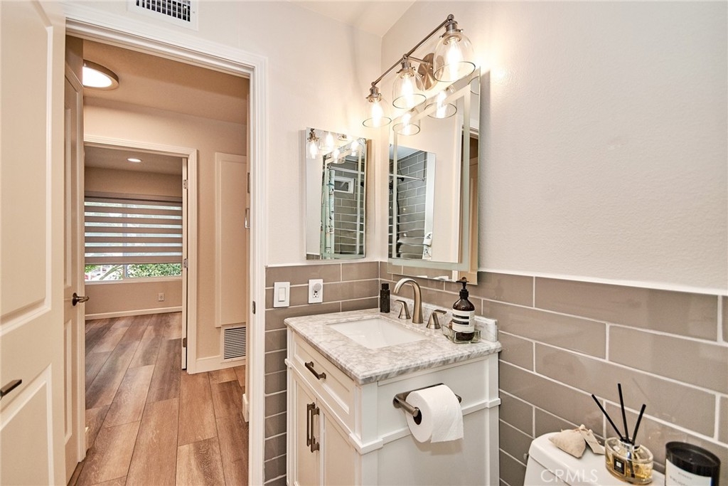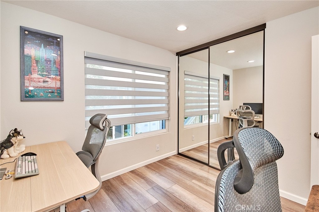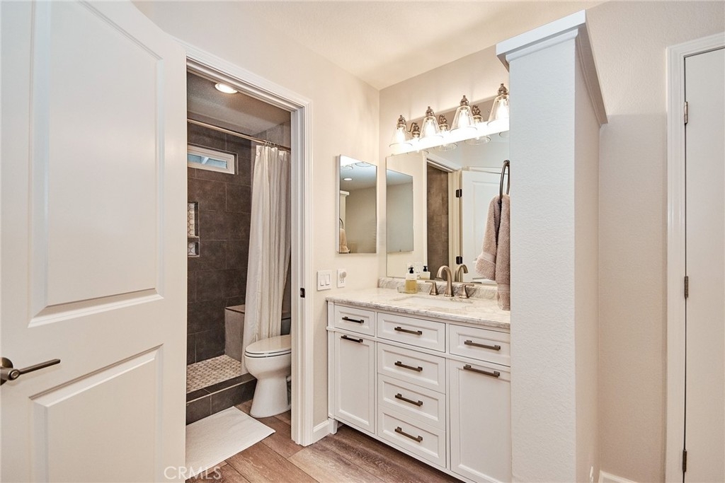 Welcome to this impeccably remodeled 2-bedroom, 2-bathroom corner end unit, offering a unique sense of privacy with no neighbors above or below. Move-in ready, this home impresses from the moment you step inside, featuring a spacious open floor plan, high ceilings, modern laminate wood flooring, and an abundance of natural light. The newly redesigned kitchen is equipped with sleek white cabinetry, refined countertops, full backsplash and premium Samsung stainless steel appliances. A matching in-unit Samsung washer and dryer add convenience. The primary suite showcases an upgraded bathroom and walk-in closet, while the second bedroom features an updated private bath with a luxurious tiled shower. Additional enhancements include recessed lighting throughout and a Nest smart thermostat, all seamlessly integrated with HomeKit for control via your phone or voice commands with Siri or Alexa. The private patio, offering views of lush greenery and captivating sunsets, serves as an ideal space for both relaxation and entertaining. This unit includes one-car garage directly below, with ample guest parking steps away, as well as an additional storage closet located under the stairs. Recent upgrades, such as energy-efficient dual-pane windows, custom window covering, central air conditioning, a new water heater, and fresh paint, ensure this home is in pristine condition. Nestled in the highly desirable Northwood Horizon community, this property is minutes from the Irvine Spectrum, Marketplace, Great Park, major freeways, and top-rated schools. The community features low HOA fees (no Mello-Roos) and provides access to two private pools with spas, all within walking distance of Orchard Park. This exceptional property presents a rare opportunity in a sought-after Irvine location