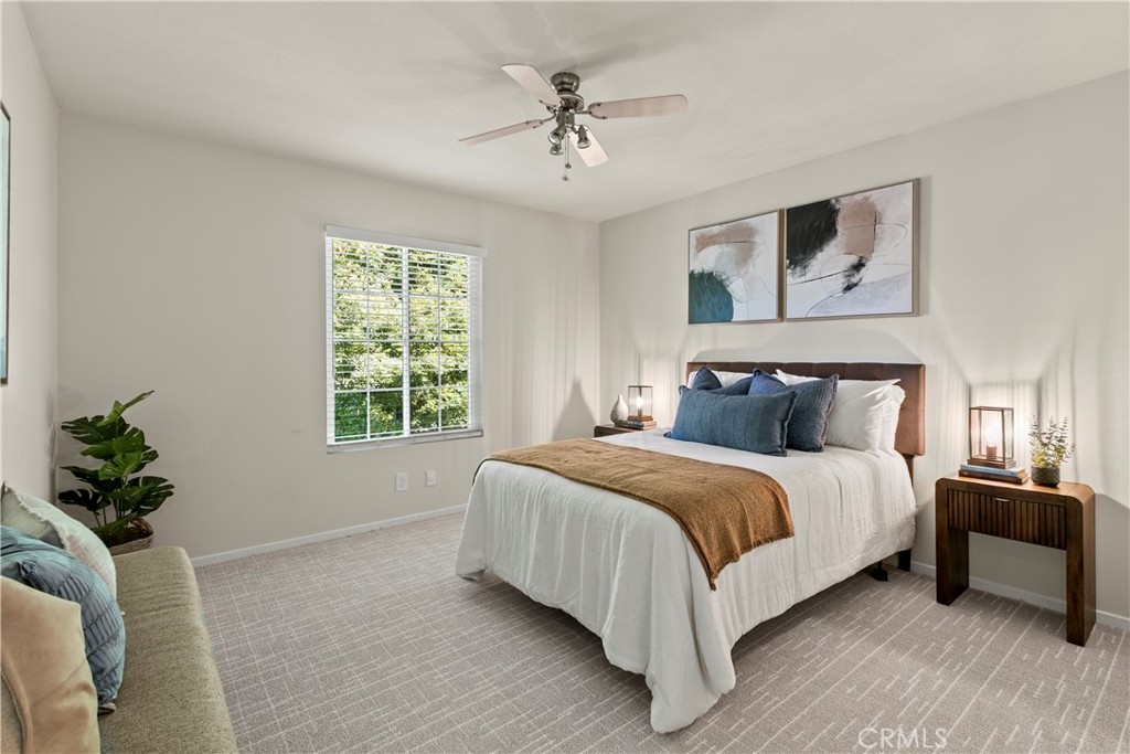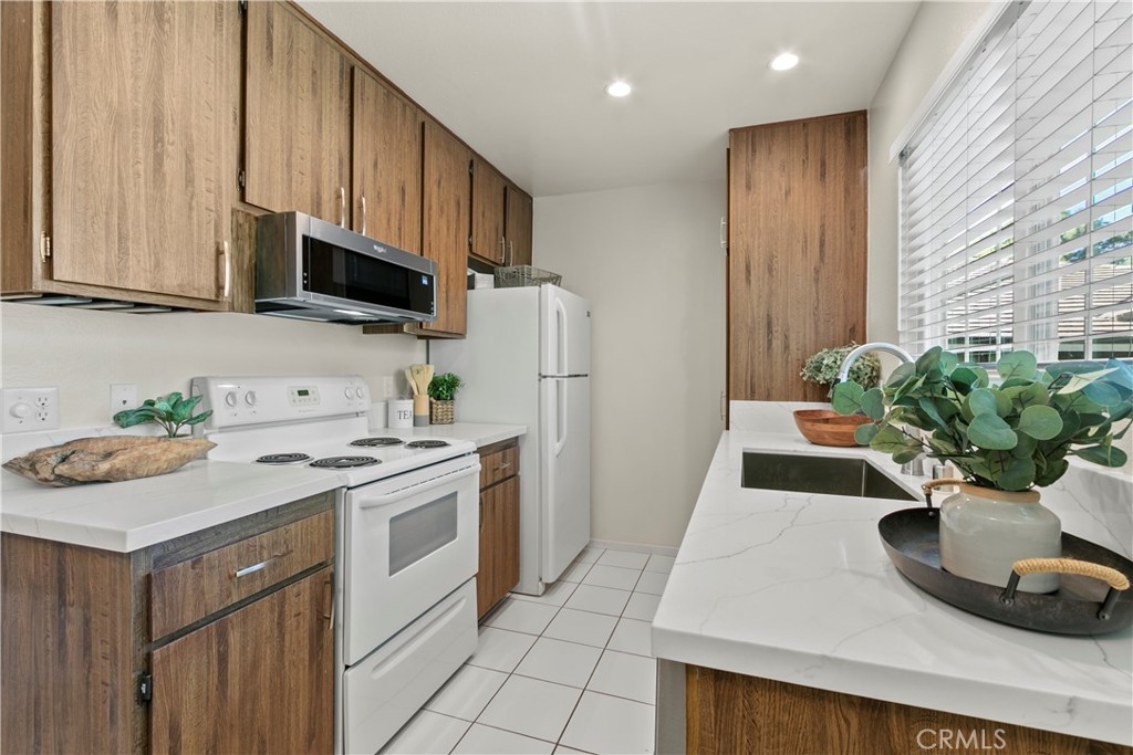 BEST VALUE IN IRVINE! Don't miss out on this UPDATED and immaculate end unit condo in the heart of the Springs community. The relaxing sound of babbling brooks will greet you in the morning, join you as you relax on your private balcony and lull you to sleep every night. A contemporary vibe greets you the moment you enter this OPEN FLOOR PLAN including modern, designer carpet, neutral color palette, quartz counter surfaces and new fixtures. Dual pane vinyl windows and slider keep this home cozy in any climate. This layout can not be beat with large living room with slider to PRIVATE BALCONY, adjoining dining area and perfect kitchen with plenty of storage and counter space. The bedroom suite has room for king size bed, plus separate dressing area has DUAL WARDROBE CLOSETS...plenty of storage here! Dare to compare our $365 monthly HOA dues with any other Irvine community, plus NO MELLO ROOS! This is the perfect spot for your first home, second home, downsizing or investing. Community amenities include multiple pools and tennis courts. Fantastic area with nearby shopping and parks and adjacent to the Eastwood Trail. Welcome home!