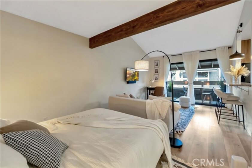 Act quickly to own one of the most affordable turnkey studios in Irvine.Ideal for homeowners and investors. This fully furnished top-floor unit offers cottage-style living with a modern-retro touch, combining warmth, comfort, and updated style. A rare tranquil stream can be seen and heard from the private balcony. The open floor plan is enhanced by tasteful furnishings and a remodeled bathroom. Currently operated as a furnished long-stay rental through December 5, 2025, with another guest scheduled December 20, 2025 – March 1, 2026 (dates subject to change), making it ready for continued investment or future personal use. The community features lush greenbelts, peaceful water elements, and resort-style amenities including a pool and spa, tennis courts, clubhouse, laundry center near the pool, and EV charging stations. A covered carport with a private storage cabinet is included. Conveniently located near Northwood Town Center, shopping, dining, and transportation.