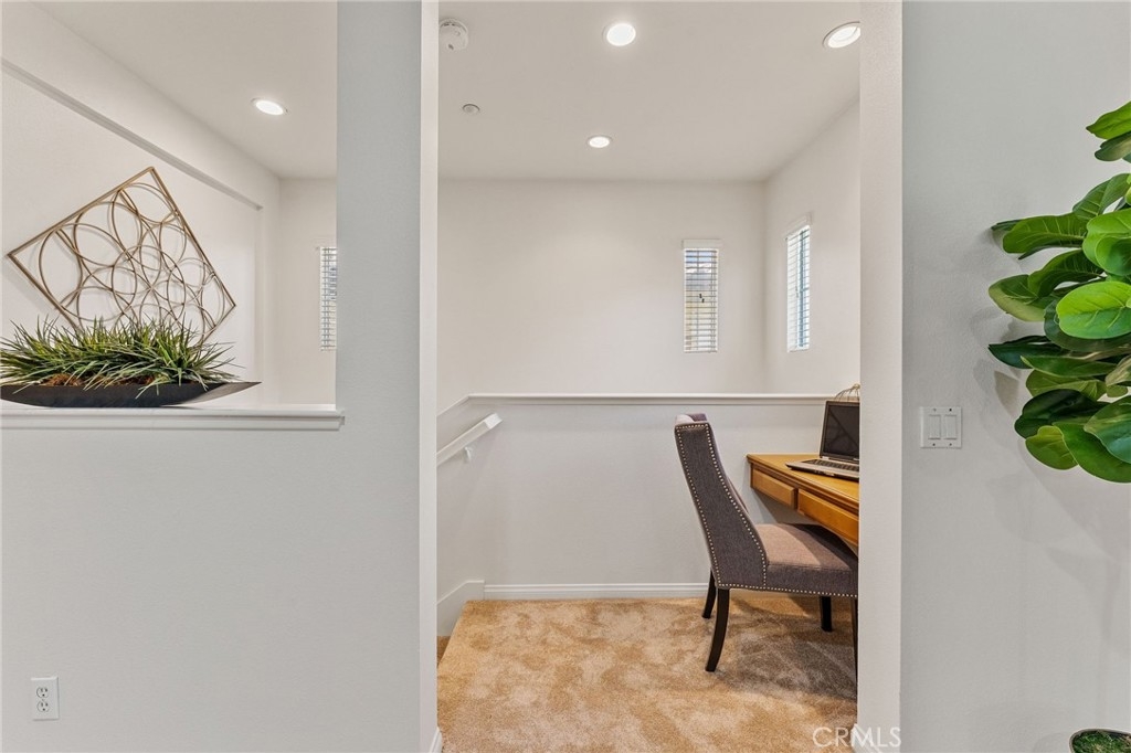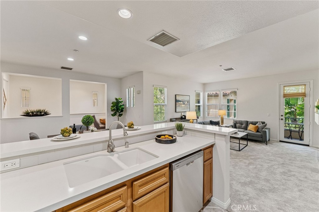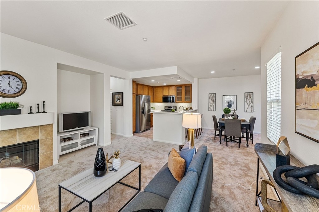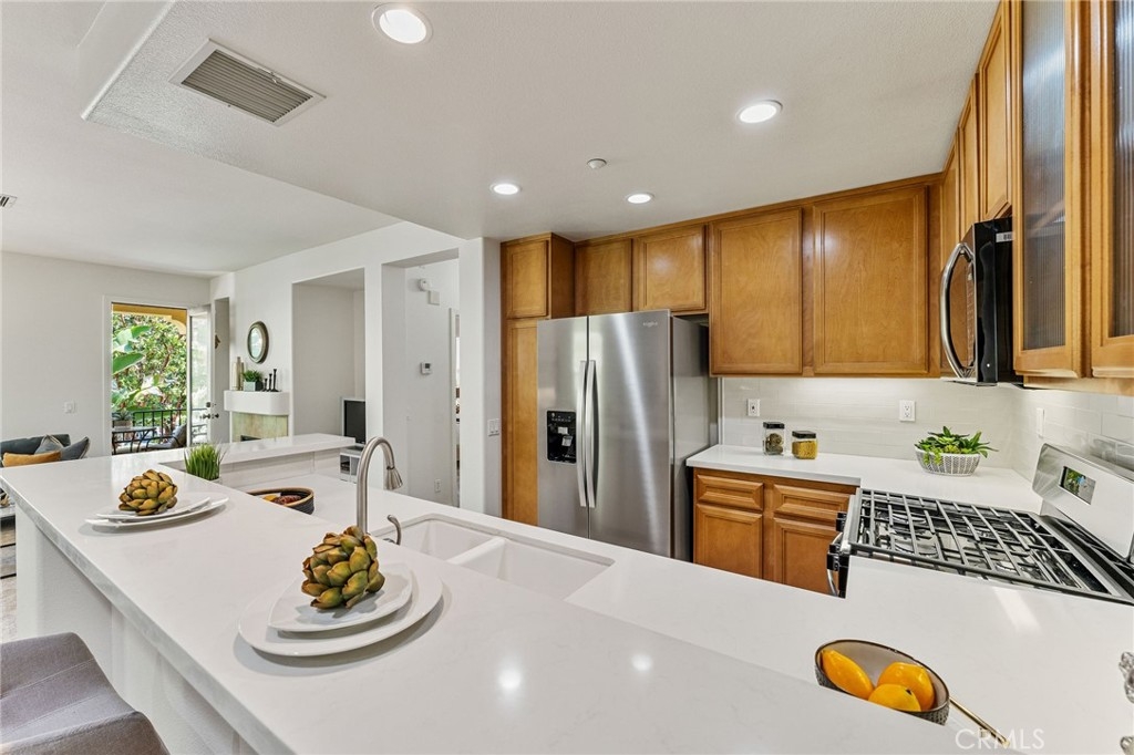 Beautifully updated carriage unit condo, with no one above and your garage right below, in a prime Quail Hill location! Enter on the main floor but all living areas are on one level, upstairs. The floor plan is set up to showcase this inviting, open concept, single level living condo with all of its windows! The large kitchen was just updated with brand new stainless steel Whirlpool appliances, the refrigerator, the range and dishwasher, too! It has Quartz counters, a custom backsplash, a large breakfast bar and is open to the living and dining areas! The interior was just painted and brand new neutral carpet was just installed as well! Move-in ready and then some! Conveniently, the entry, the kitchen and baths are tiled. The spacious bedrooms with ceiling fans are designed and located with privacy and comfort in mind! The primary bedroom is spacious and has mirrored wardrobes and an ensuite with a dual vanity and privacy for the shower. The secondary bedroom is spacious and has direct access to the hall bath. And there is a built-in desk nook and a cozy fireplace, as well! You will love the private balcony overlooking the peaceful, lushly landscaped courtyard with a pretty bubbling fountain. There is a two car, side-by-side, garage with direct access into the home. Lots of room for storage in the garage and as soon as you walk into the home, lots of storage room in the finished closet under the stairs too! All this plus the amazing Quail Hill HOA resort-style amenities; Including pools, tennis courts, sports courts, parks, and a fitness center. Whatever your lifestyle, this is the perfect location! Whether you enjoy hiking the picturesque 2.8 acre Quail Hill Trailhead trails or dining, or shopping or coffee at Quail Hill Shopping Center or conveniently getting to wherever you need to go with major freeways not far off! That includes all the shops & dining at South Coast Plaza or the Irvine Spectrum or the beautiful Newport Beaches, and we didn’t even mention the top rated schools! Such an amazing location.