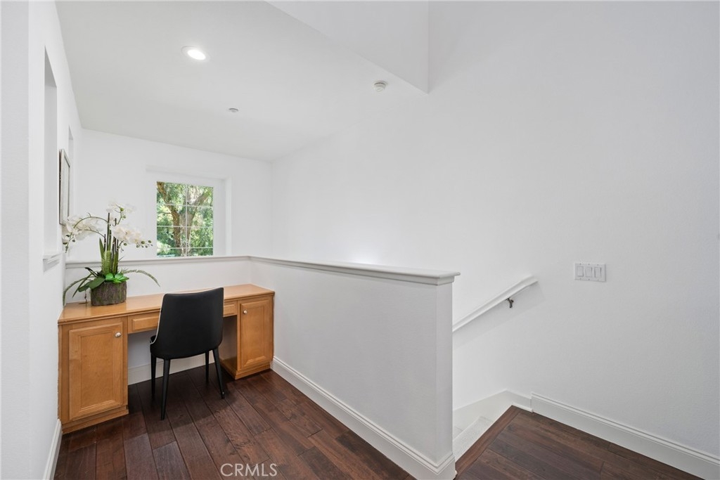 OPPORTUNITY to buy THE LOWEST PRICED HOME in QUAIL HILL! This beautifully appointed townhome offers the rare gift of peaceful privacy with the warmth of community living. Backing to a tranquil greenbelt in one of Irvine’s most desirable neighborhoods, the setting invites calm mornings on your shaded patio and breezy evenings under the stars. Inside, rich hardwood floors and soaring ceilings create an impressive sense of space. The open-concept living area features a custom fireplace and built-in office nook, perfect for working from home. The kitchen, featuring BRAND NEW appliances, flows effortlessly into the dining and living spaces—perfect for cozy nights at home or entertaining guests. Upstairs, the private primary suite spans the top level, offering a peaceful escape with a walk-in closet and spa-inspired en suite bath with dual vanities. The secondary bedroom is designed with comfort in mind, offering a ceiling fan and custom closet system, and the in-home laundry nook includes a modern washer and dryer set for added convenience. Completing the home is a spacious tandem two-car garage with custom built-in storage, offering practical function to match the home’s elevated style. Outside your door, enjoy the full Quail Hill lifestyle—resort-style pools, tennis courts, fitness centers, parks, and scenic walking trails. All just minutes from award-winning Irvine Unified schools, upscale dining and shopping, Irvine Spectrum, world-class beaches, and major freeways. Whether you're starting your next chapter or simply seeking a serene space to call home, this residence offers the perfect balance of nature, luxury, and community connection.