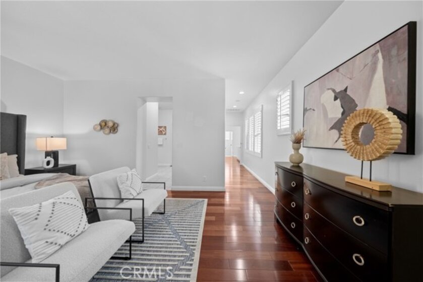 Charming detached home in Woodbury, ideally located facing a lush greenbelt and next to one of the most picturesque walking paths in the neighborhood. Features an open floor plan with a spacious great room, gourmet kitchen with granite countertops, center island, abundant cabinetry, and hardwood flooring throughout. French doors open to a private enclosed patio, perfect for indoor-outdoor entertaining. A main-floor bedroom with full bath offers ideal guest privacy. The elegant master suite includes a Juliet balcony with serene neighborhood views. Just steps from Woodbury Elementary School, and enjoy access to resort-style amenities: 7 pools (including an Olympic-size), 16 parks, tennis courts, trails, and more. Close to shopping, top schools, and major freeways for easy commuting.