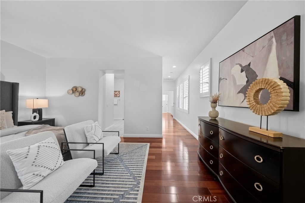 Charming detached home in Woodbury, ideally located facing a lush greenbelt and next to one of the most picturesque walking paths in the neighborhood. Features an open floor plan with a spacious great room, gourmet kitchen with granite countertops, center island, abundant cabinetry, and hardwood flooring throughout. French doors open to a private enclosed patio, perfect for indoor-outdoor entertaining. A main-floor bedroom with full bath offers ideal guest privacy. The elegant master suite includes a Juliet balcony with serene neighborhood views. Just steps from Woodbury Elementary School, and enjoy access to resort-style amenities: 7 pools (including an Olympic-size), 16 parks, tennis courts, trails, and more. Close to shopping, top schools, and major freeways for easy commuting.