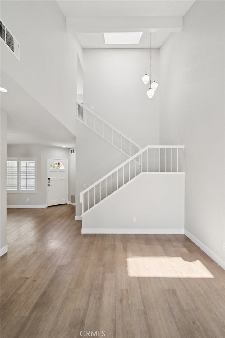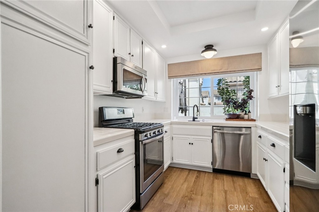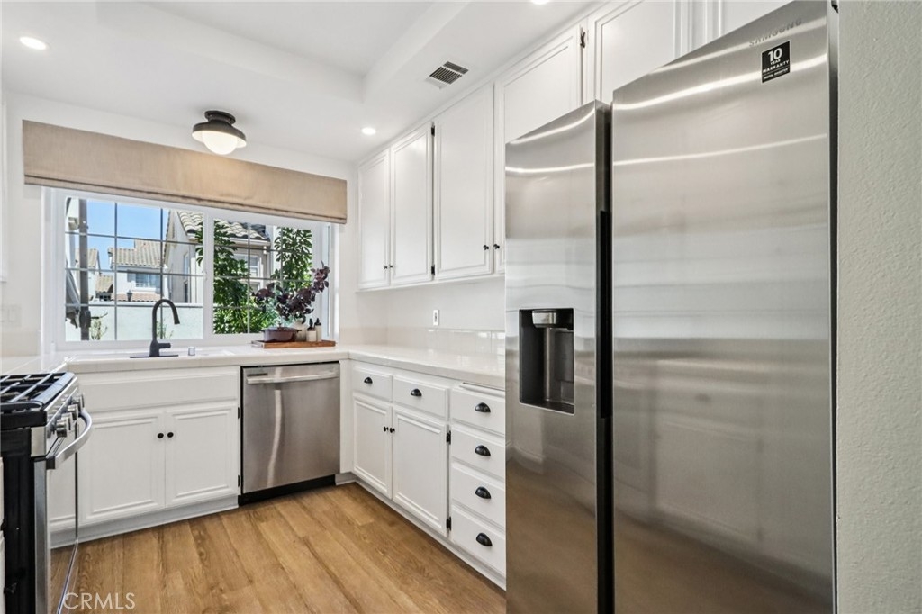 Come see why residents love this community so much, while experiencing this immaculately owned and updated 2 bedroom, 2.5 bath townhouse style condo. Walk in, right into the open floor plan entrance with the dining and kitchen area expanding into the double height living room. Bask in all the natural light through the skylight and various windows of the home, or step through the sliding glass door to the private patio, to enjoy some morning coffee in the sun. Seller has renovated various parts of the home, including an updated half-bath on the 1st floor, trendy full bathroom and shower for a bedroom suite on the 2nd floor, as well as brand new modern kitchen appliances, new skylight, new vinyl windows, and new modern flooring throughout. Peaceful and welcoming, the intimate community amenities feature 2 separate pools and hot tubs. Exciting new updates to the community are also already in the works, with HOA expected to finalize upgrades in the Fall, delivering a freshly repainted exterior to the units and revitalized greenery with new landscaping. Enjoy a new healthy lifestyle, from all the convenience of the home's walking friendly location. Take only a few steps to get to an elementary school, a Montessori, local eateries, and everyday essentials like groceries, a pharmacy, and a bank. Or escape from the stresses in life by walking a few steps in another direction to get immediate access to trails and multiple parks. UCI is minutes away with a short drive, the brand new UCI Health Medical Center (anticipating a hospital and emergency room opening later this year) is just 7 minutes away, and John Wayne Airport is a quick 10-minute drive. Home was loved and cared for by the Seller, providing an abundant life, including effortless rental income thanks to the strong tenant demand. Now, its your turn to be homeowners of this lucky move-in ready home.