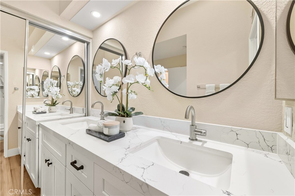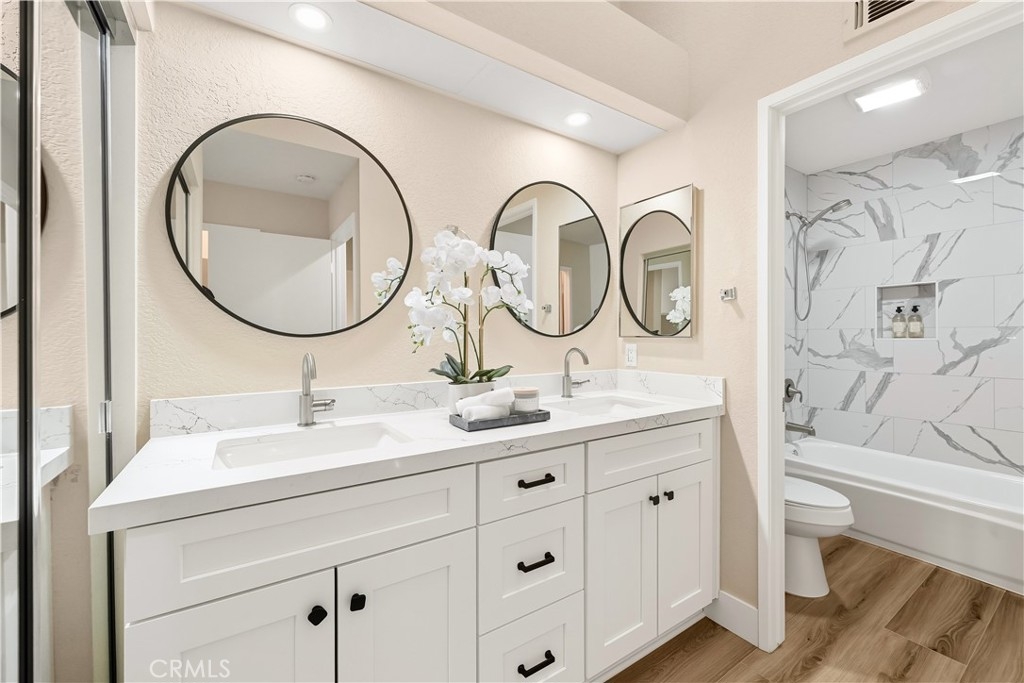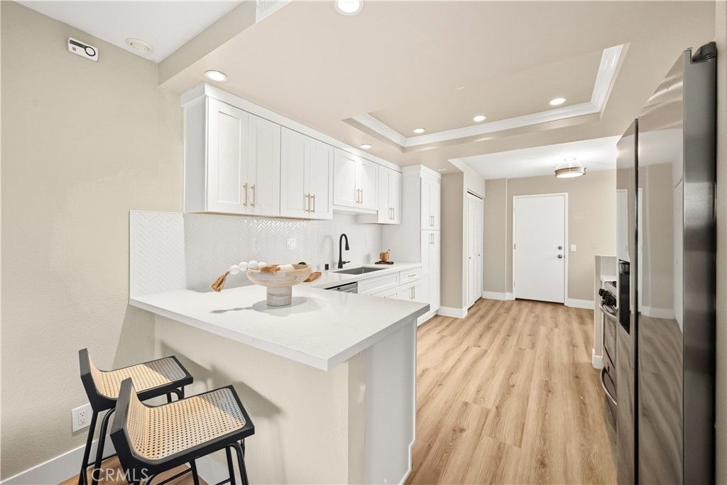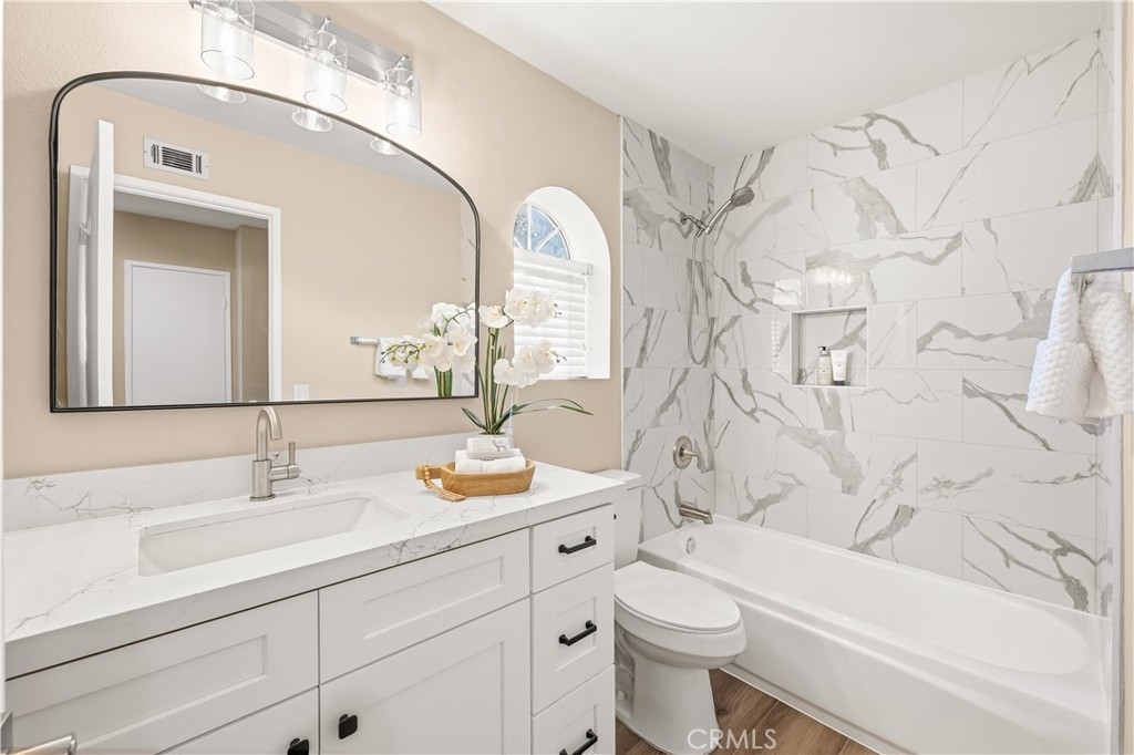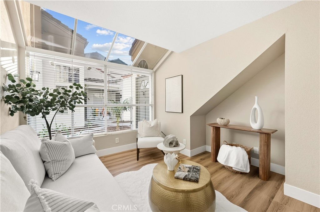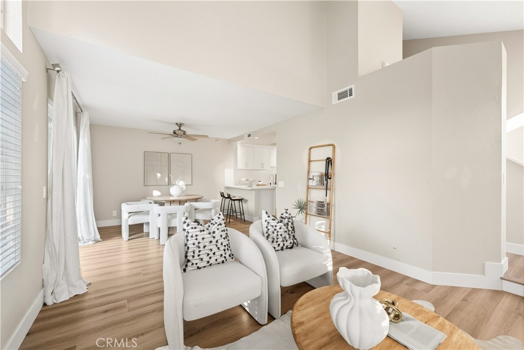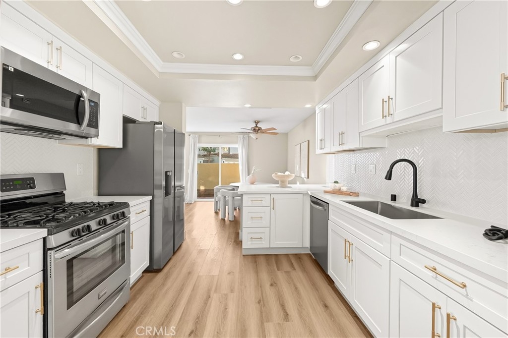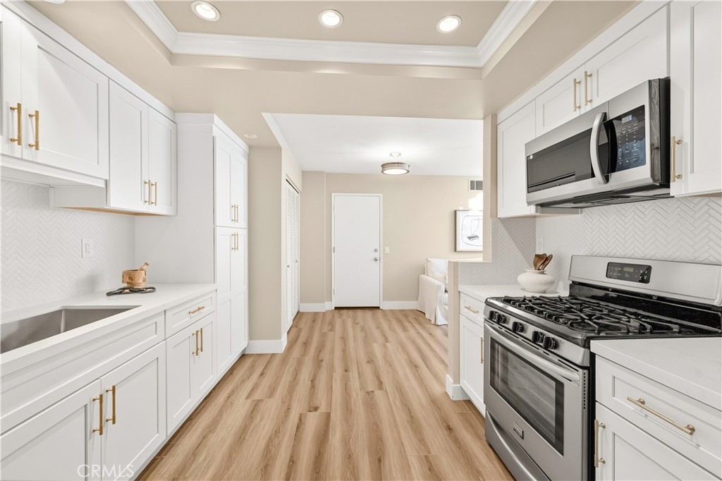 TWO CAR GARAGE AND TWO CAR DRIVEWAY! Very rare to find in Irvine in this price point! Experience the perfect mix of comfort and modern design in this bright and spacious 3-bedroom, 2.5-bath home. As an end-unit, it offers extra privacy and abundant natural light throughout. The brand-new kitchen is a showstopper—featuring white shaker cabinetry, a striking herringbone tile backsplash, quartz countertops, and stainless-steel appliances. It's open to the casual dining area as well as a flex space that can be additional dining, home office, or additional seating area. The open-concept living area impresses with vaulted ceilings, a cozy fireplace, and seamless flow to a private patio ideal for relaxing or entertaining. Upstairs, each bedroom feels spacious and bright, with vaulted ceilings and updated bathrooms featuring modern tile and finishes. The primary suite offers dual closets and a skylit bathroom retreat. Enjoy resort-style community amenities including pools, spas, and beautifully landscaped greenbelts—all close to shopping, dining, and convenient freeway access. Located within the award-winning University High School district, this home is a special gem-come see it before it's gone!