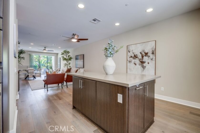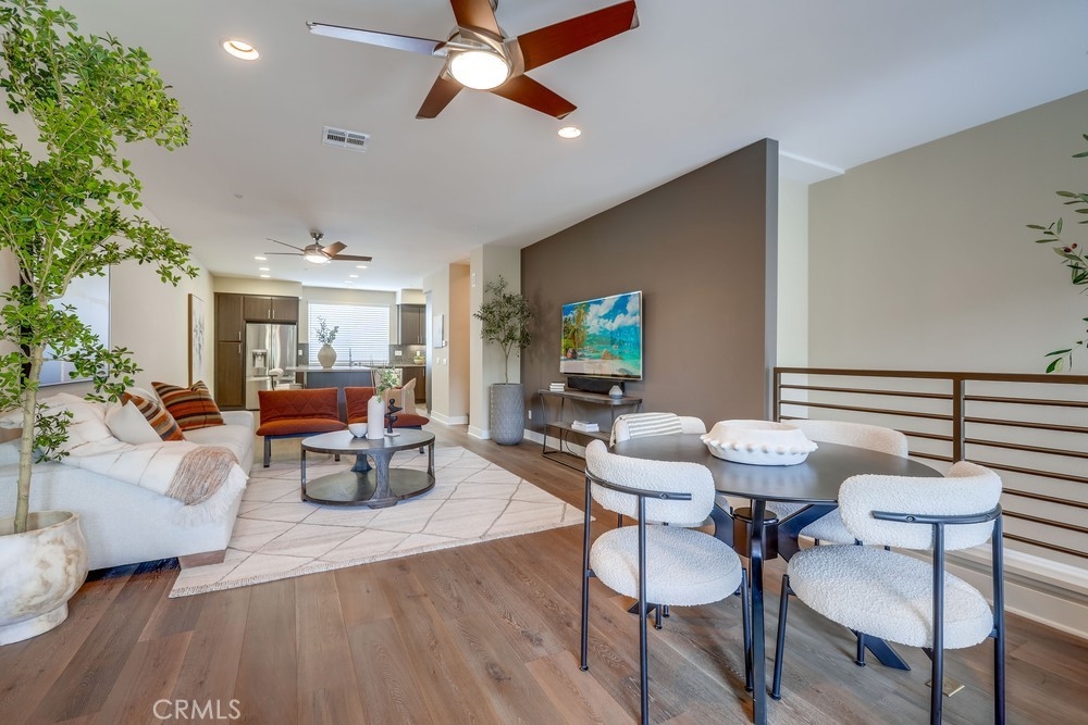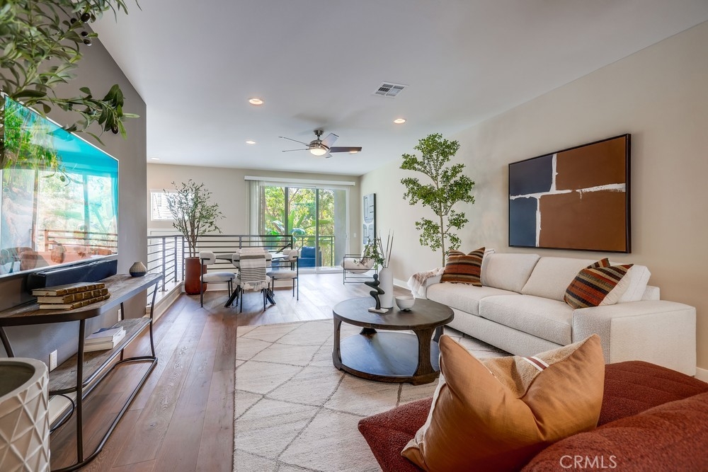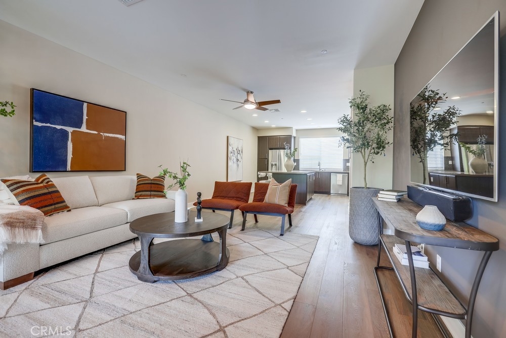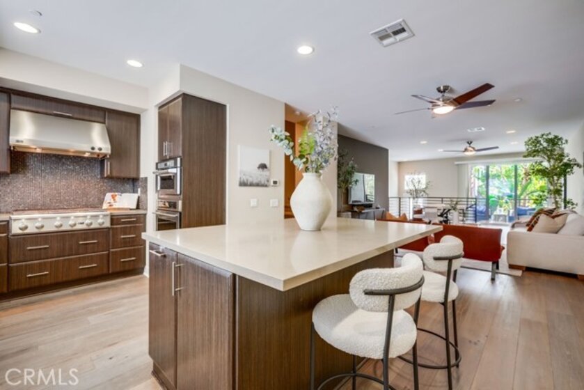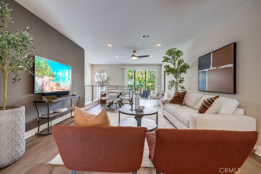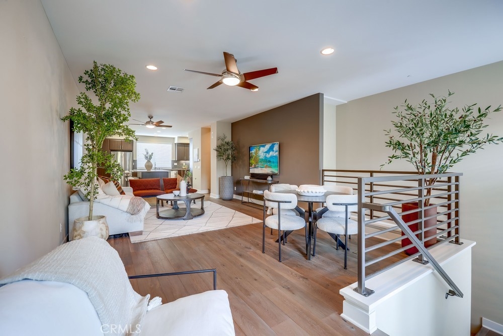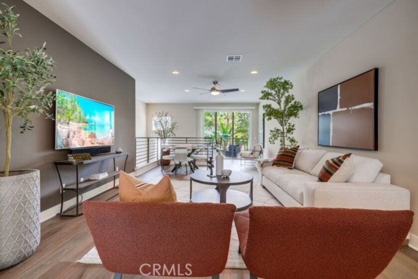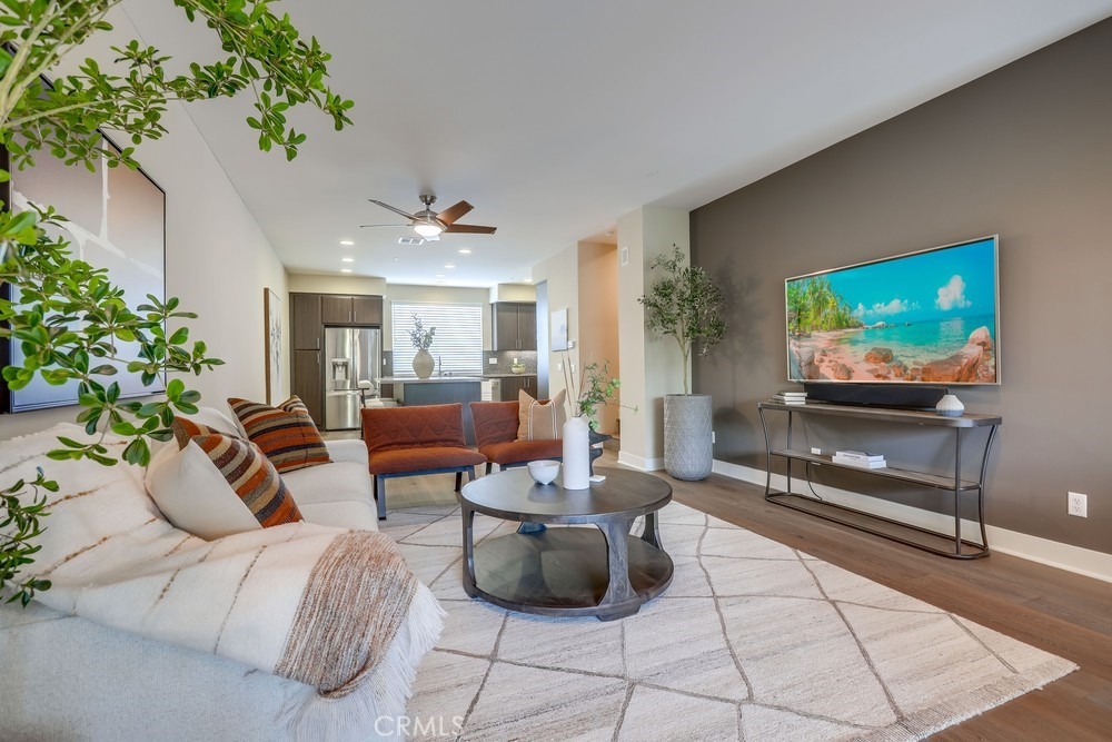 Introducing a stunning townhouse-style home situated on a front-row premier park location that features beautiful views. Spanning approximately 2,245 square feet, that perfectly embodies the ideal indoor-outdoor living experience. For the first time ever on the market, this striking 3-bedroom, 2.5-bath residence showcases open and airy living spaces adorned with an array of custom finishes. Step inside to discover the main living area featuring elegant hardwood flooring, designer window treatments, modern ceiling fans thoughout and custom paint that reflects modern sophistication. High-volume ceilings and recessed lighting create a bright atmosphere, while the master suite, large walk-in closet and amazing views offer a luxurious retreat. Exceptional natural light floods the space, enhancing the private location of this thoughtfully designed home. Enjoy two outdoor balconies that provide views of the park and the Irvine Financial District. The highly sought-after open floorplan includes a chef-inspired kitchen, complete with a large center island, quartz countertops, modern cabinetry and professional stainless steel appliances, making it perfect for culinary enthusiasts. This deluxe property also boasts a RARE oversized finished 3-car garage, offering additional storage and direct access to the home’s interior. Living like a single-family home, there are no other units above or below, ensuring peace and privacy. The Manhattan enclave features one of the lowest HOA fees in all of Central Park West, providing exceptional value. Residents can indulge in resort-style amenities, including two heated pools, a clubhouse, a state-of-the-art fitness center, an exercise/yoga studio, spas and a large multi-purpose room. Additional amenities include a lounge with a bar and fireplace, catering kitchen, outdoor barbecue areas, an entertaining terrace with a large fireplace, a pickleball court, a half-basketball court, a tot lot and mini-parks. Convenience is paramount, with fine dining and shopping just moments away. Experience a world-class culinary scene and explore an array of retail options, whether you prefer a leisurely stroll through boutique shops or enjoying a delightful meal at a nearby restaurant. 75 Lennox presents an unparalleled opportunity to embrace a sophisticated lifestyle in one of Irvine's most sought-after locations, with easy access to Fashion Island Newport Beach, UCI, John Wayne Airport, and the beautiful beaches of Orange County.