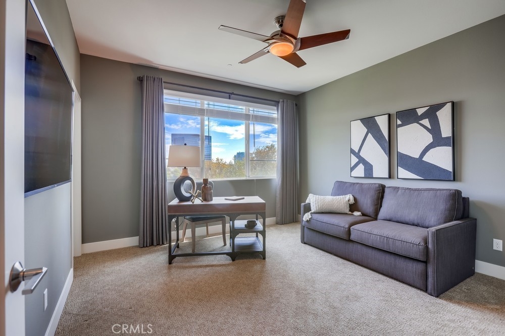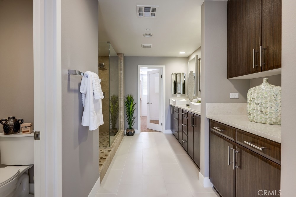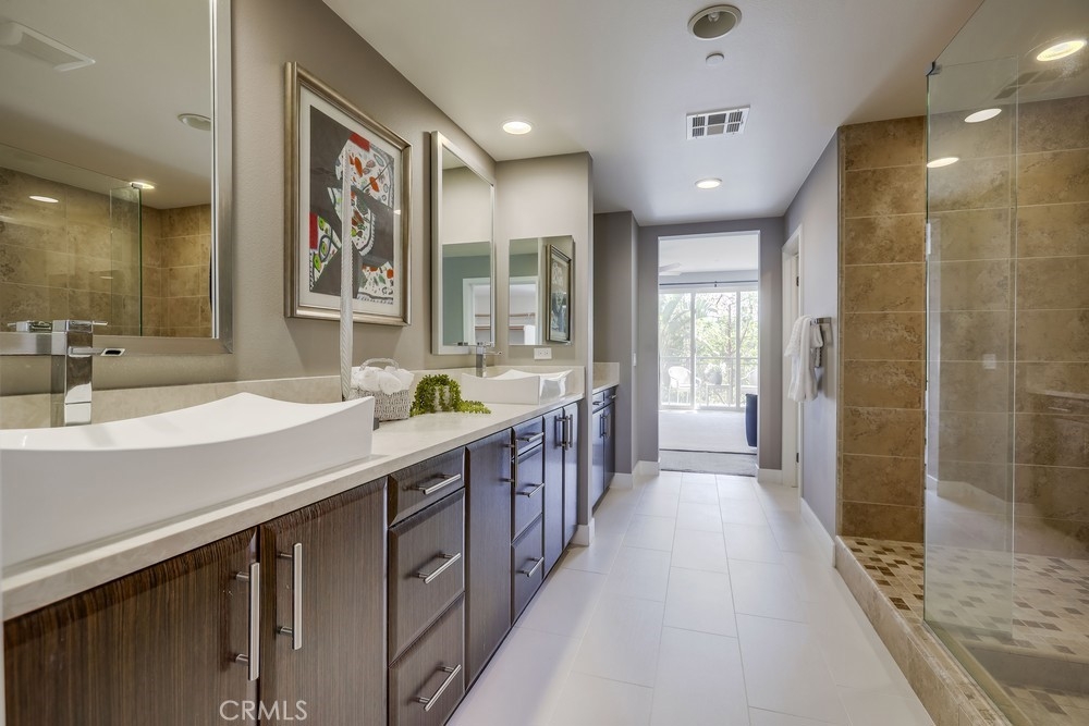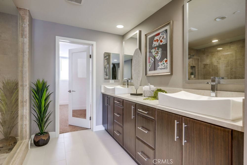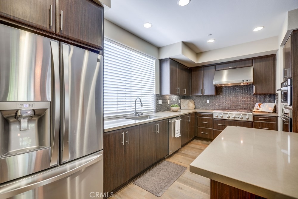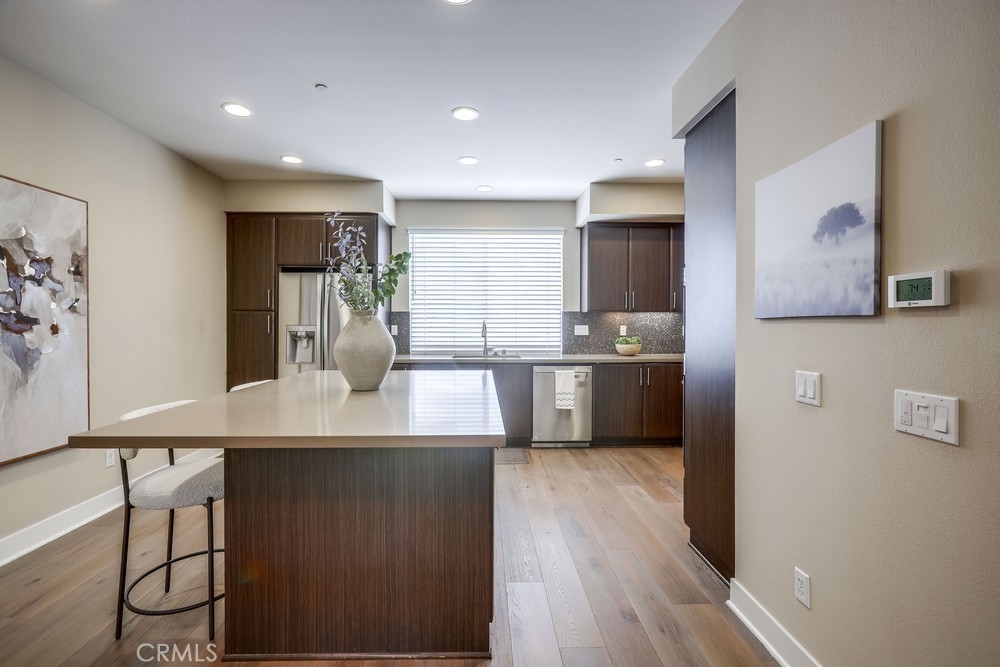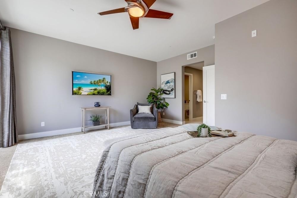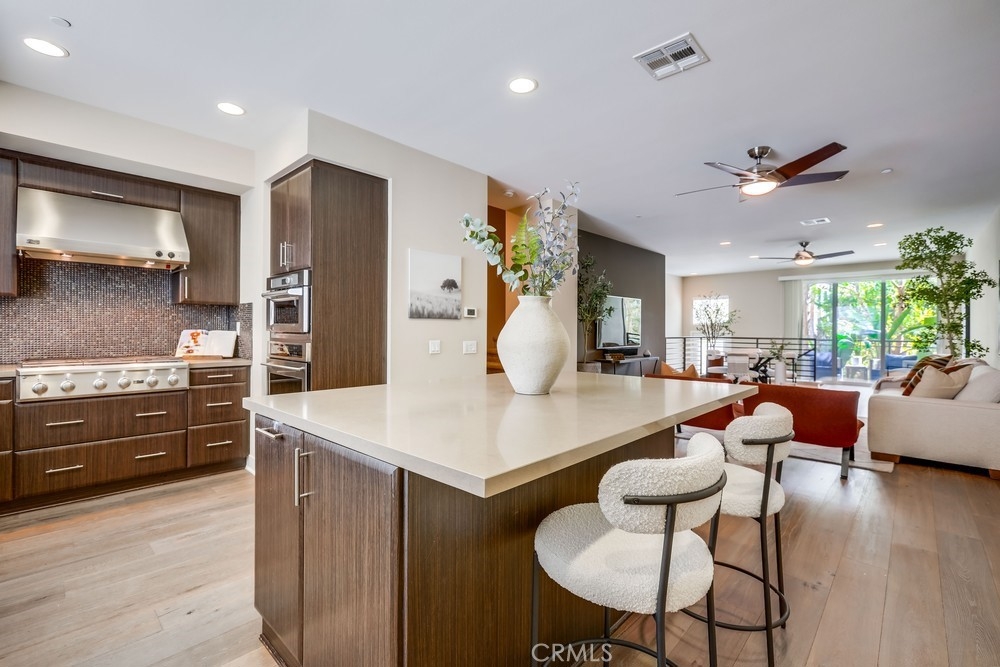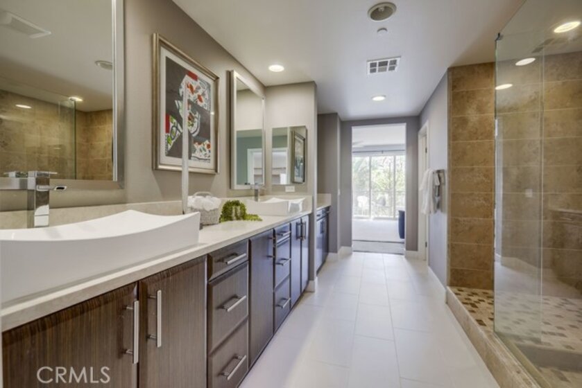 Introducing a stunning townhouse-style home situated on a front-row premier park location that features beautiful views. Spanning approximately 2,245 square feet, that perfectly embodies the ideal indoor-outdoor living experience. For the first time ever on the market, this striking 3-bedroom, 2.5-bath residence showcases open and airy living spaces adorned with an array of custom finishes. Step inside to discover the main living area featuring elegant hardwood flooring, designer window treatments, modern ceiling fans thoughout and custom paint that reflects modern sophistication. High-volume ceilings and recessed lighting create a bright atmosphere, while the master suite, large walk-in closet and amazing views offer a luxurious retreat. Exceptional natural light floods the space, enhancing the private location of this thoughtfully designed home. Enjoy two outdoor balconies that provide views of the park and the Irvine Financial District. The highly sought-after open floorplan includes a chef-inspired kitchen, complete with a large center island, quartz countertops, modern cabinetry and professional stainless steel appliances, making it perfect for culinary enthusiasts. This deluxe property also boasts a RARE oversized finished 3-car garage, offering additional storage and direct access to the home’s interior. Living like a single-family home, there are no other units above or below, ensuring peace and privacy. The Manhattan enclave features one of the lowest HOA fees in all of Central Park West, providing exceptional value. Residents can indulge in resort-style amenities, including two heated pools, a clubhouse, a state-of-the-art fitness center, an exercise/yoga studio, spas and a large multi-purpose room. Additional amenities include a lounge with a bar and fireplace, catering kitchen, outdoor barbecue areas, an entertaining terrace with a large fireplace, a pickleball court, a half-basketball court, a tot lot and mini-parks. Convenience is paramount, with fine dining and shopping just moments away. Experience a world-class culinary scene and explore an array of retail options, whether you prefer a leisurely stroll through boutique shops or enjoying a delightful meal at a nearby restaurant. 75 Lennox presents an unparalleled opportunity to embrace a sophisticated lifestyle in one of Irvine's most sought-after locations, with easy access to Fashion Island Newport Beach, UCI, John Wayne Airport, and the beautiful beaches of Orange County.