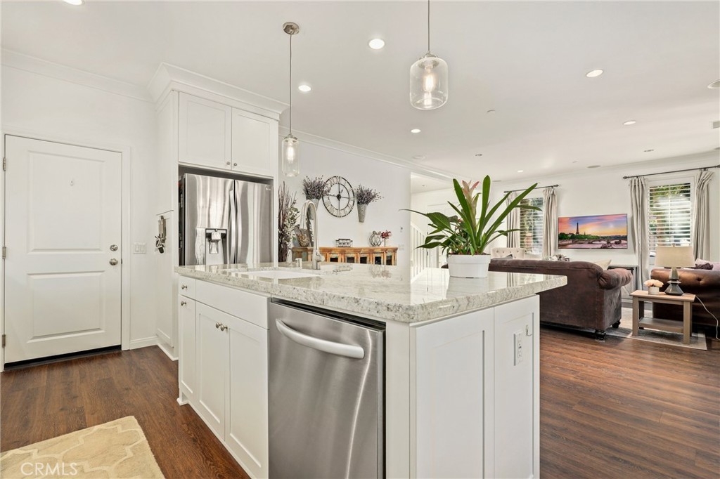 Welcome home to your beautifully appointed and welcoming home in the highly desirable neighborhood of Cypress Village neighborhood! Light and bright with walls of windows, open floor plan with modern finishes, wide plank LVP flooring, and ceiling speakers round out the great room. Contemporary gourmet kitchen with gorgeous white granite counter tops, center island with breakfast bar, stainless steel appliances, abundant white cabinetry and walk-in pantry. There is a large dining area adjacent to kitchen and open to the wonderful backyard. Upstairs loft is great for work station or relaxing reading nook. Romantic master suite with Juliette balcony and lovely morning sun. Master bedroom is spacious; the bathroom has a frameless shower; soaking tub, dual vanities and walk-in closet. The other two bedrooms are also spacious and have shutters. You’ll also love relaxing in your spacious, professionally landscaped back yard and patio. Other features include a tankless water heater and recessed lighting throughout; separate laundry room and washer/dryer are included. 2-car attached garage with direct access. Enjoy the amenities of multiple barbecue grills, picnic table, pools, parks and sport courts. Close to Irvine School District schools, restaurants and shopping center.