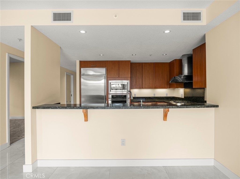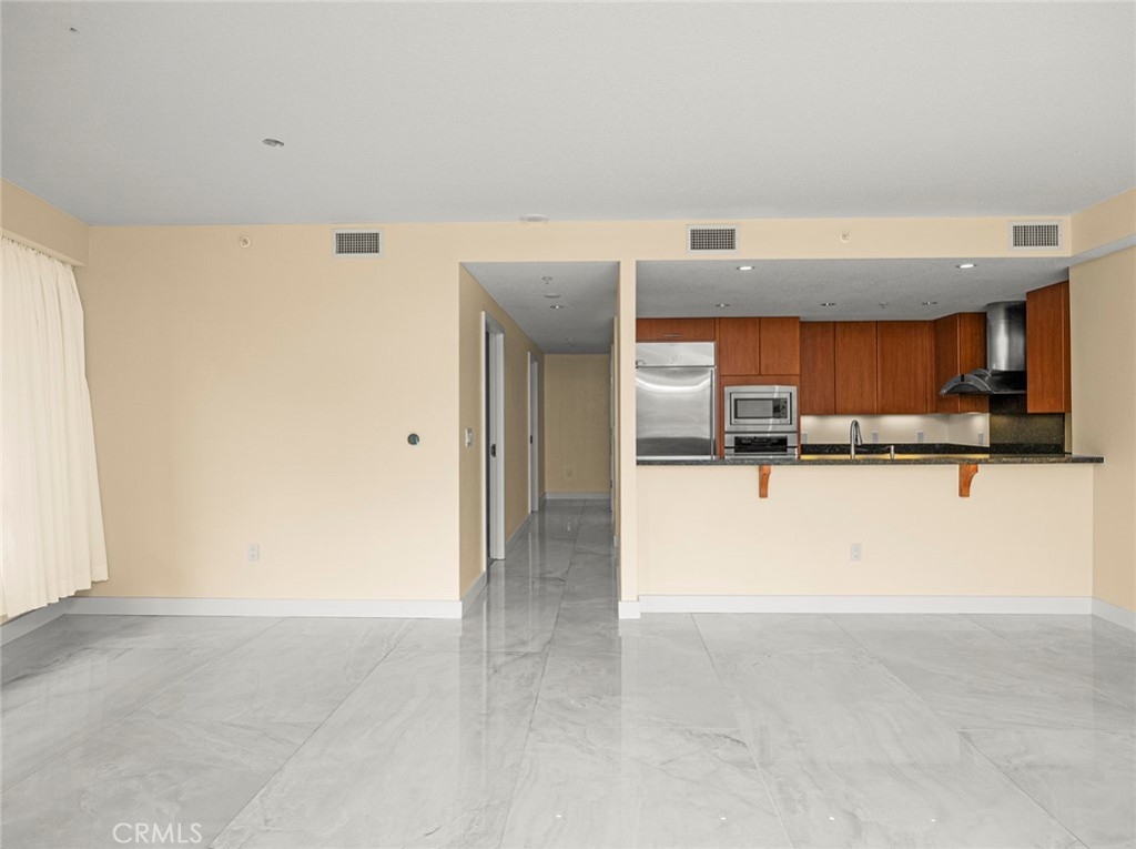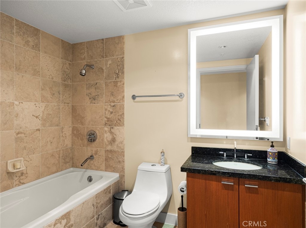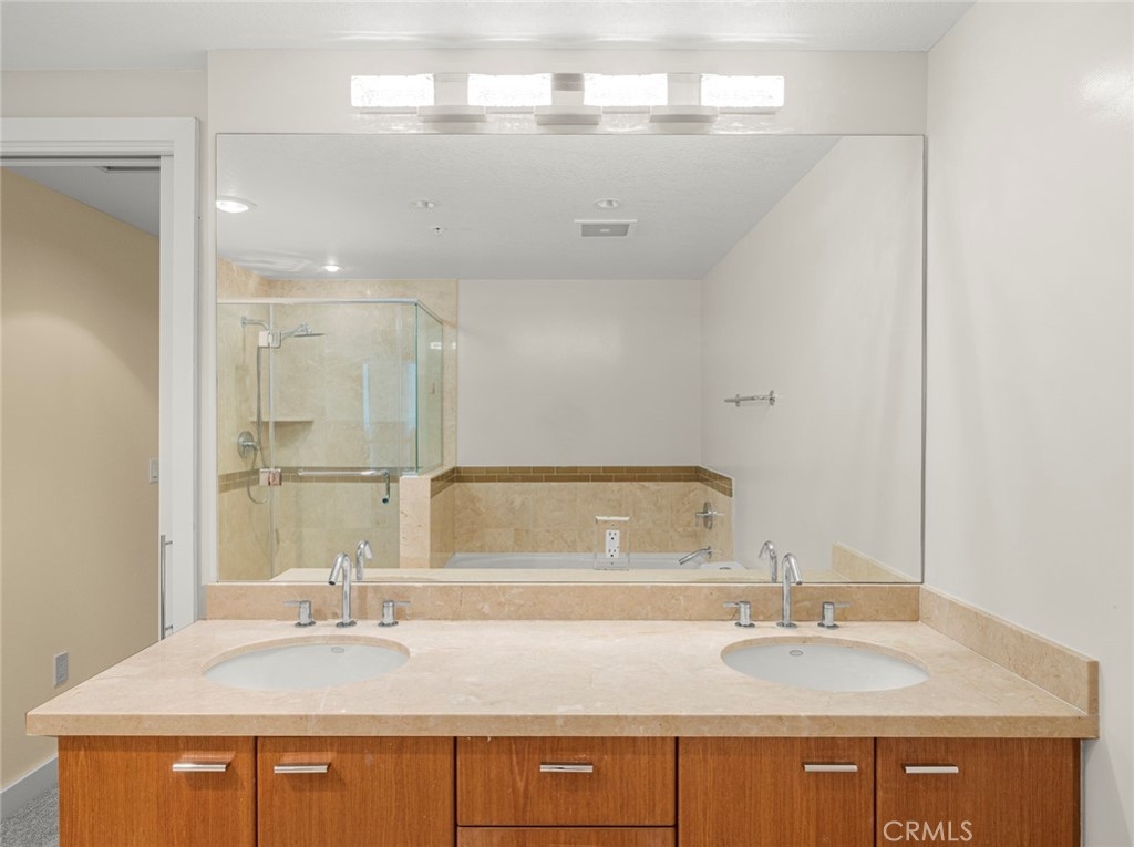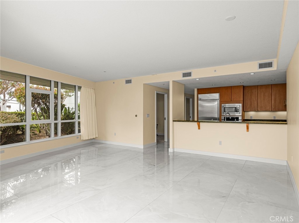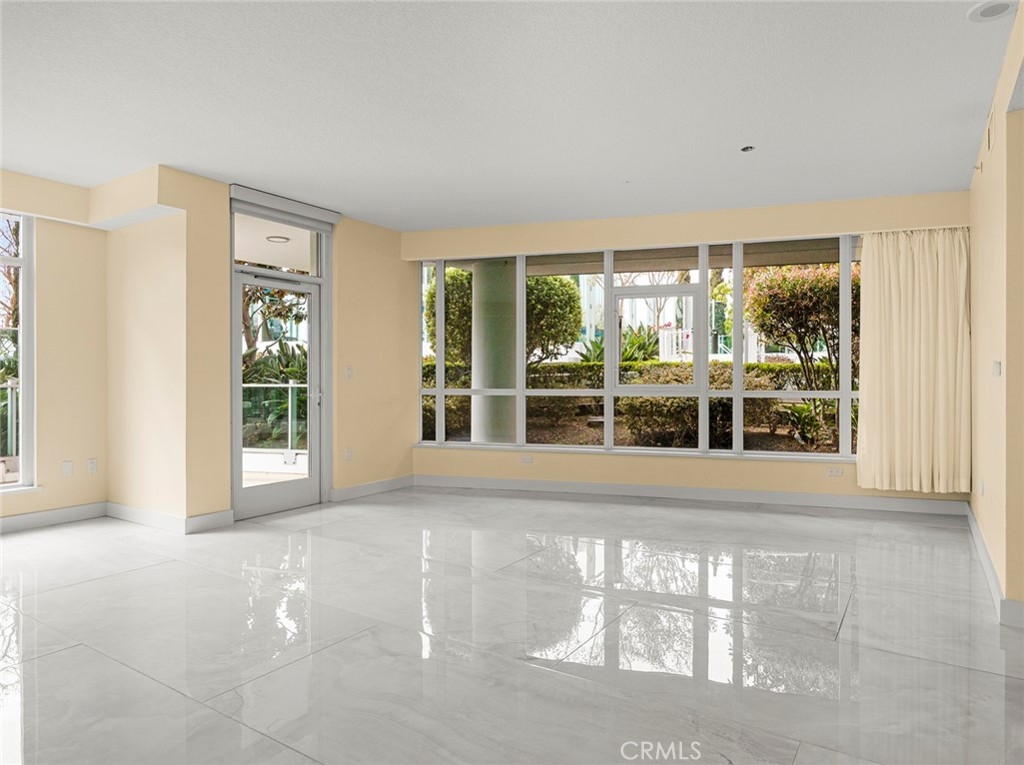 Welcome to living at the Marquee at Park Place. This bright and spacious 2-bedroom, 2-bathroom corner unit on the 3rd floor features tile flooring throughout the main living areas and plush carpet in both bedrooms. Floor-to-ceiling windows flood the space with natural light, and the open-concept layout flows into a modern kitchen with granite countertops and stainless steel appliances. The primary suite includes a walk-in closet and a luxurious bath with dual vanities, soaking tub, and separate shower. Enjoy a private balcony with city views, in-unit laundry, and two assigned parking spaces. Resort-style community amenities include 24-hour concierge, controlled access, pool and spa, fitness center, and more—all within minutes of top dining, shopping, and freeway access.