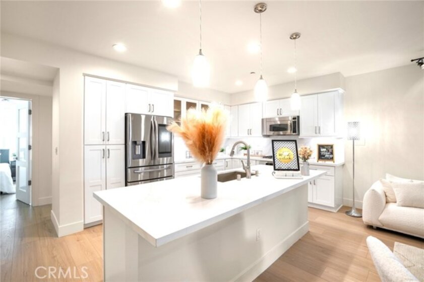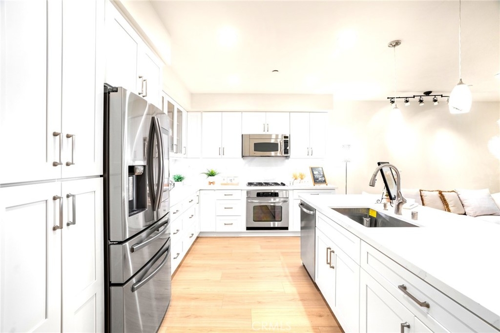 Must See, Gorgeous newly remodeled townhouse, brand new countertop, brand new cabinetry and wood floor, large kitchen central island. Three bedrooms , kitchen, 2 bathrooms, laundry room located on the same floor with spacious large high ceiling living room and kitchen, convenience to access and entertaining family and guest. Large downstair office/den can be used as office with quiet and isolated space with a large walk-in closet for extra storage space. Central park west community amenities offering two separate resort-style swimming pools, mini park, and pickleball courtyard ; gym room, conference room, lounge with bar, outdoor barbecue for homeowner to access. A convenient location across street from large shopping mall lady M , chase bank, supermarket etc. Situated in the intersection of Jamboree and Michelson, next to freeway 405, 7 minutes to University of california Irvine, ca (2.1 miles) with orange county public bus to UCI, and 6 minutes to UCI health(1.2 Miles away).