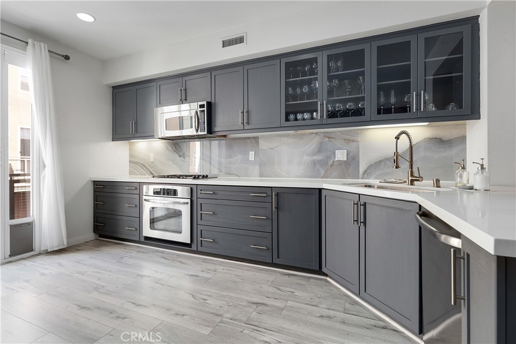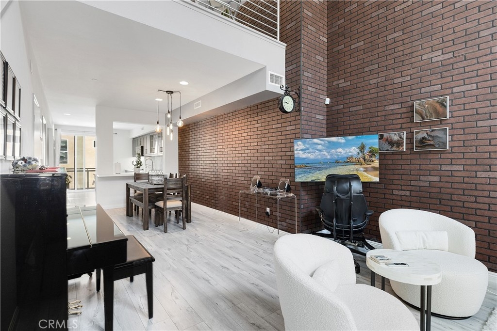 Welcome to the ultimate experience in Irvine urban living, at Central Park West. Much like the name mentions, this unit is located in a premier central location of Irvine’s thriving financial district. The apartment features an impressively spacious bedroom and 1 ½ bath, making it ideal for anyone that enjoys a comfortable and active lifestyle. The 2 ½ car tandem garage leads you right up to the attached entryway to your home, as well as a sub-stairwell that provides access to your ground floor storage space. Take just a few steps upstairs and you arrive at your front door, which opens up to the main living room floor. Once on this level, you are greeted by two-story ceilings and a faux brick wall that welcome you into an inspiring entertainment space, dining area featuring amber filament bulb chandelier, and powder room for you and your guests. The kitchen is tastefully designed with white quartz countertops, elegant marble tile backsplash, and accented gray cabinets for an appealing and modern look. The kitchen features a 4-burner range stainless steel over, microwave, and refrigerator. The laundry closet is located on the same floor, with the capacity to support a full-size washer and dryer in the comfort of your home. At the very end of the living area is your outdoor patio space that allows you to enjoy a fresh breeze, whenever you please. A set of stairs on the main floor leads up to your master loft bedroom. Perfectly positioned to easily access the living room and also provide plenty of privacy, the master bathroom boasts a dual vanity sink, sizable shower with two shower-heads, a large wardrobe closet, and additional built-in cabinetry beneath the far window. Central Park West is among the newest communities recently built in Irvine, one of the safest cities in the country. Located only 5 minutes from the Orange County Airport, and a walkable distance from an expansive shopping center, this unit brings together the best of comfort and convenience. The Central Park West Community features Five-Star, ritzy, resort-style amenities: a gorgeous clubhouse, lounge area, 2 saline pools and spas, 2 parks, pickle-ball court, 8000 sf gym & fitness facility and BBQ areas. Live, work and play in one of OC's hottest lifestyle locations. Enjoy our video and 3D tours!