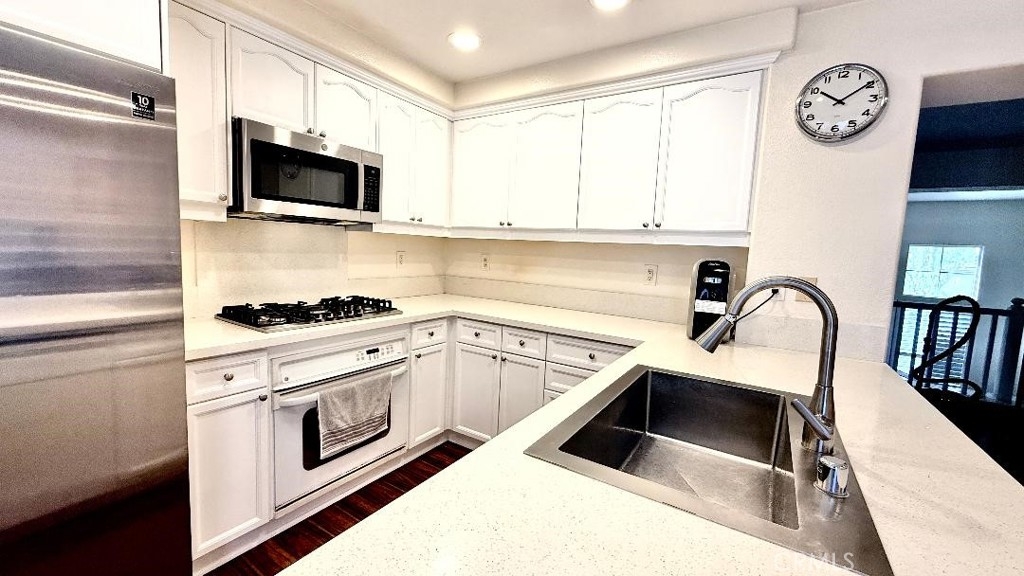 Welcome to this beautifully upgraded tri-level home located in the highly sought-after, guard-gated Northpark community. This residence offers 3 bedrooms and 2 & half bathrooms, showcasing numerous recent upgrades including remodeled countertops, recessed lighting, crown molding, custom paint. The inviting living room features high ceilings, abundant natural light, a cozy fireplace, and doors that open to a charming Tuscan-inspired stone patio. The formal dining room sits just off the spacious kitchen, which includes a breakfast bar and another set of doors leading to a Juliet balcony. The master bathroom offers dual vanities, a separate soaking tub, and a walk-in shower. Two additional bedrooms share this level, along with a large landing area perfect for an office nook and extra cabinetry for storage. This home provides easy access to the attached two-car garage, which includes direct entry. The Monterey neighborhood of Northpark offers an exceptional lifestyle with 24-hour guard-gated security, multiple swimming pools with cabanas, tennis and basketball courts, playgrounds, parks, walking trails, clubhouses, gazebos, and beautiful water features. The community is also home to award-winning schools, including Hicks Canyon Elementary located within the gates. This warm and inviting home is perfect for even the most discerning buyers.
