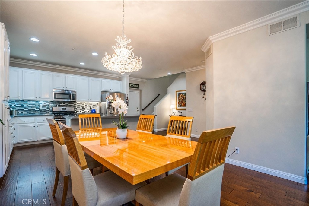 Public open house on 6/26/2021 11:00-5:00PM ****Luxurious 2-story townhome located in the stunning community of Northpark Square in Irvine. This home features a bright open concept living area complete with cozy gas fireplace; kitchen equipped with quartz countertops, stainless steel appliances, PENINSULA seating & plentiful cabinet space; spacious master suite with bathroom complete with dual vanities, walk in closet with adjustable shelving & drawer units; **OVERSIZED 2 car garage with ADDITIONAL STORAGE AREA**Garage 460 sqft with epoxy flooring, upstairs washer & dryer hookups. This lovely home has been upgraded with plantation shutters, plentiful LED recessed lighting, ceiling fans. A truly pristine property that is designer turnkey. Must see to appreciate. Upstairs bedrooms have beautiful views of the pool. Community amenities include two pools, Jacuzzi, BBQ, park for kids of all ages, basketball court. Close to shopping, freeway and award winning schools. One bedroom downstairs, Master bedroom and bath upstairs, and a third bedroom with en suite (bath) upstairs. Master has large walk-in closet.