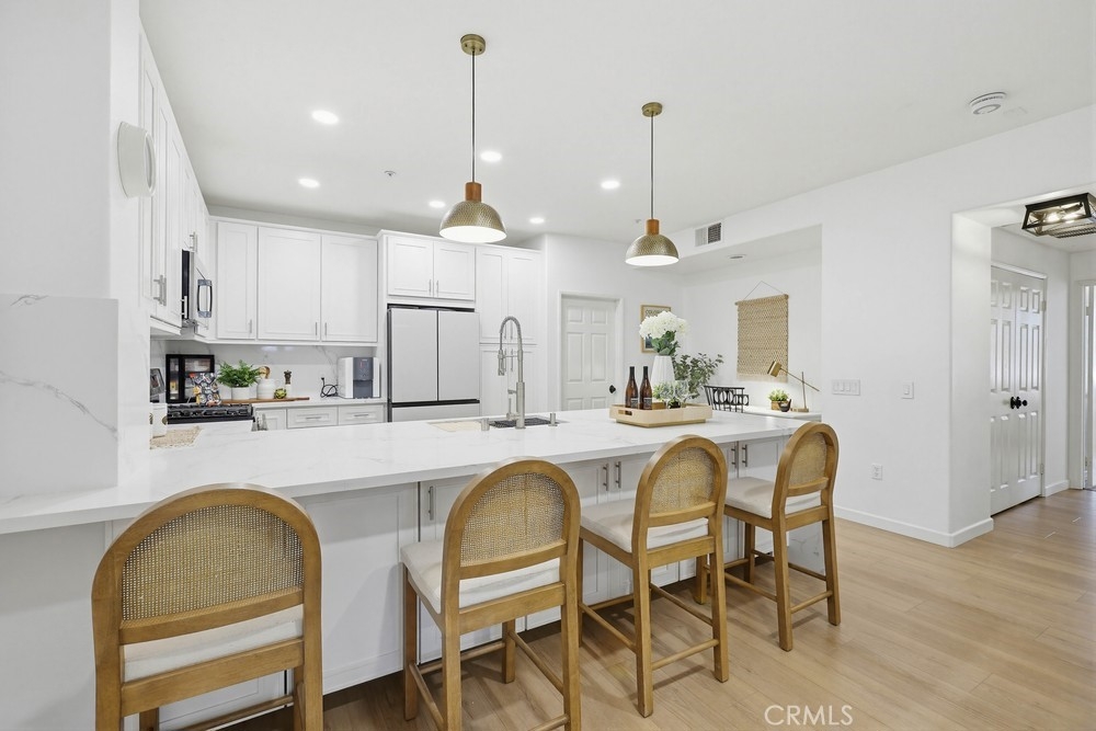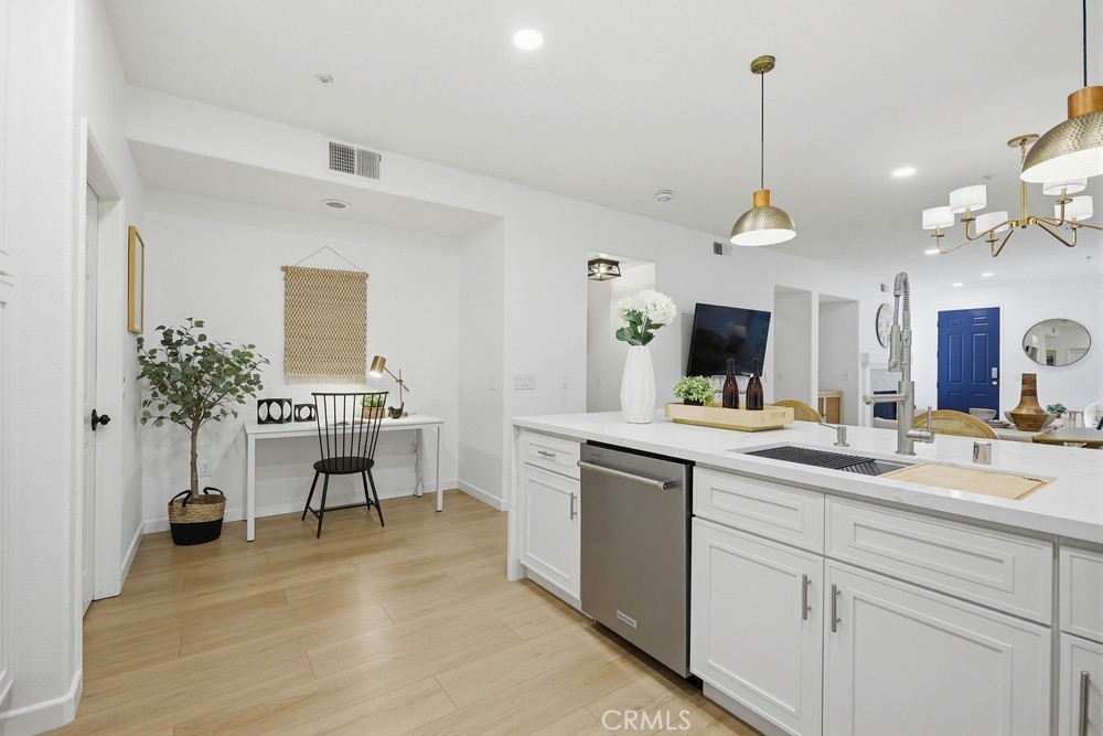 Welcome to this beautiful single-level, spacious 2-bedroom condo located in the highly desirable Northpark Square community. This is a rare end unit home on the ground level facing a tranquil greenbelt, offering indoor-outdoor living that feels like your own backyard, perfect for easy morning walks and unwinding after work. Designed with comfort and functionality in mind, the home features 2 full bedrooms, 2 full bathrooms, and a direct-access oversized, side-by-side 2-car garage. The large open-concept living and dining area is ideal for entertaining or everyday living, highlighted by a cozy fireplace, a huge modern kitchen, and convenient recessed lighting. The gourmet kitchen offers abundant cabinet storage and oversize countertop space. A separate laundry room with utility sink and storage cabinetry adds everyday convenience. The primary suite is a true retreat, featuring a walk-in closet, spa-inspired bathroom with soaking tub and walk-in shower, and dual sinks. Step directly from the primary bedroom onto a covered patio overlooking the greenbelt, which is perfect as a play and relaxing area. Residents enjoy access to community amenities, including two resort-style pools and spa, basketball courts, and parks and children’s playgrounds. This home's location cannot be beat: close to UC Irvine and top-rated local schools. Minutes to H Mart at Northpark Plaza, as well as numerous Irvine shopping centers, dining establishments, and everyday essentials. Easy access to major freeways while maintaining a quiet, residential feel. Don't miss this rare opportunity to secure a spacious, end-unit single-level home in one of the most desirable neighborhoods in Irvine!