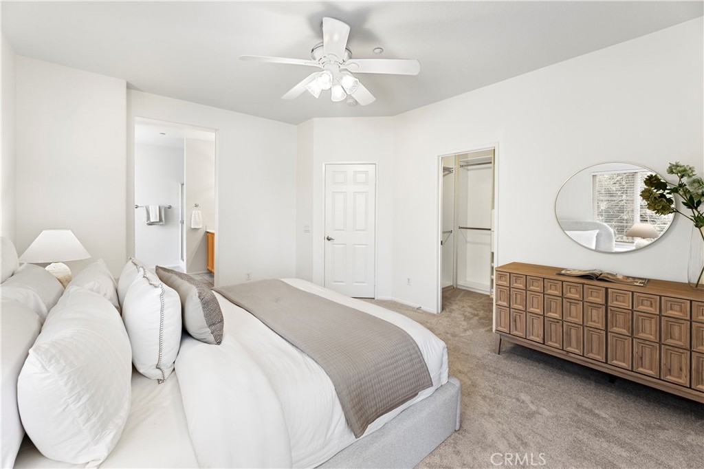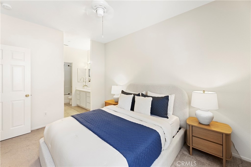 Welcome to Oak Creek – Prime Irvine Living! Discover this elegant two-story townhome nestled in the highly sought-after Oak Creek community. With 3 spacious bedrooms and 3 full bathrooms, this home is designed for both comfort and flexibility, including a downstairs bedroom and bath perfect for guests or a home office. The open-concept living space flows seamlessly into the kitchen featuring a large island with bar seating, walk-in pantry, and abundant cabinetry. Upstairs, the master suite offers a walk-in closet and a spa-like bathroom with a soaking tub, water closet, and a separate walk-in shower. The generous secondary bedroom also boasts its own full bath and walk-in closet. A versatile loft/tech center is ideal for work or study. Enjoy your private backyard—perfect for entertaining, gardening, or relaxing under blue sky views. Additional highlights include inside laundry and a two-car attached garage with direct access. Enjoy access to pools and spas, tennis and volleyball courts, playgrounds, BBQ/picnic areas, and miles of parks, hiking, and biking trails. Oak Creek Elementary is just a short walk away, with shopping, restaurants, and the Oak Creek Golf Course nearby. Easy access to major freeways #5, #405, #133, #241, #261, #73. Low HOA dues and a quiet, friendly neighborhood make this a rare opportunity you don’t want to miss.