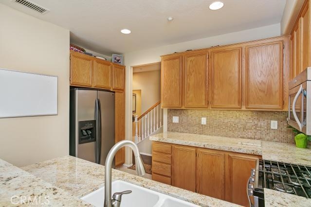 Gorgeous and upgraded 3 bedroom, 2.5 bath home PLUS den! This is a stunning property which features the latest upgrades to include new hardwood flooring, remodeled kitchen with granite counters, tile back splash, new stainless steel appliances, new sink & faucet, open flowing floor plan which features a large family room with hardwood floors, fireplace, an abundance of natural light, convenient upstairs laundry room, spacious master suite with walk-in closet, dual sinks, soaking tub and separate shower. The property is also located on a premium lot which features a large outdoor brick patio area perfect for cozy nights in a private setting and perfect for entertaining! This home is located in the Award Winning Blue Ribbon Schools and steps to Oak Creek Elementary School. This family neighborhood features salt water pool, spa, an additional Olympic size pool, tennis courts, basketball, sand volleyball court, hiking, biking, tot lot, concerts and movies in the park during the warm summer months all within steps of the property! The community pools also offer swimming lessons for the toddlers!