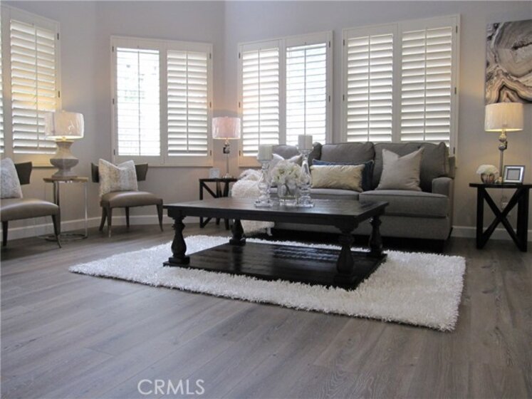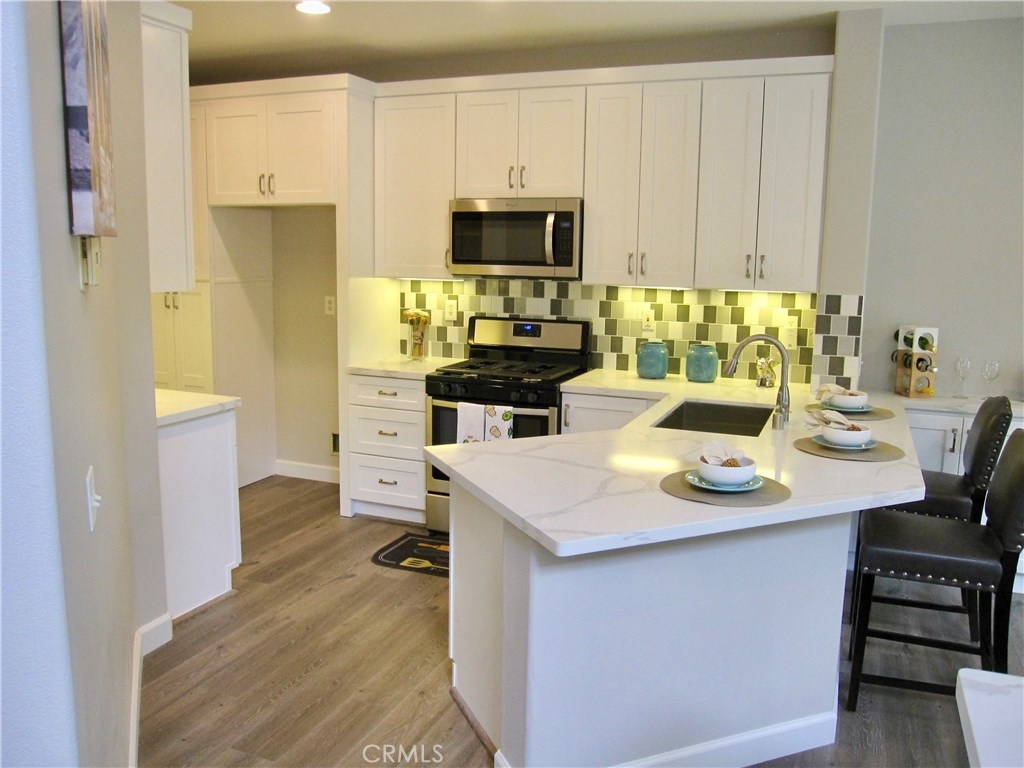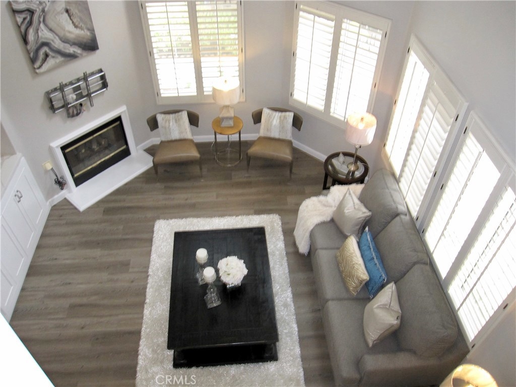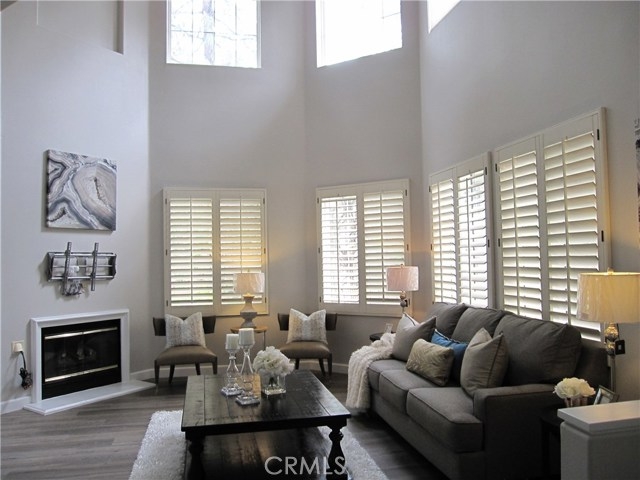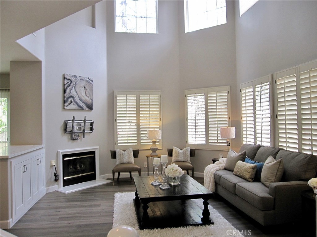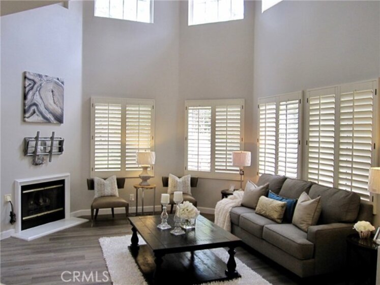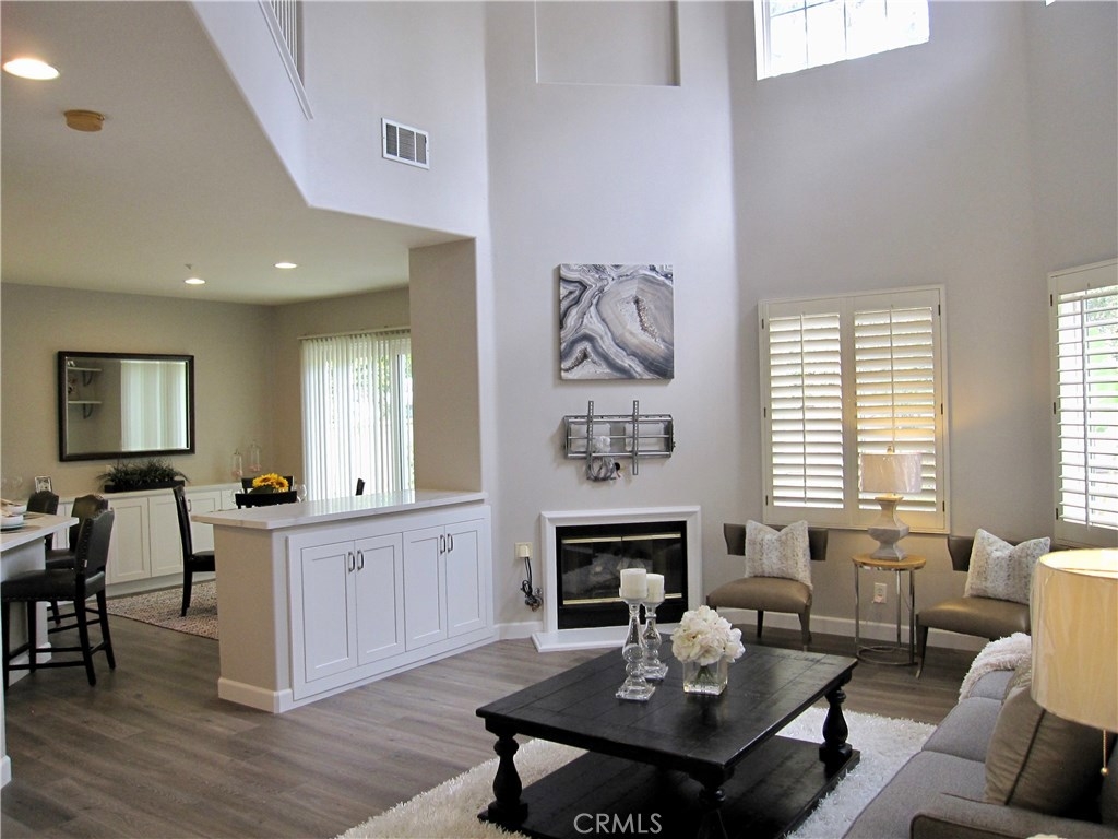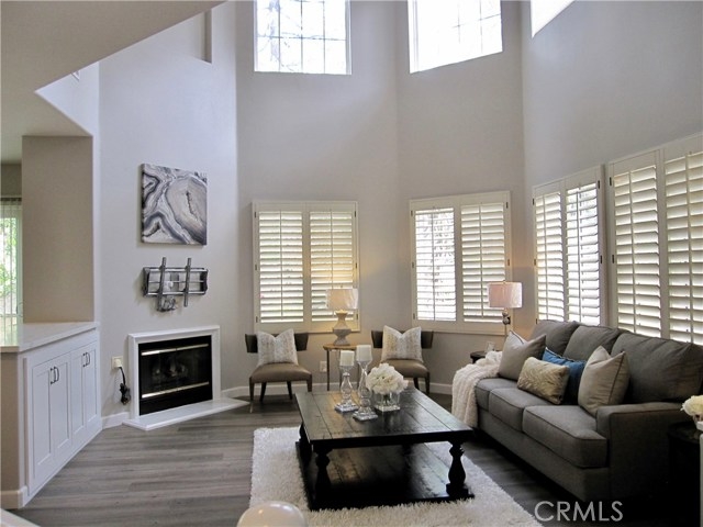 Welcome home to wow! Immaculate 3 Bedroom, 3 bath home located in prestigious gated Northwood Pointe community. Great open floor plan. Expansive living room has new waterproof laminate wood floors, soaring 18' ceilings, lots of windows bring warm natural light, fireplace, tv ready setup mount, shutters and media/storage cabinet with new quartz counter. Gather family and friends in this beautifully remodeled kitchen with new white shaker style cabinets with under lighting, glass front doors, quartz counters, tiled backsplash, new stainless appliances, deep single basin sink, fixtures and recessed lights. Dining room has a newly added row of extra cabinets. Main floor bedroom with mirrored closet doors could option as an office. Fresh interior paint & baseboards. Downstairs has all new waterproof laminate wood flooring. New carpet upstairs. Large master suite with new dual sinks shaker cabinets vanity & walk in closet. Third bedroom is updated en-suite. Indoor laundry room leads to 2 car garage. Peaceful backyard has several types of fruit trees, arbored pergola and low maintenance landscape. Situated in a prime quiet location with no unit behind. Outstanding HOA pool, spa, bbq, basketball court & tot lot. Minutes to Award winning schools including Canyon View Elementary, Sierra Vista Middle & Northwood HS. Close to shops, eateries, parks, walking/hiking/biking trails, Tustin Marketplace, Irvine Spectrum, toll roads & FWYS. Low HOA dues and mello roos.