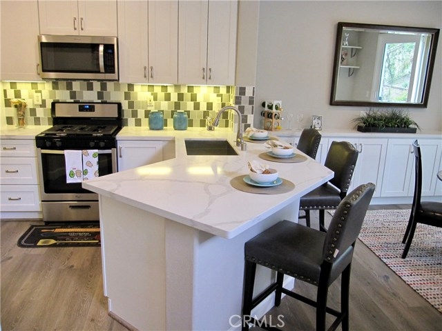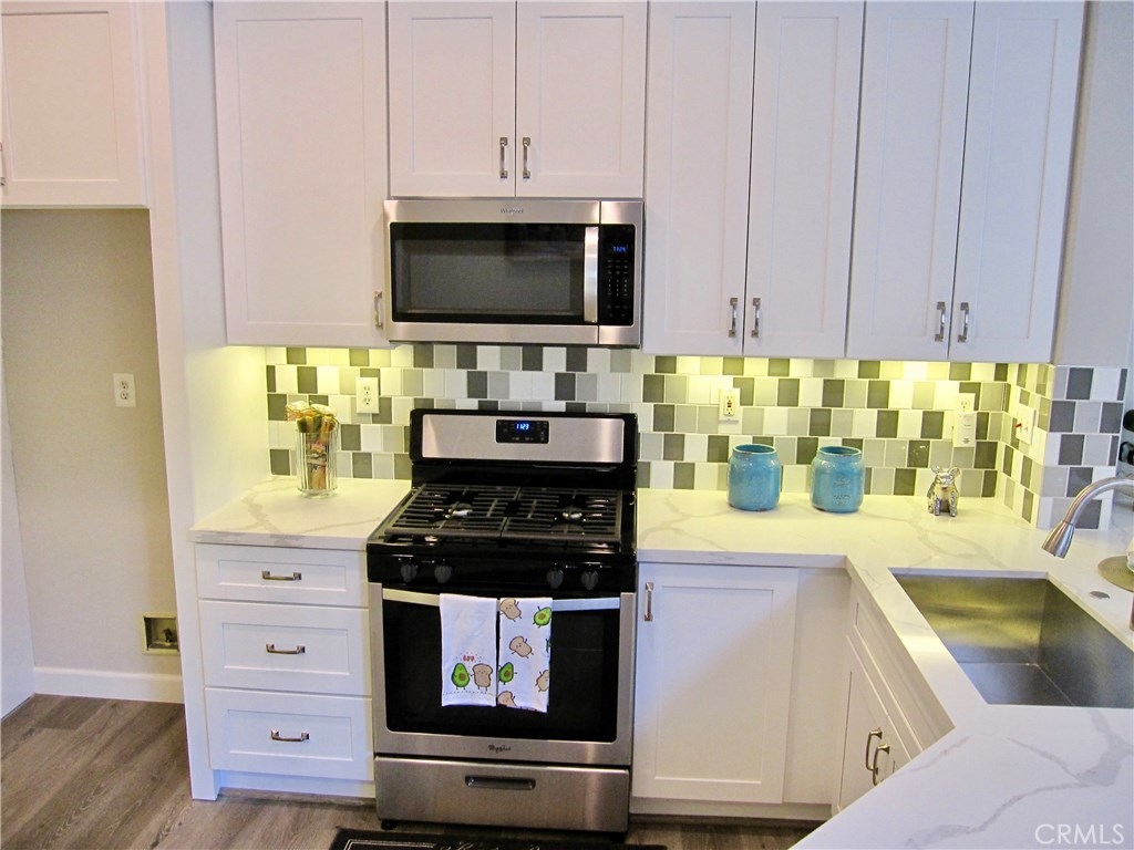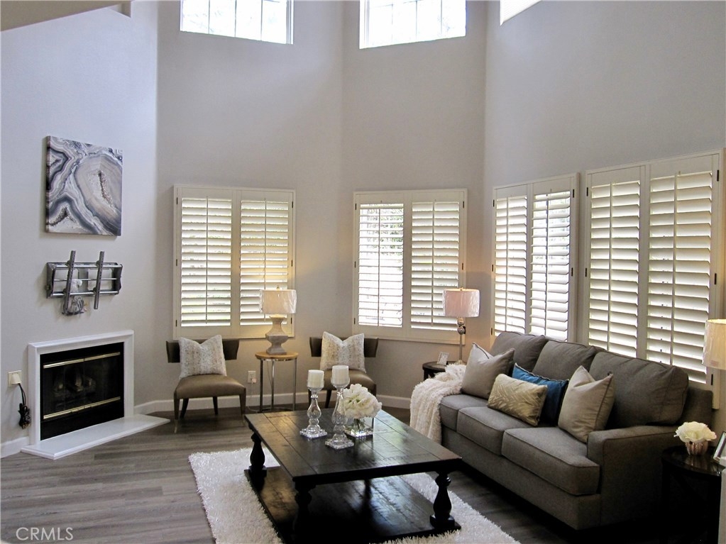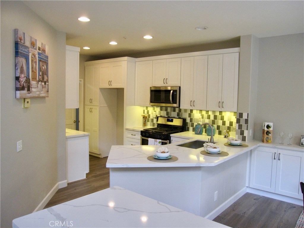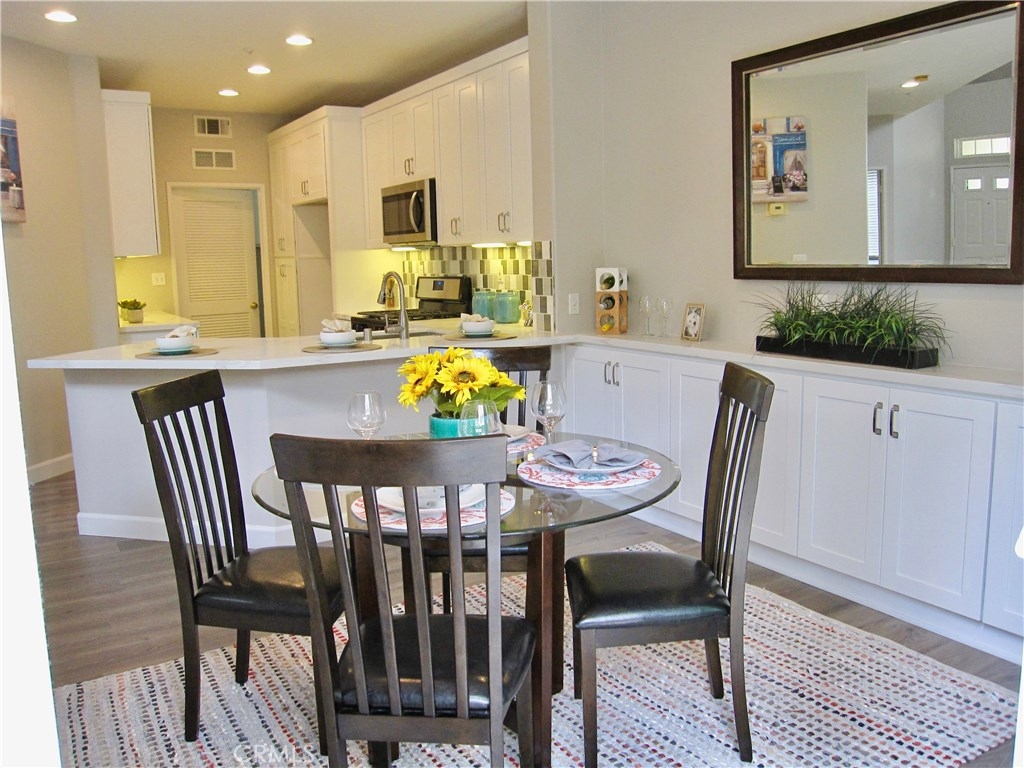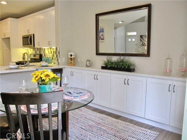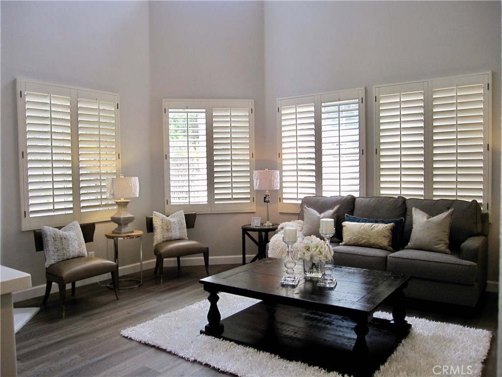 Welcome home to wow! Immaculate 3 Bedroom, 3 bath home located in prestigious gated Northwood Pointe community. Great open floor plan. Expansive living room has new waterproof laminate wood floors, soaring 18' ceilings, lots of windows bring warm natural light, fireplace, tv ready setup mount, shutters and media/storage cabinet with new quartz counter. Gather family and friends in this beautifully remodeled kitchen with new white shaker style cabinets with under lighting, glass front doors, quartz counters, tiled backsplash, new stainless appliances, deep single basin sink, fixtures and recessed lights. Dining room has a newly added row of extra cabinets. Main floor bedroom with mirrored closet doors could option as an office. Fresh interior paint & baseboards. Downstairs has all new waterproof laminate wood flooring. New carpet upstairs. Large master suite with new dual sinks shaker cabinets vanity & walk in closet. Third bedroom is updated en-suite. Indoor laundry room leads to 2 car garage. Peaceful backyard has several types of fruit trees, arbored pergola and low maintenance landscape. Situated in a prime quiet location with no unit behind. Outstanding HOA pool, spa, bbq, basketball court & tot lot. Minutes to Award winning schools including Canyon View Elementary, Sierra Vista Middle & Northwood HS. Close to shops, eateries, parks, walking/hiking/biking trails, Tustin Marketplace, Irvine Spectrum, toll roads & FWYS. Low HOA dues and mello roos.