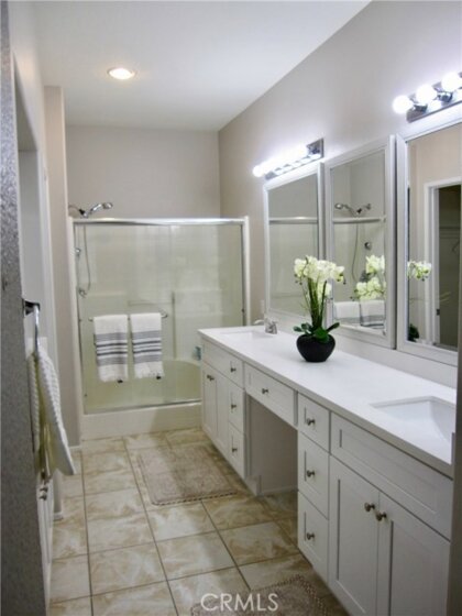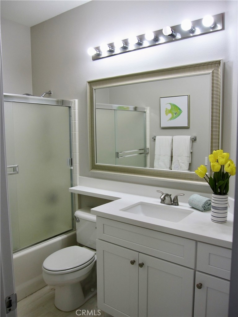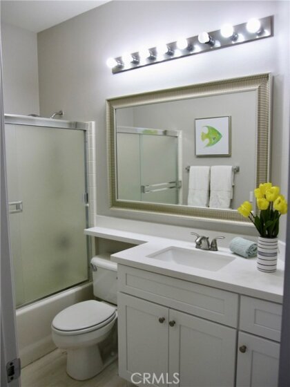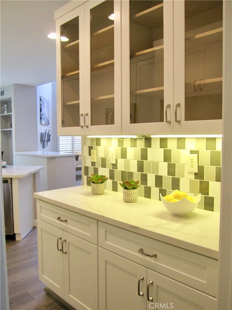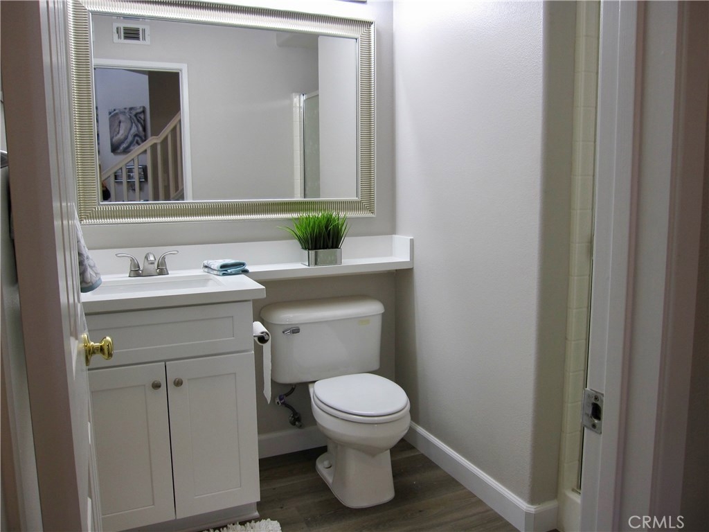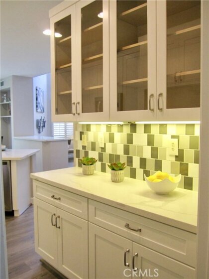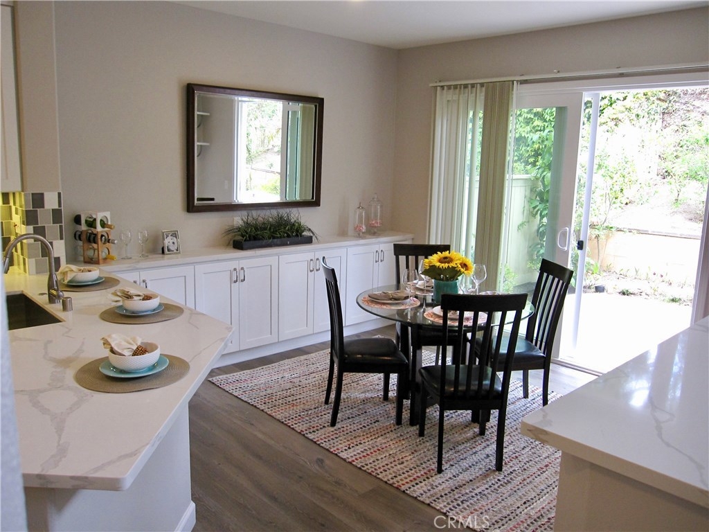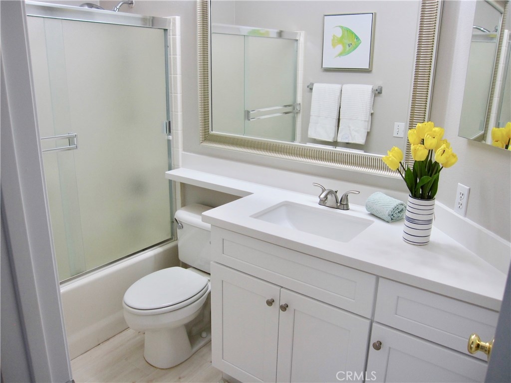 Welcome home to wow! Immaculate 3 Bedroom, 3 bath home located in prestigious gated Northwood Pointe community. Great open floor plan. Expansive living room has new waterproof laminate wood floors, soaring 18' ceilings, lots of windows bring warm natural light, fireplace, tv ready setup mount, shutters and media/storage cabinet with new quartz counter. Gather family and friends in this beautifully remodeled kitchen with new white shaker style cabinets with under lighting, glass front doors, quartz counters, tiled backsplash, new stainless appliances, deep single basin sink, fixtures and recessed lights. Dining room has a newly added row of extra cabinets. Main floor bedroom with mirrored closet doors could option as an office. Fresh interior paint & baseboards. Downstairs has all new waterproof laminate wood flooring. New carpet upstairs. Large master suite with new dual sinks shaker cabinets vanity & walk in closet. Third bedroom is updated en-suite. Indoor laundry room leads to 2 car garage. Peaceful backyard has several types of fruit trees, arbored pergola and low maintenance landscape. Situated in a prime quiet location with no unit behind. Outstanding HOA pool, spa, bbq, basketball court & tot lot. Minutes to Award winning schools including Canyon View Elementary, Sierra Vista Middle & Northwood HS. Close to shops, eateries, parks, walking/hiking/biking trails, Tustin Marketplace, Irvine Spectrum, toll roads & FWYS. Low HOA dues and mello roos.