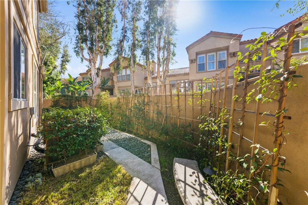 Gorgeous end unit SINGLE GROUND LEVEL CONDO WITH NO INTERIOR STEPS! Just like a model. Recently HIGHLY upgraded in (2020) including: LG appliances throughout home (Wifi connected, including microwave, oven, dishwasher, refrigerator), beautifully designed kitchen with quartz countertops, stylish backsplash tiling with soft close cabinets & drawers throughout home. Other newly remodeled features include luxury wood look vinyl flooring, modern interior doors installed, carpet in all bedrooms, stunning primary bathroom with tile flooring, quartz slab countertop, walk in shower with modern quartz slab, Delta fixtures and rain head, toilet & closet system organizer in primary bedroom walk in closet. Cozy living room with modern gas fireplace mantle and stone, Pre-wired A/V cabling for wall mount TVs in living room and master bedroom. Secondary bedroom closets also have organizers and all bedrooms have modern closet sliding doors. The guest bathroom is updated with stylish subway tiling, bathtub and shower,, quartz slab vanity, cabinets, toilet, and Delta fixture. A convenient inside laundry room with built in quartz slab countertop and cabinetry above for extra storage. All baseboards and crown molding were installed along with the glass shelving in living room. Designer tone interior paint throughout, updated LED lighting, switches and outlets and newer Air conditioner in backyard. The lovely rear yard has been landscaped, a sprinkler system installed and has solar powered lighting, The two private single car garages (One attached to the home, the other is detached and located at the end of Ericson Aisle) have overhead storage racks installed in both garages. This home has it all and its all like new! Close to freeways, tolls, shopping, schools and dining. A rare find.