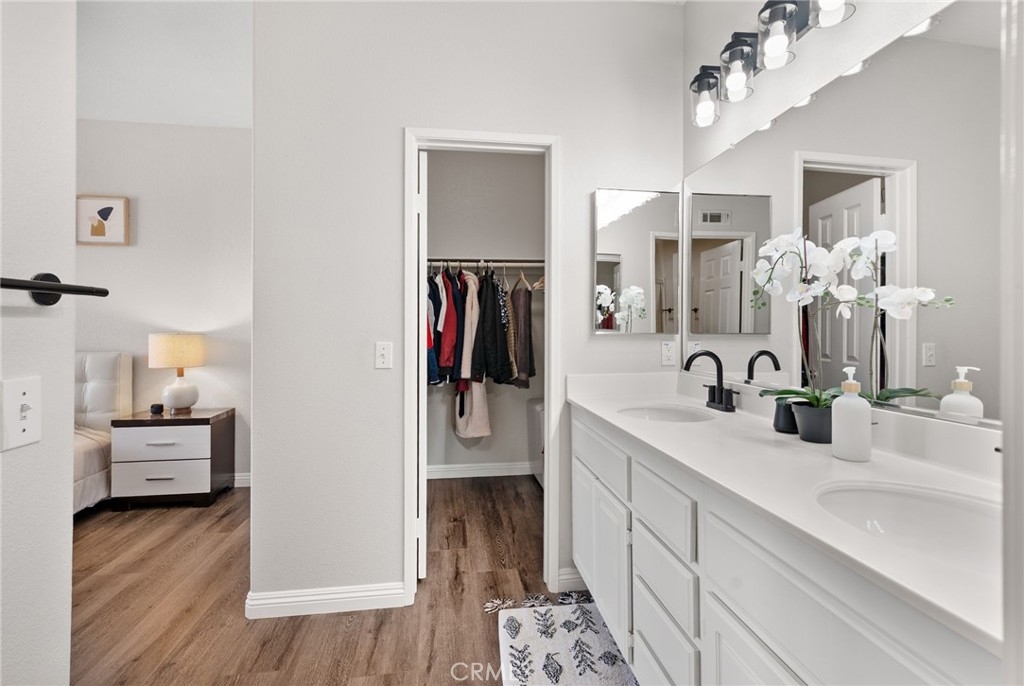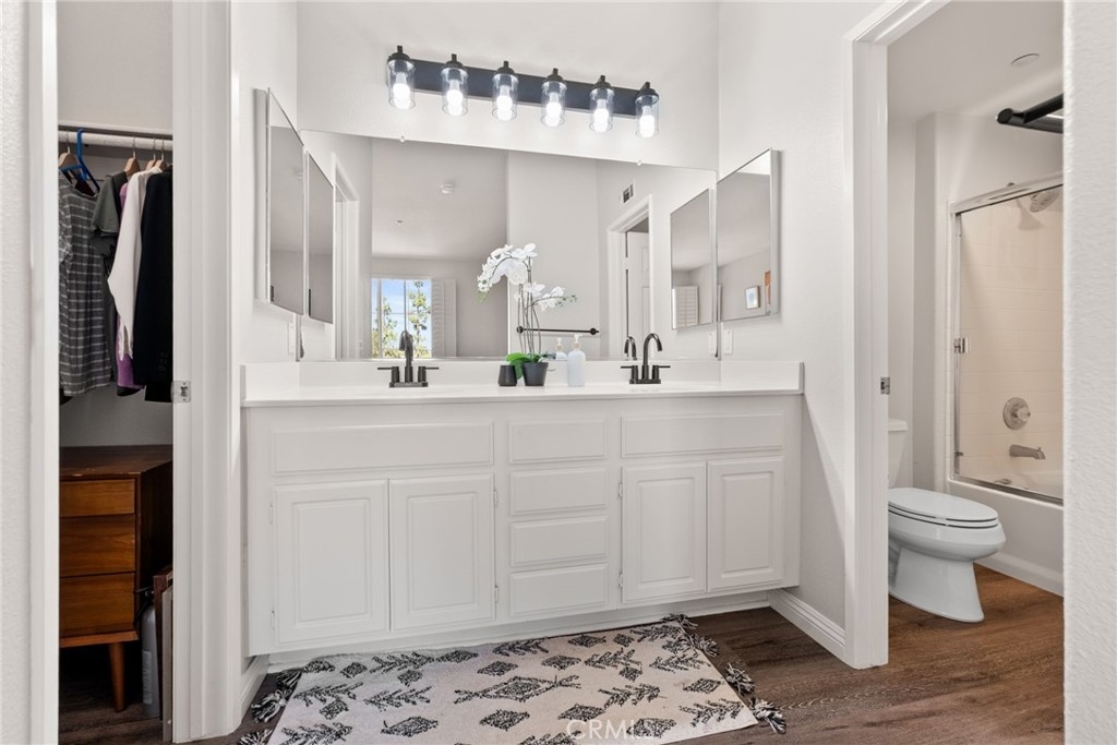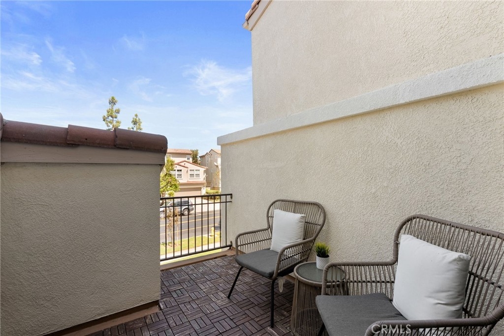 Welcome to this bright and inviting condo located in the highly sought-after gated community of Oak Park, Irvine. NEW stainless steel kitchen appliances to replace white ones with accepted offer (existing refrigerator included). This home's Spanish-inspired architecture, red-tile rooflines, and lushly landscaped pathways, this residence blends timeless charm with modern updates. Step inside to find a tri-level condo with recessed lighting and upgraded wood-style flooring that flows seamlessly throughout the main level. The spacious living room is perfect for both relaxing and entertaining, while the adjacent dining area and kitchen create an effortless flow. The kitchen features crisp white cabinetry, tile countertops, a stainless-steel refrigerator, and a full suite of appliances, making meal prep a breeze. Enjoy the private balcony, a perfect spot for morning coffee or evening unwinding. Upstairs the primary suite offers a peaceful retreat with peekaboo mountain views, abundant natural light, dual vanities, and a large walk-in closet. Recent upgrades include washer/dryer appliances, water heater (2023), recessed lighting, water shut off valve, plantation shutters, and bathroom fixtures. The attached 2-car garage offers ample storage space as well. Enjoy resort-style amenities including pools, spas, basketball court, playgrounds, and walking trails. A block or less from from Coffee Bean, Starbucks, 2 gyms, Gelson's, Ralph's, and too many restaurants to count, Conveniently located near Oak Creek Shopping Center, Irvine Spectrum, The District, John Wayne Airport, and top-rated Irvine schools. Easy access to I-5 and 405 freeways. To top it off, this property has NO MELLO-ROOS and one of the lowest HOA in the city. A fantastic opportunity to own in one of Irvine’s most sought-after neighborhoods. Property qualifies for 3% Down, No PMI, $20,000 for closing or rate buy down!