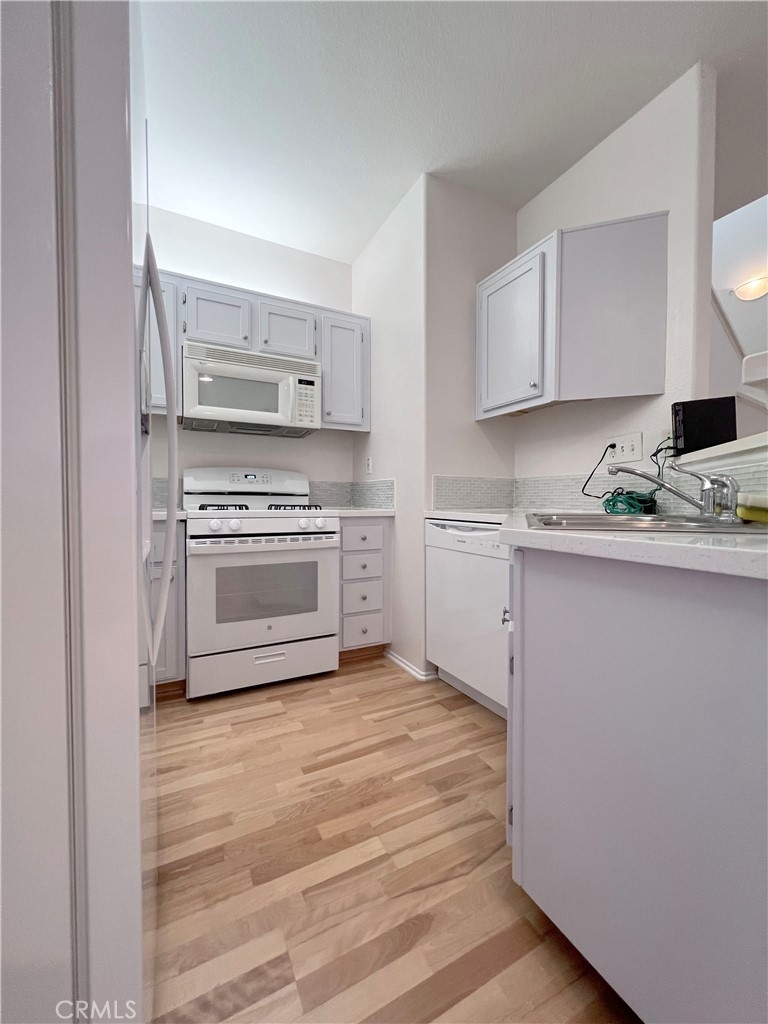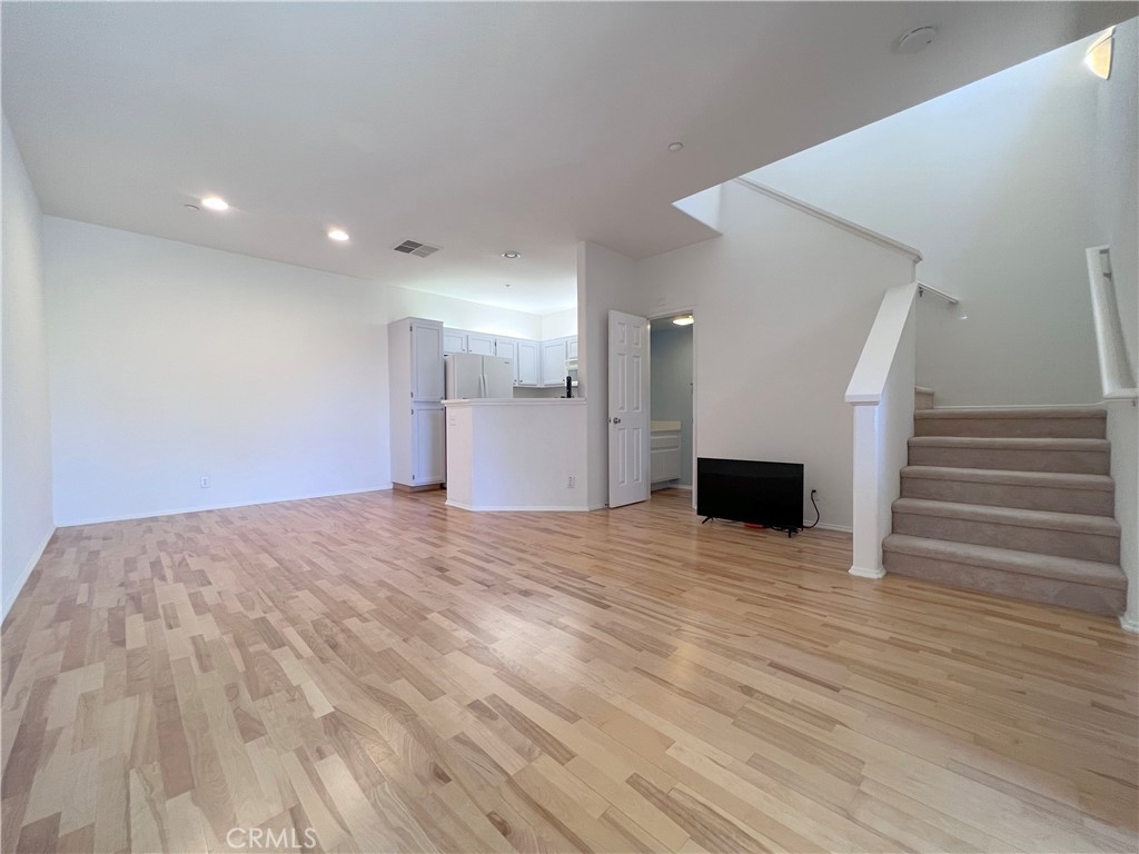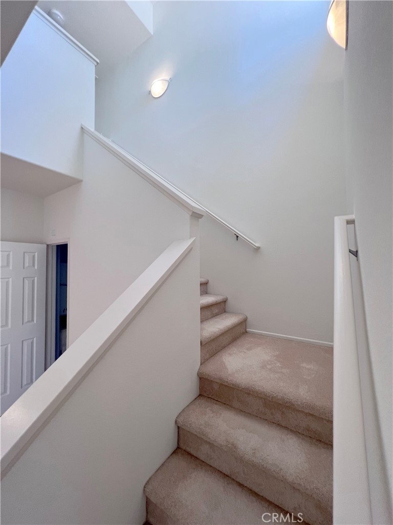 A very rare 1 bed, 1.5 bath, 2 car tandem garage condo located in the gated Oak Creek Community. This tri-level condo has been owner occupied since 2003; the condo is in immaculate & turn key condition. The first level entry features a coat closet and direct access to the roomy two car tandem garage, where you'll find the washer & dryer in place. As you step up to the second level living/kitchen area, you'll notice an abundance of natural light coming in from the large window above the stair landing and sliding door leading to your private balcony. The living area features laminate flooring, neutral paint through-out, and a half bath (both toilets in the condo were just recently replaced). The niche kitchen has a newer gloss white Samsung refrigerator, gas range, microwave, dishwasher, with tiled back-splashed walls. As you walk up the stairs to the third floor, here you'll enter the private spacious master bedroom, carpeted, with walk-in closet, dual sink vanities, leading you into a full bath (shower & tub). Community features pools, spa, and a BBQ area, gym, basketball courts, playground for kids, tennis courts, and a clubhouse. This home is located in an award-winning Irvine school district and is conveniently close to the Spectrum Shopping Center.