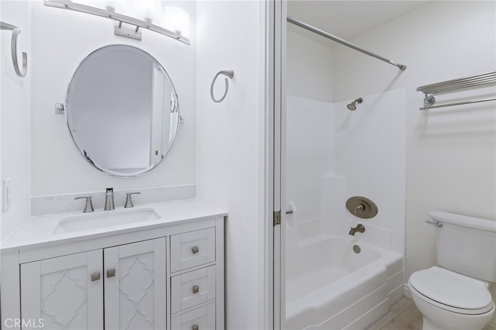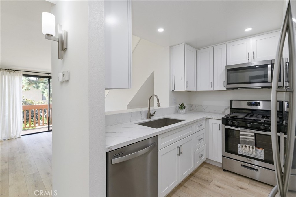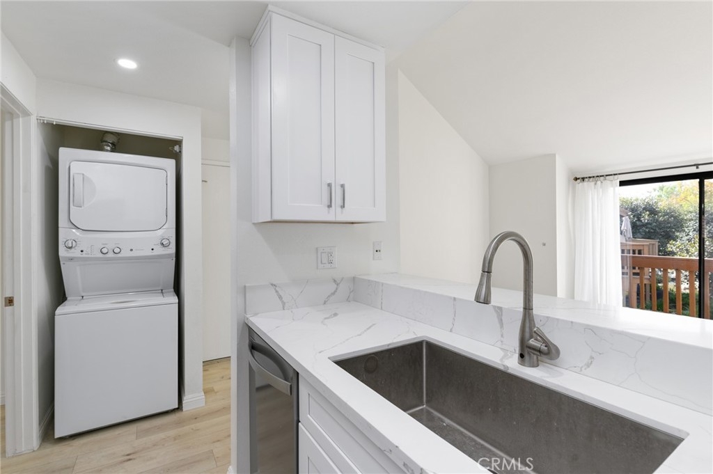 Adorable little “jewel box” upper condo with one bedroom, bath, kitchen, living area AND loft. Views of lagoon and waterfalls. New kitchen custom cabinets, quart counters, new stainless steel appliances, s.s. sink and faucet. Includes refrigerator and stacked washer and dryer. Newer light laminate flooring, new mirrors, lighting, baseboards, bathroom vanity, sink & faucet. Air conditioning and forced air heating. One covered carport. Upstairs storage . Great Association amenities include pools, spa, tennis courts, weight room, Clubhouse lighted pathways. Association fees include water and trash pick up. Close to Irvine Valley College, Hoag hospital facilities, Spectrum shopping , two freeways, beaches,theaters, shopping and industrial and biotech complexes. Perfect pristine condition and waiting for the first time buyer or investor. Also for rent at $2600. Month