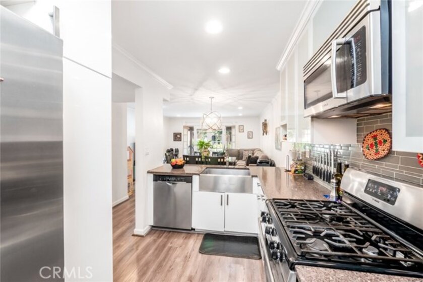 WELCOME to your new home! This corner lower level unit offers an open floor plan that has been extensively remodeled with no expense spared! A beautifully remodeled kitchen with custom-cut granite countertop, frosted glass cabinets, tile back-splash, matching Bosch stainless steel appliances, and the apron sink you always wanted! This home also features designer laminate flooring, crown molding, recessed lights throughout and a remodeled bathroom. This unit sits on a prime lot as it offers relaxing views of a serene pond and mature trees with well-maintained landscaping. One reserved parking spot (#116) and one parking permit for a 2nd car are included. Visitors parking is close by. The community amenities include a full gym, a clubhouse, two pool with spas, gated tennis courts and basketball courts and a children’s play park. Conveniently located near the I-5, I-405, and CA-133, Oak Creek Golf Club, IVC, UCI, Irvine Spectrum, local eateries, and grocery stores.