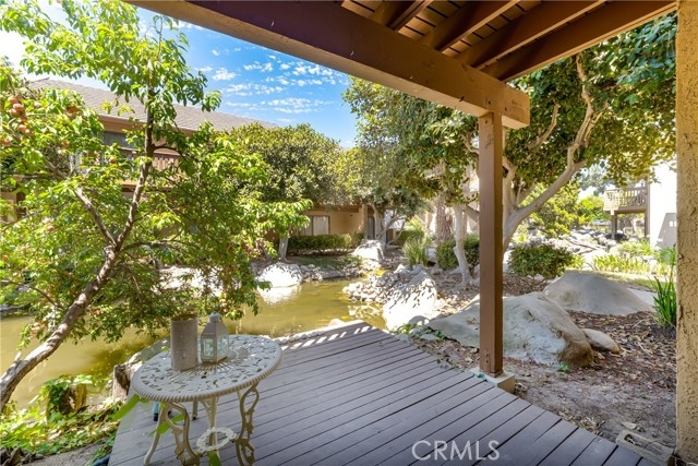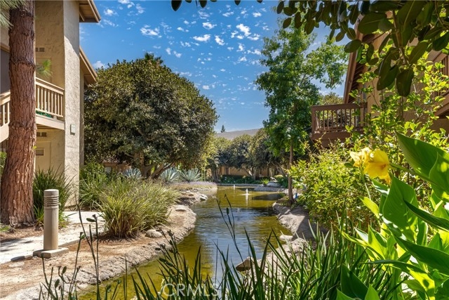 Location! Timing is everything!Nestled in pristine Irvine, this charming downstairs corner unit condominium has a stunning view of the water and its private deck from its large living room which opens up to a patio along a stream. The contemporary kitchen is within the living room area and adds openness to the unit. Great for entertaining.There are granite countertops in the kitchen and laminate floors in the living room, bedroom, and walk-in closet. Parking space is assigned to a carport. Unit is steps from a golf course, local community college, and recreational park. Great opportunity for a first time home buyer in one of America's best cities to live in!